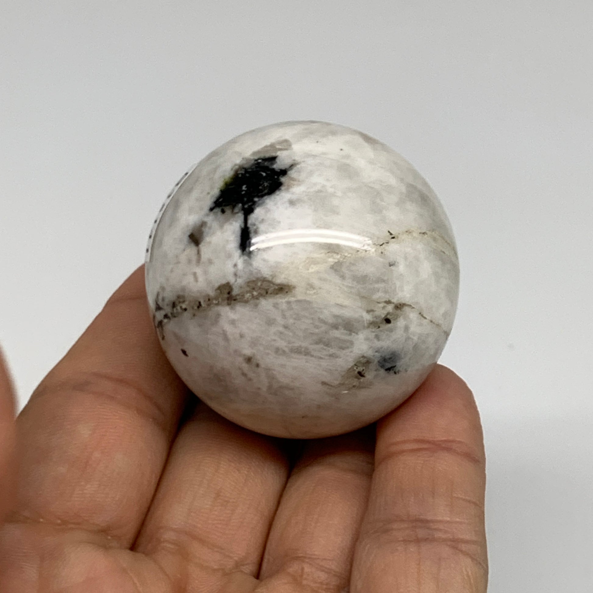 99.9g, 1.7"(42mm), Natural Rainbow Moonstone Sphere Ball Gemstone, B35141
