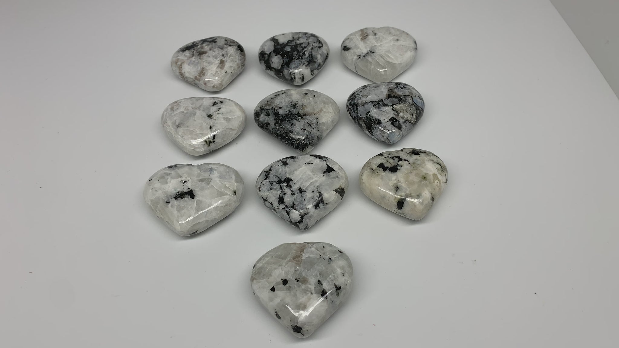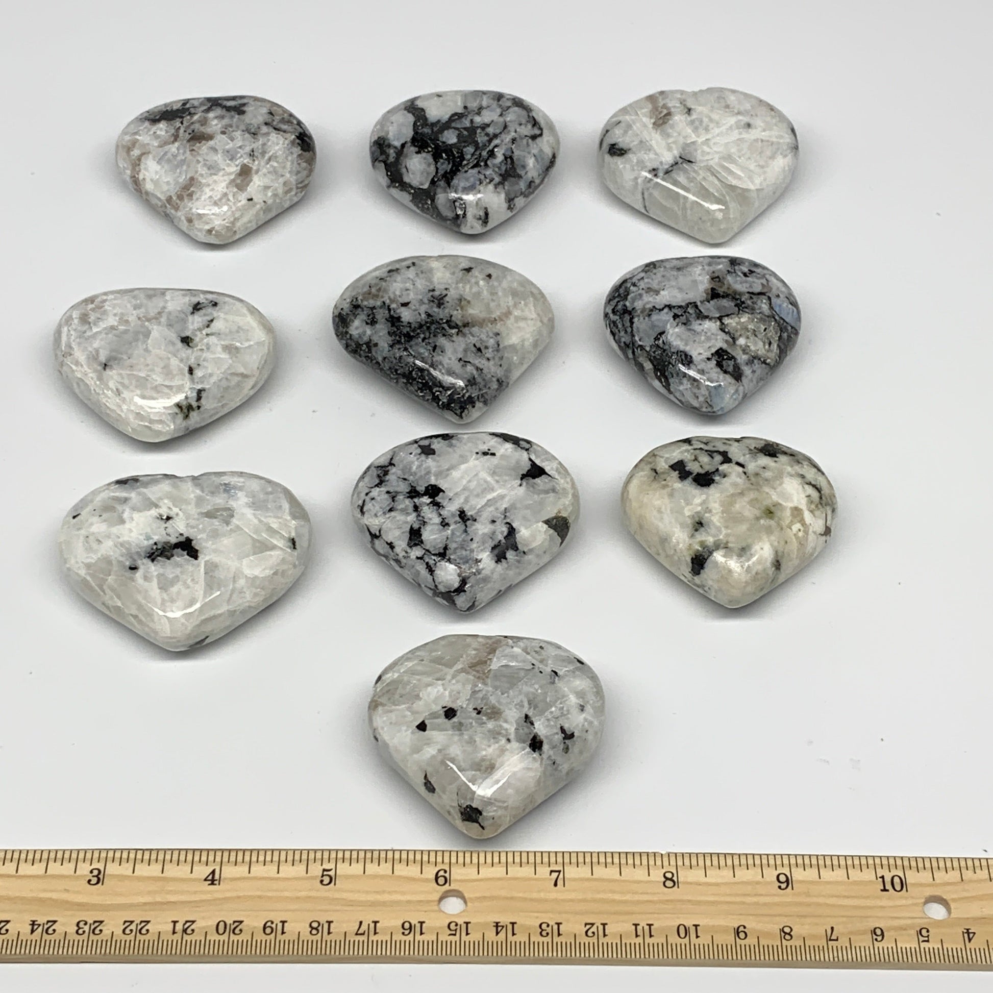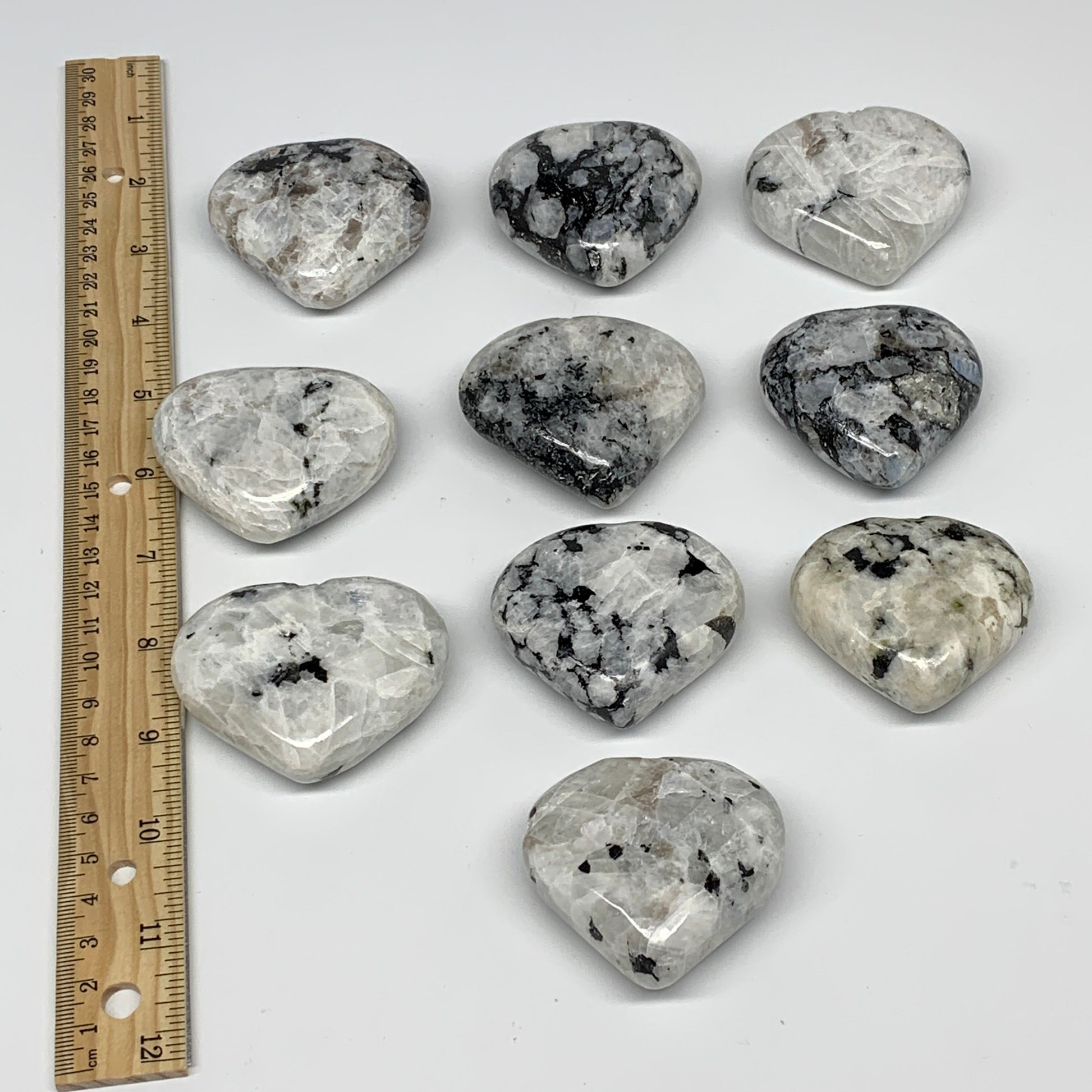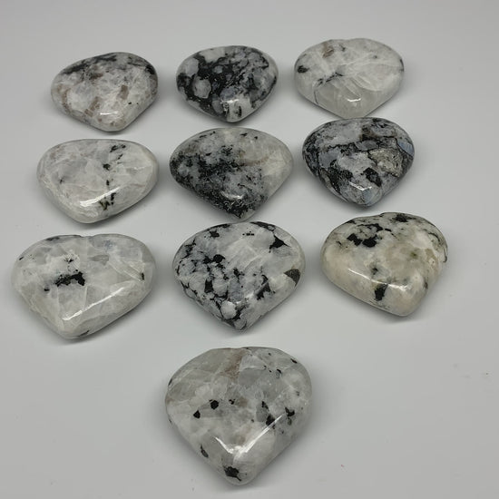 995g (2.19 lbs) , 10 pcs, 2"- 2.2", Rainbow Moonstone Hearts from India, B26402