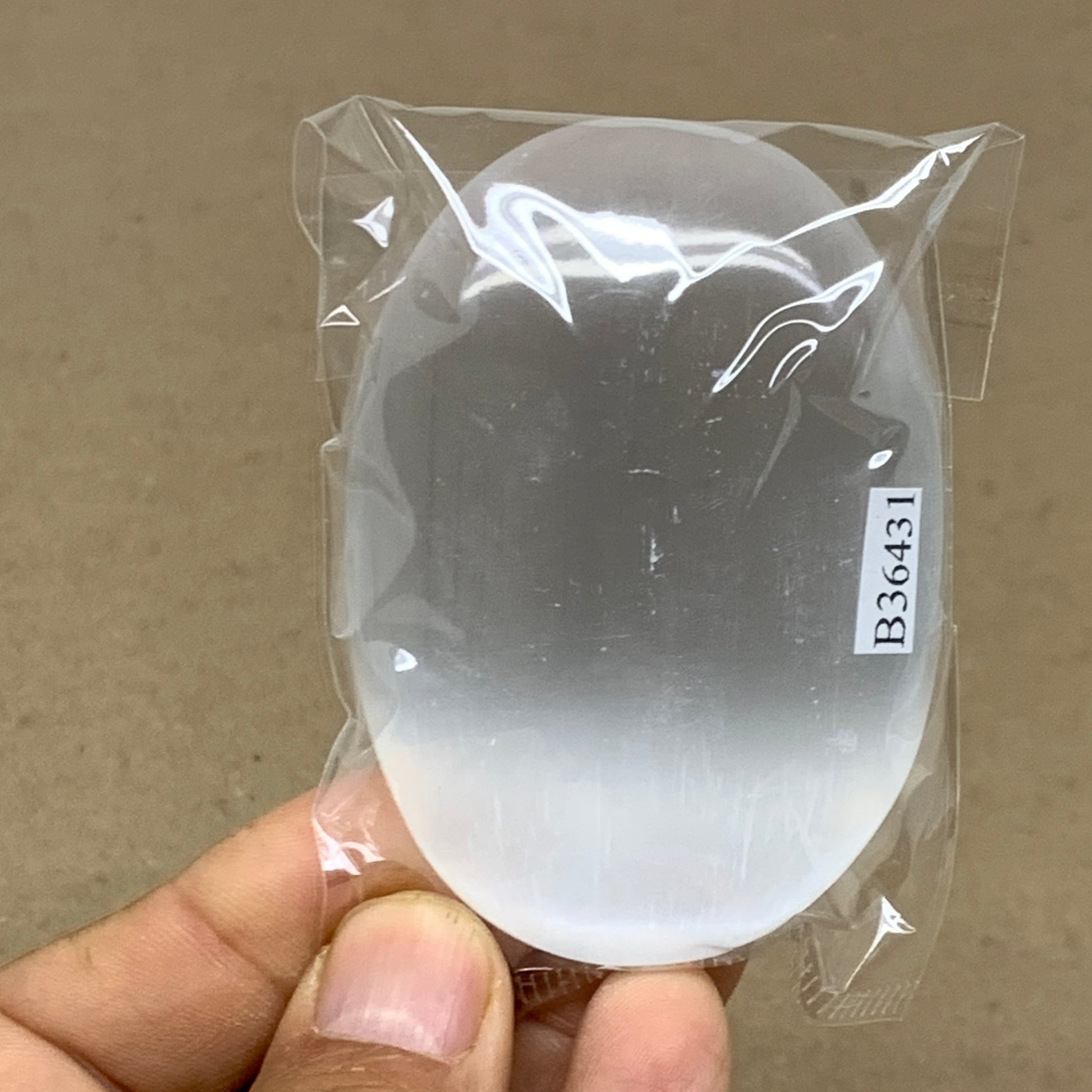 99g, 2.7"x2"x1", White Selenite Palmstone Crystal Pillow Reiki, B36431