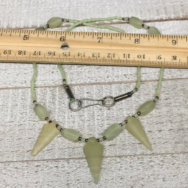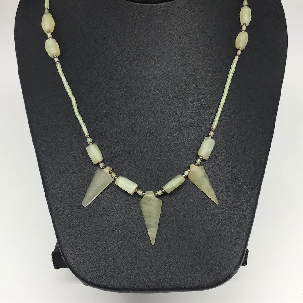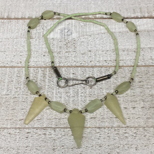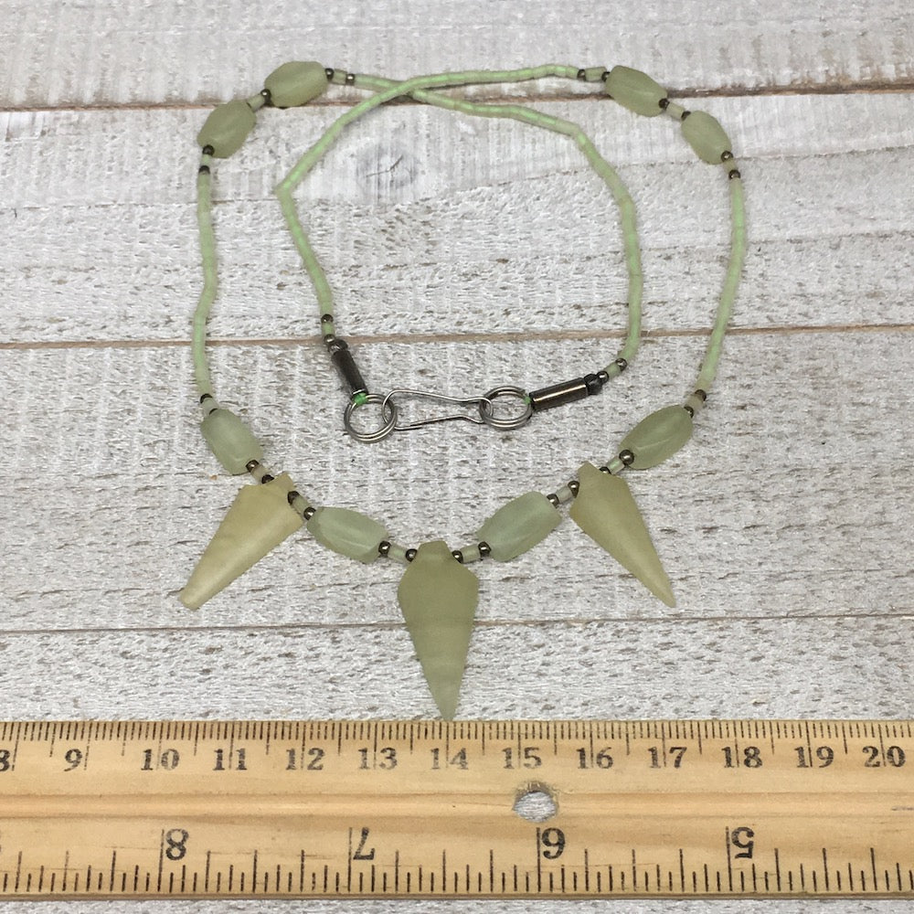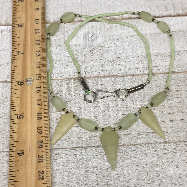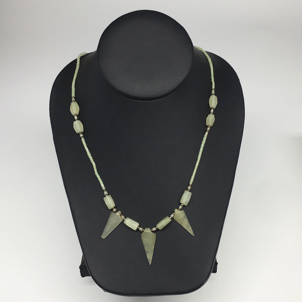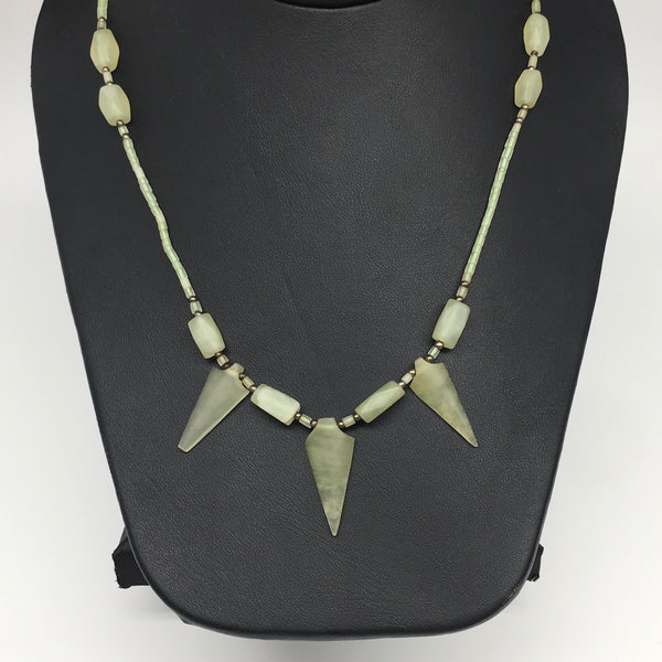 13.2g,2mm-28mm, Small Green Serpentine Arrowhead Beaded Necklace,19",NPH239