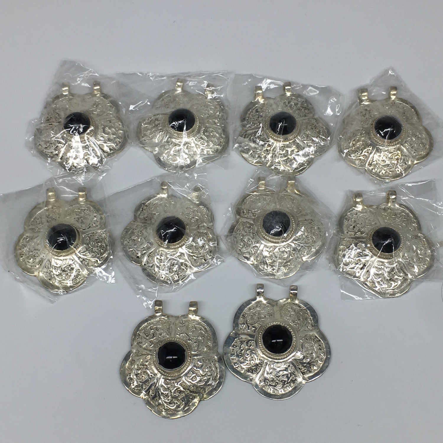 1pc,2.5"x2.3"x0.6",Turkmen Pendant Black Carnelian Flower Shape Statement,TN650