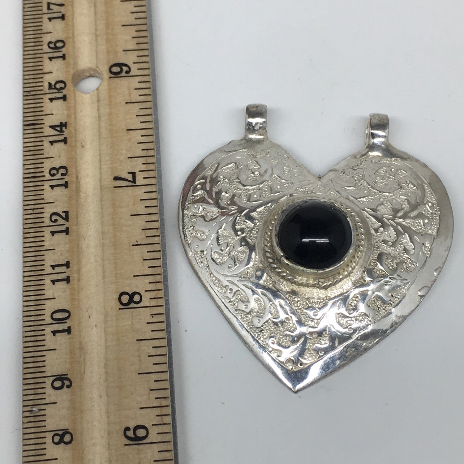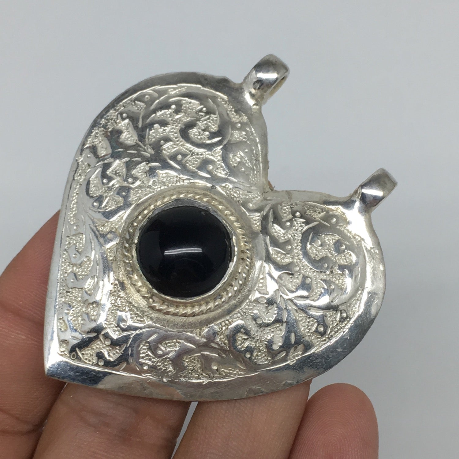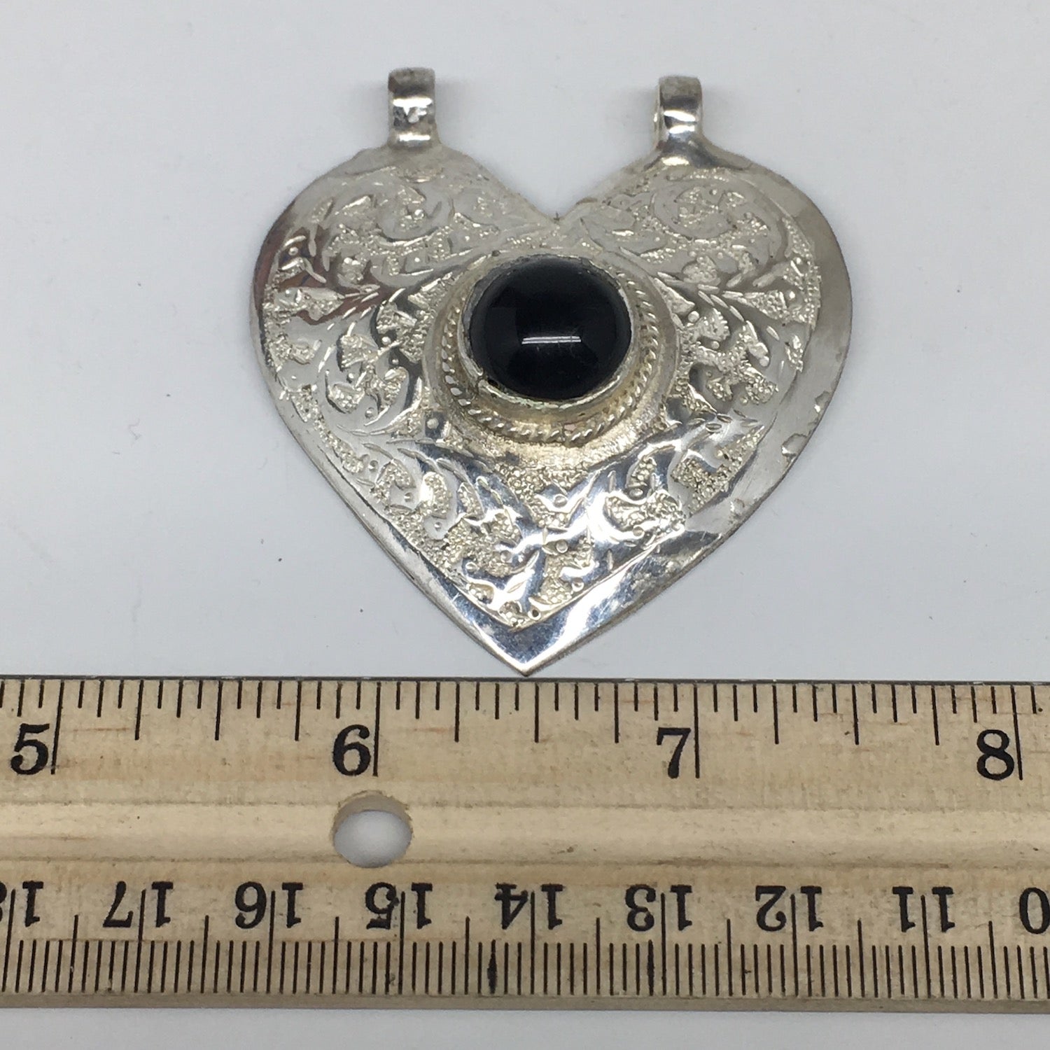 1pc,2.4"x2.1"x0.7",Turkmen Pendant Black Carnelian Heart Shape Statement,TN656