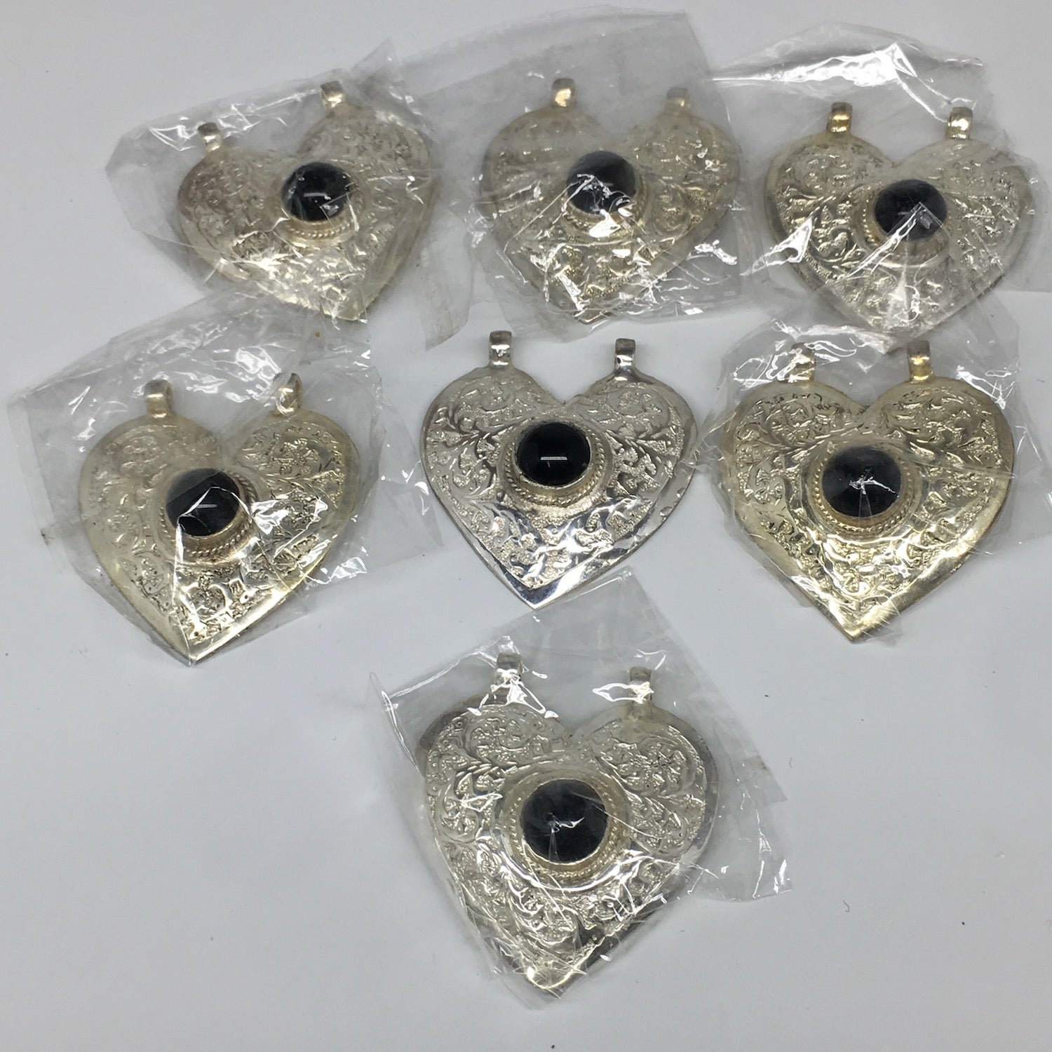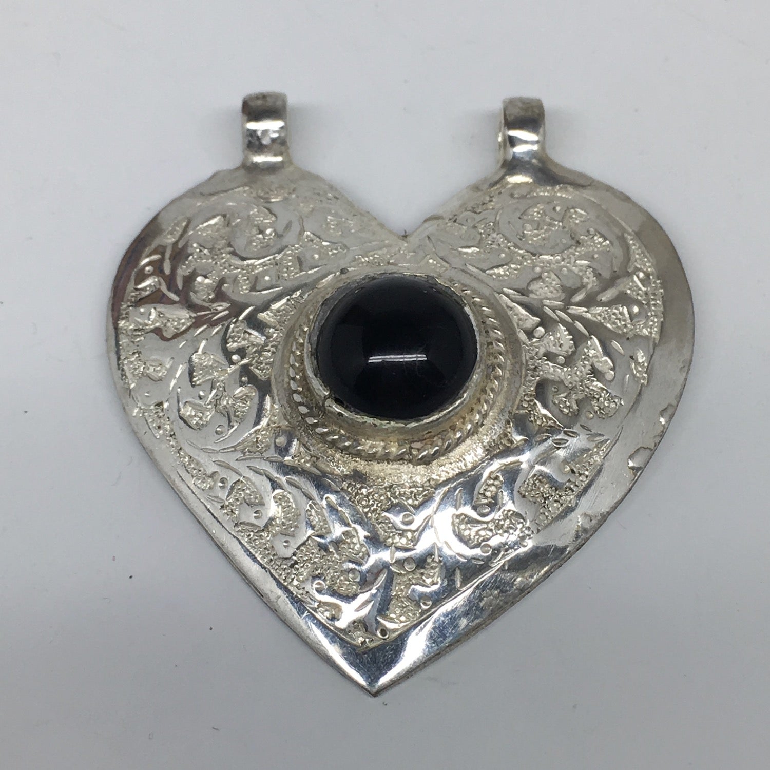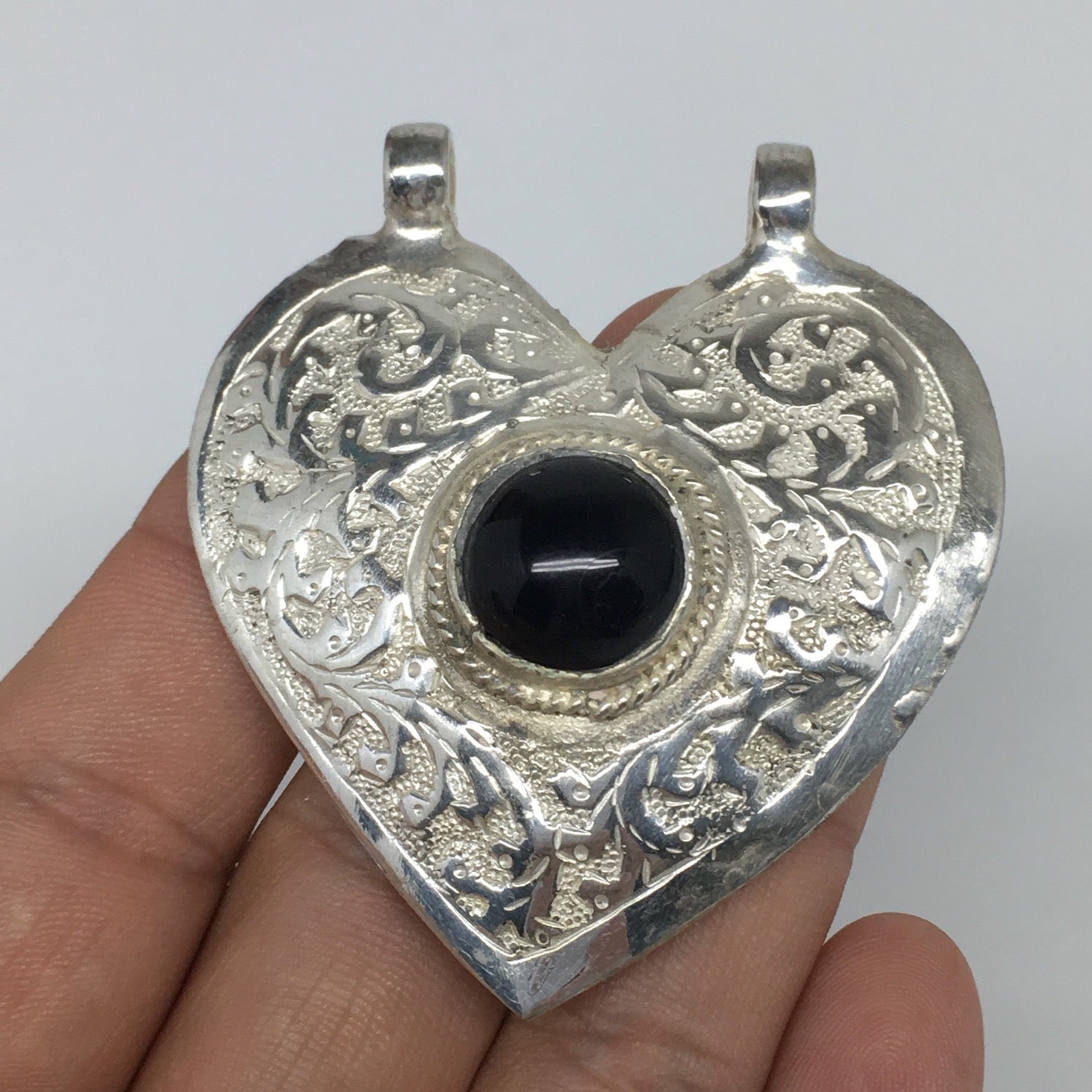 1pc,2.4"x2.1"x0.7",Turkmen Pendant Black Carnelian Heart Shape Statement,TN656