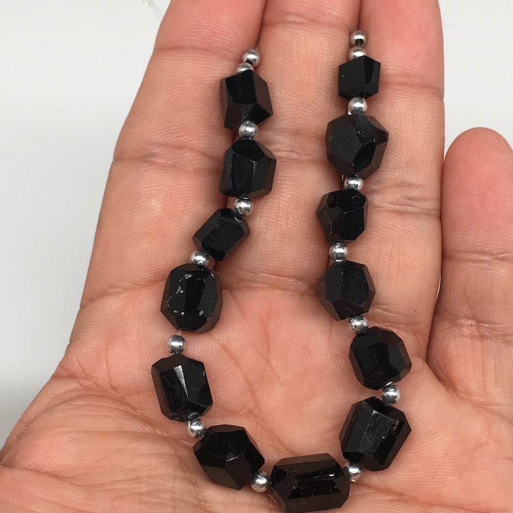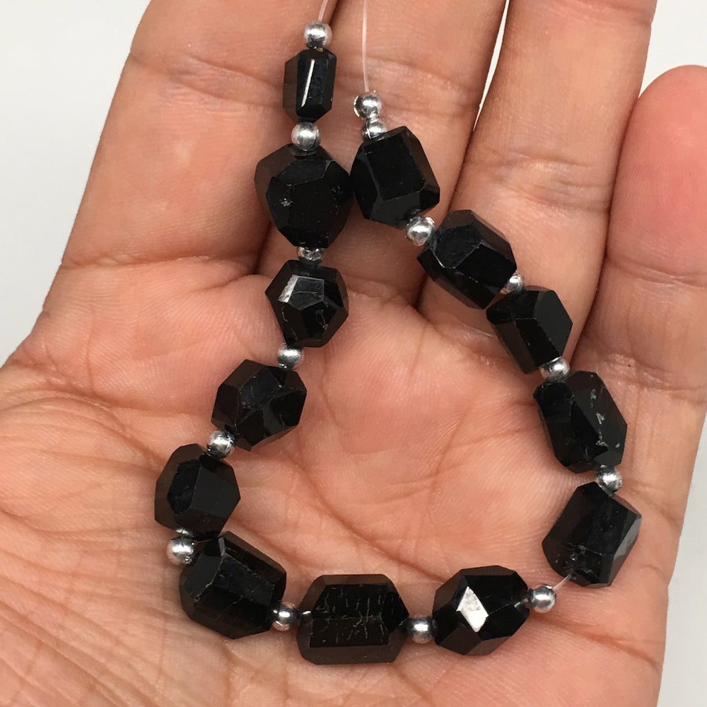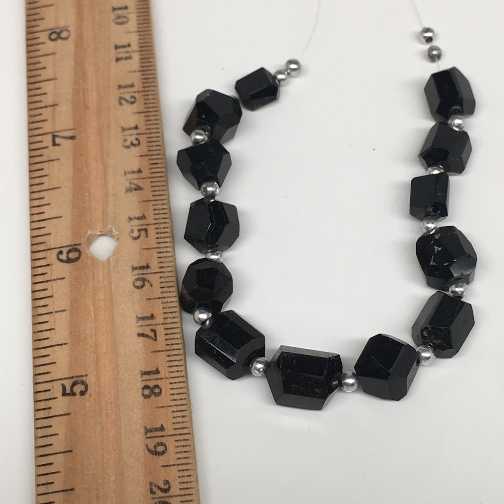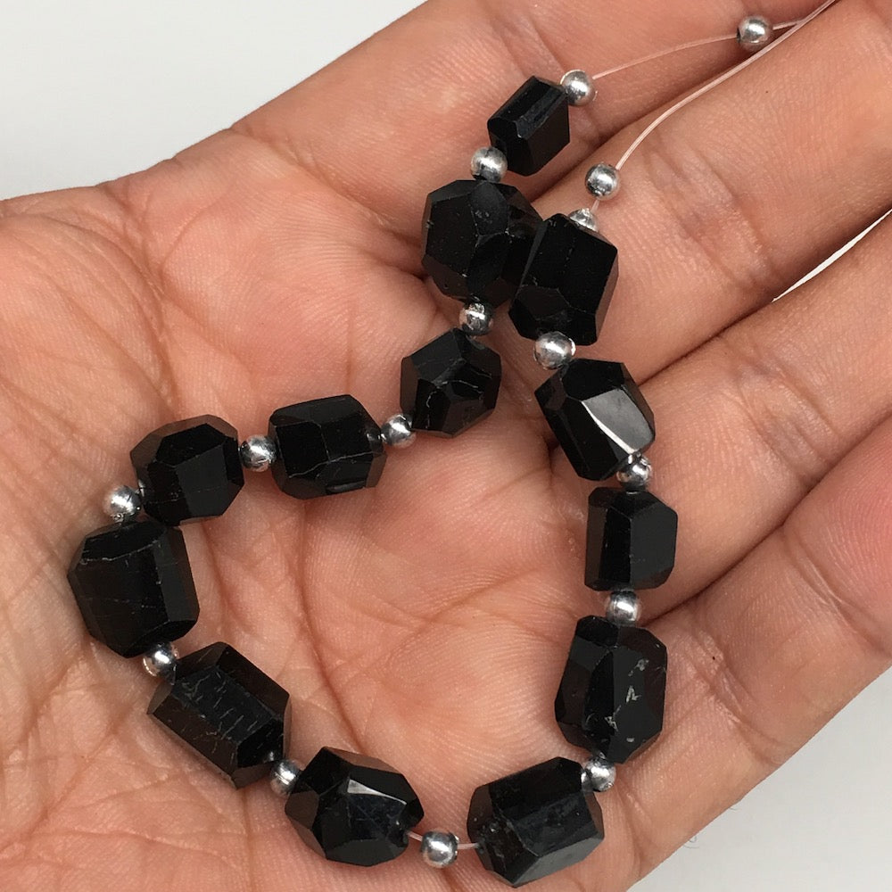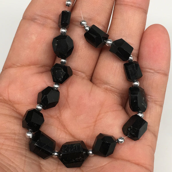 83cts, 13pcs, 8mm-12mm Natural Black Tourmaline Faceted Beads @Afghanistan,BE12
