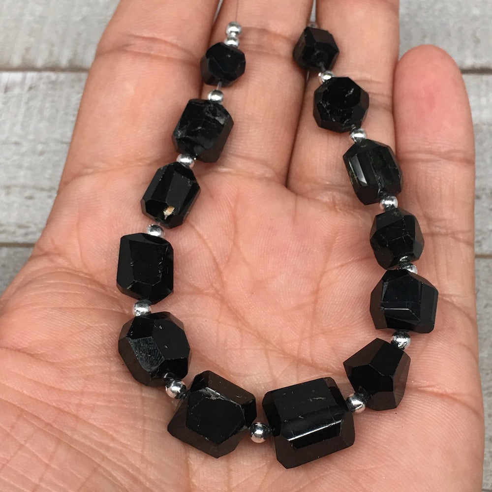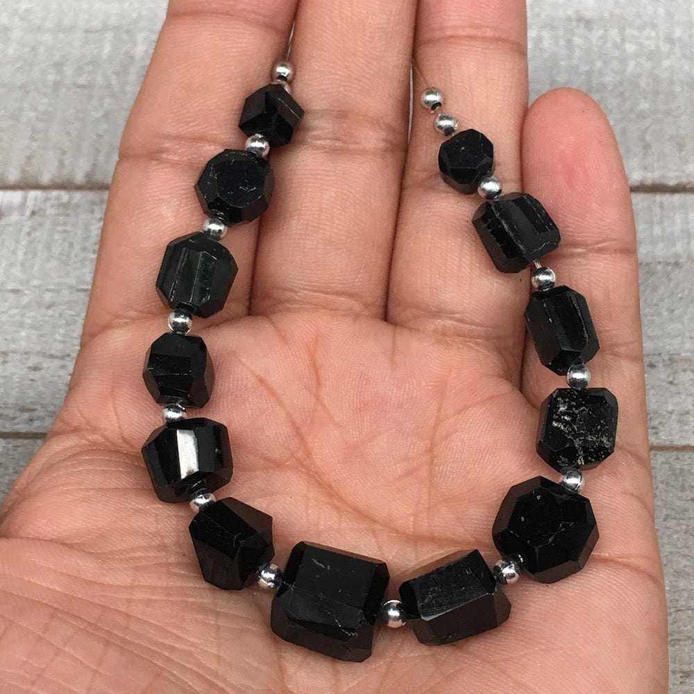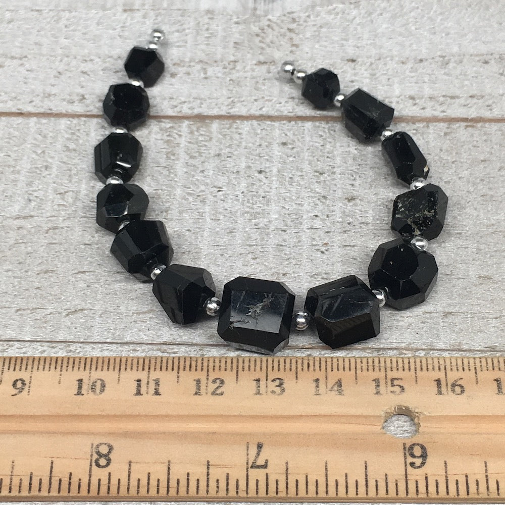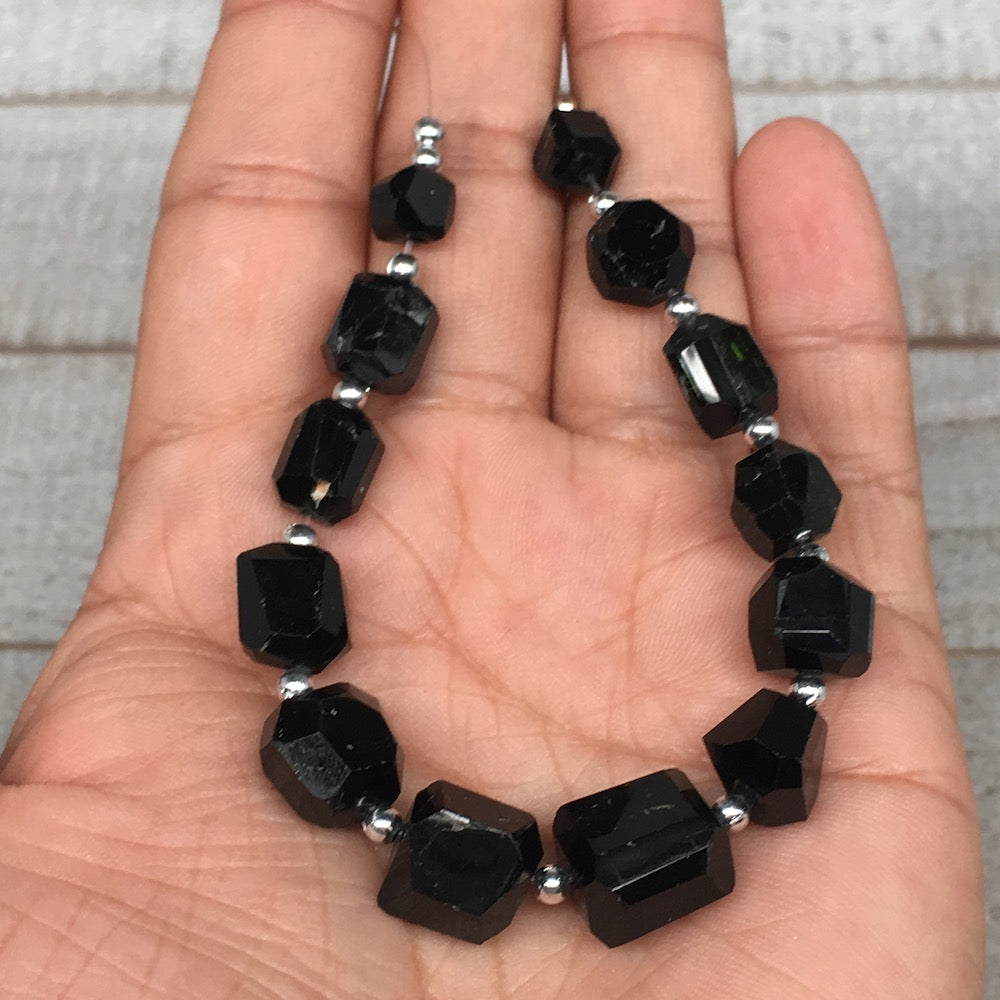 103cts, 13pcs, 7mm-13mm Natural Black Tourmaline Faceted Beads @Afghanistan,BE18