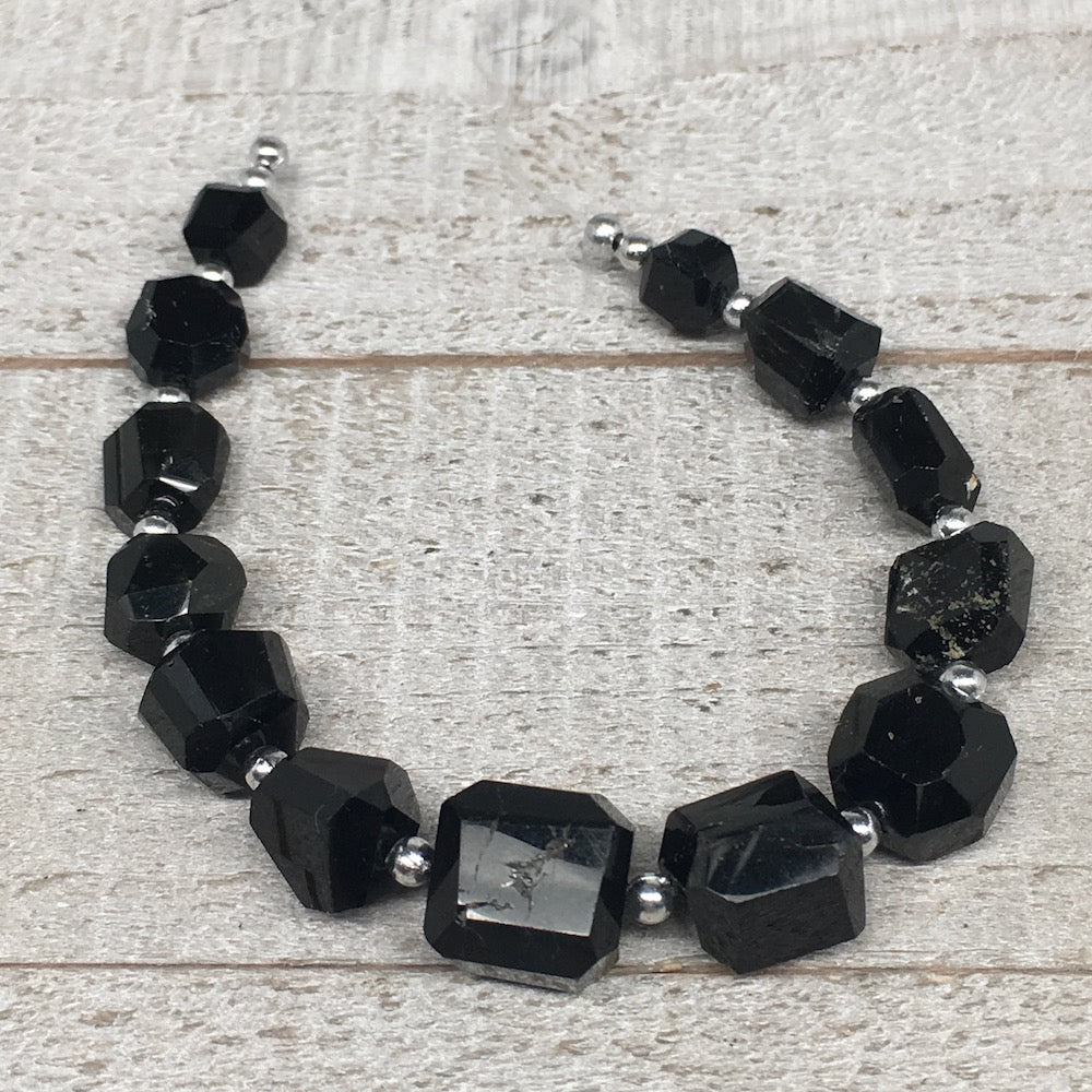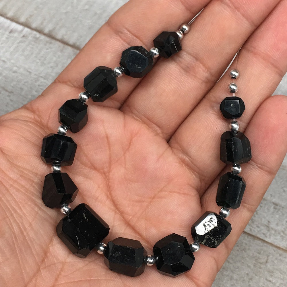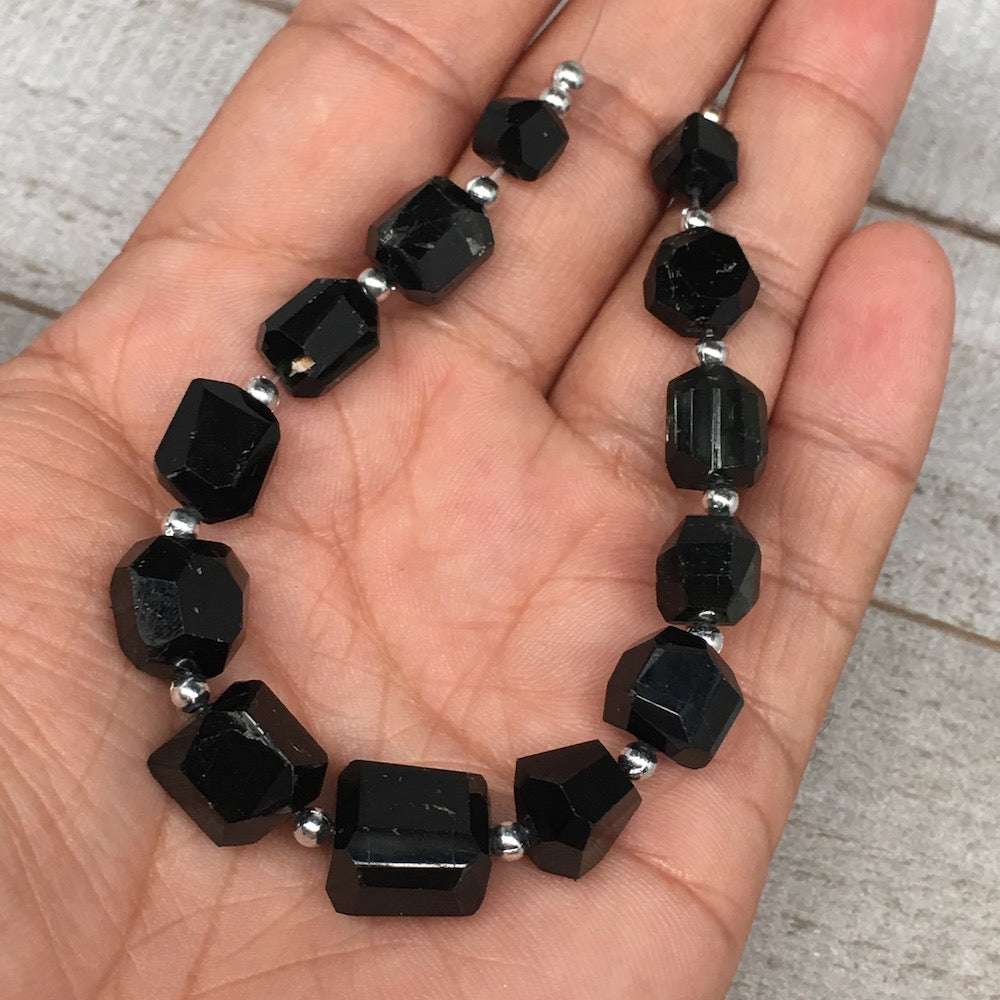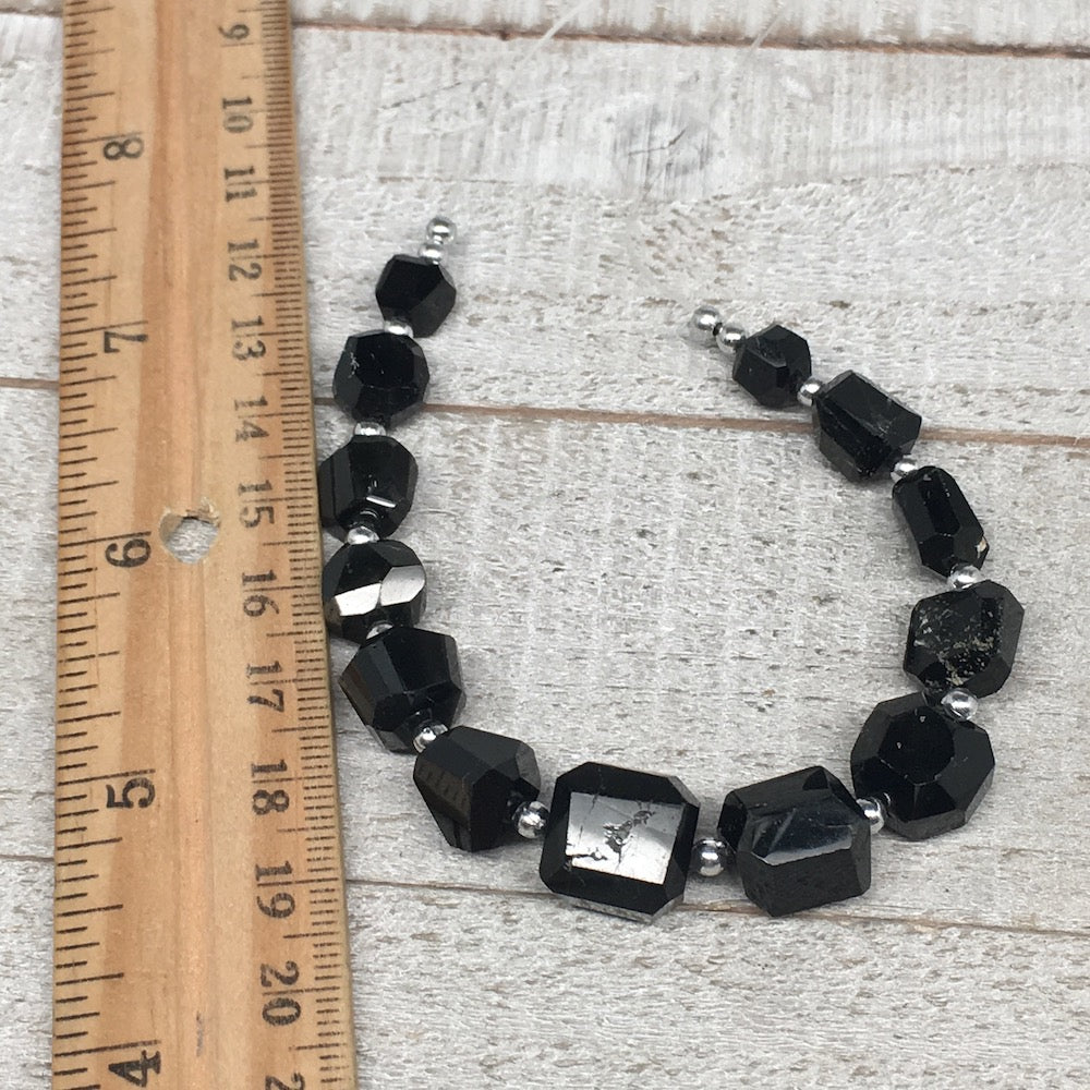 103cts, 13pcs, 7mm-13mm Natural Black Tourmaline Faceted Beads @Afghanistan,BE18