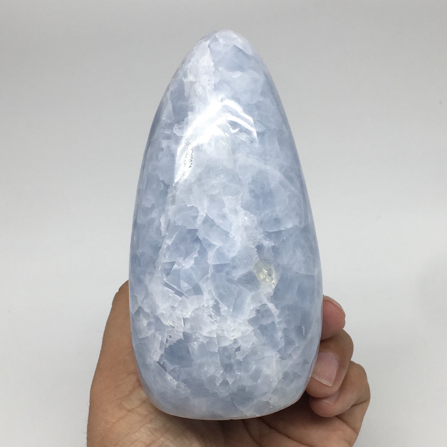 706g,4.5"x3"x2.3" Blue Calcite Polished Freeform Stands @Madagascar,MSP1024