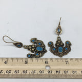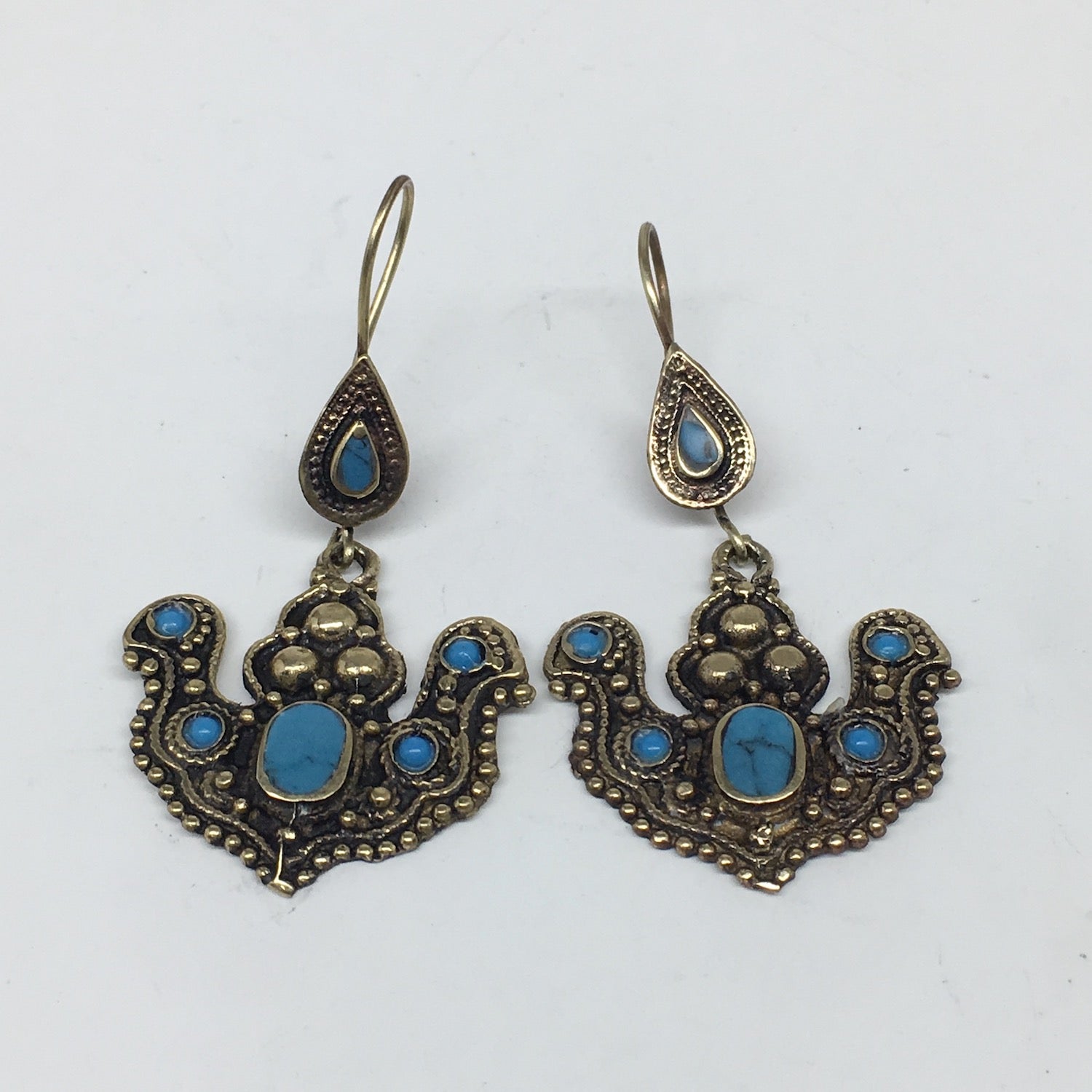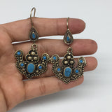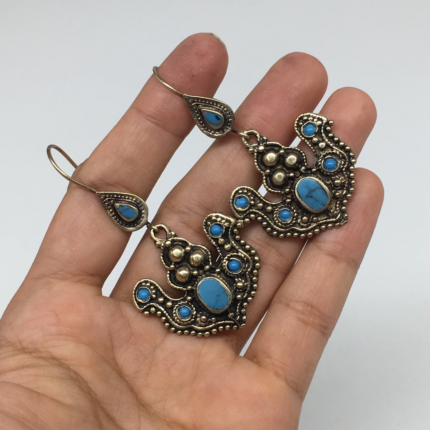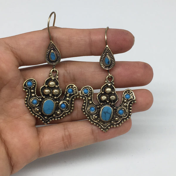 1pc, 2.4" Turkmen Earring Synthetic Turquoise Fashion ATS Boho @Afghanistan,TE179