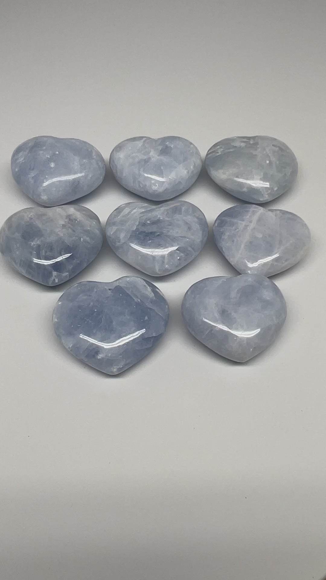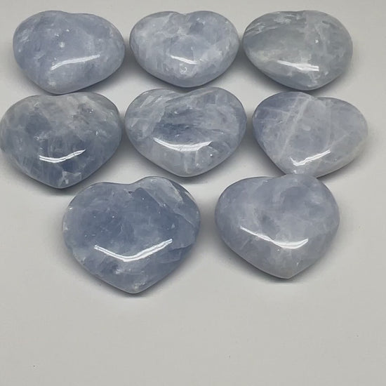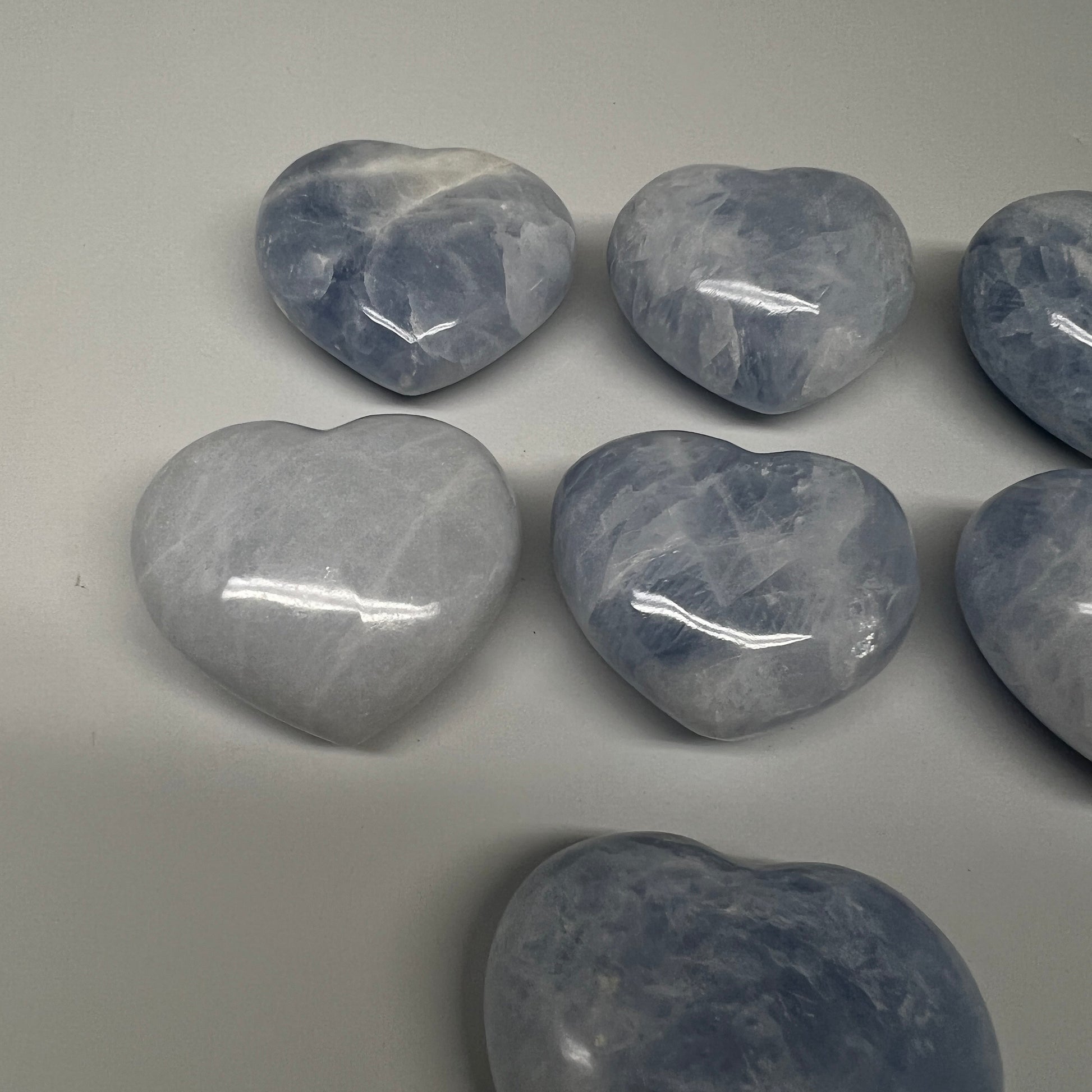 1010g (2.2 lbs) , 7 pcs, 2"- 2.3", Blue Calcite Hearts from Madagascar, B20856