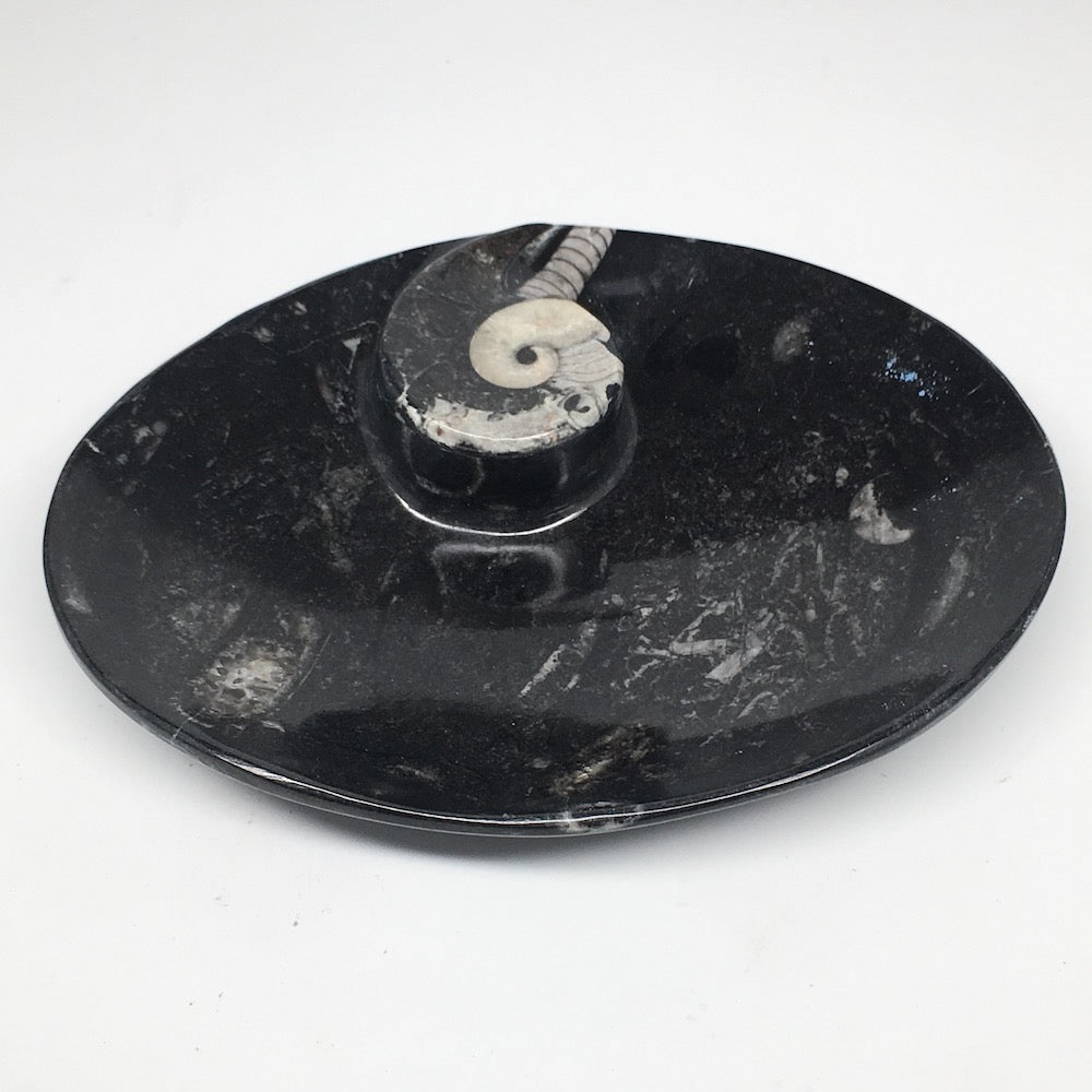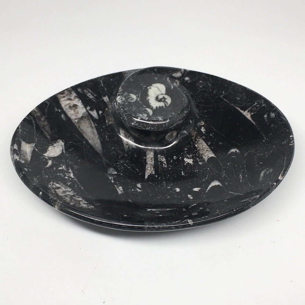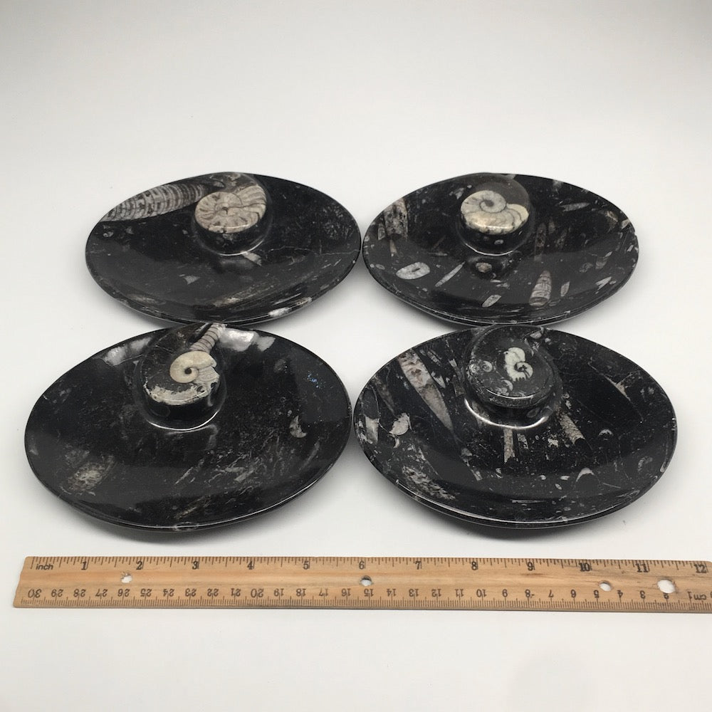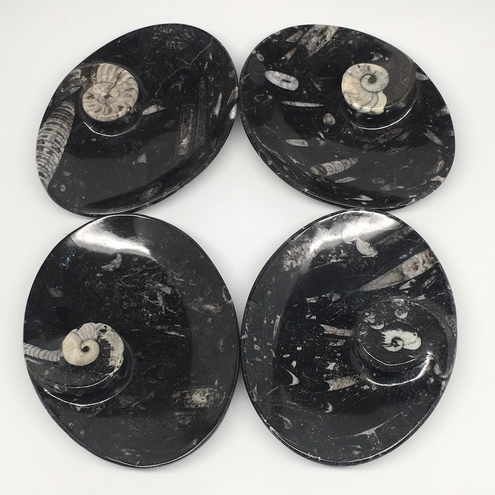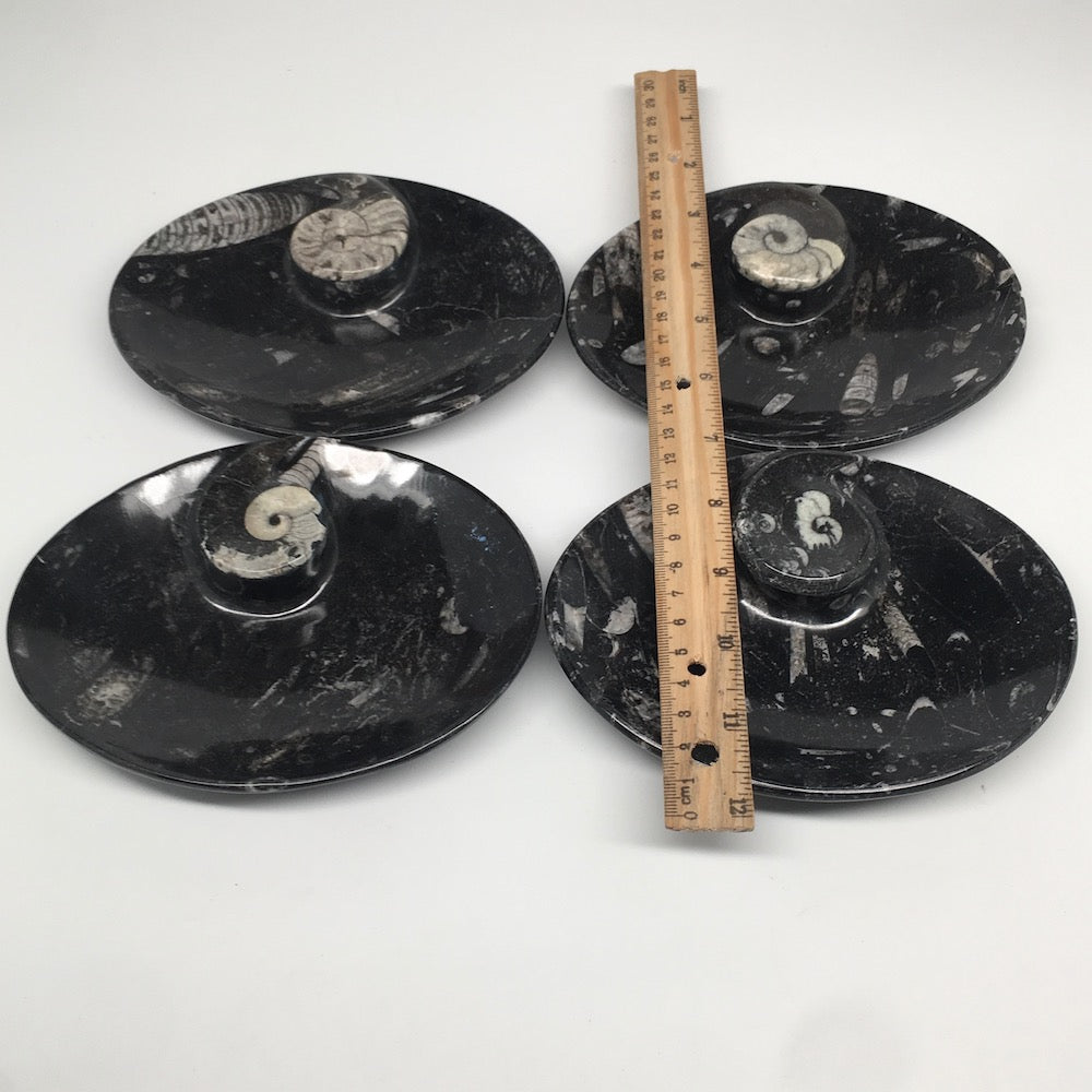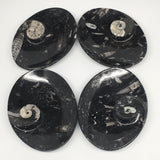 4pcs,6.25"x4.75"x5mm Oval Fossils Orthoceras Ammonite Bowls Dishes,Black, MF1390