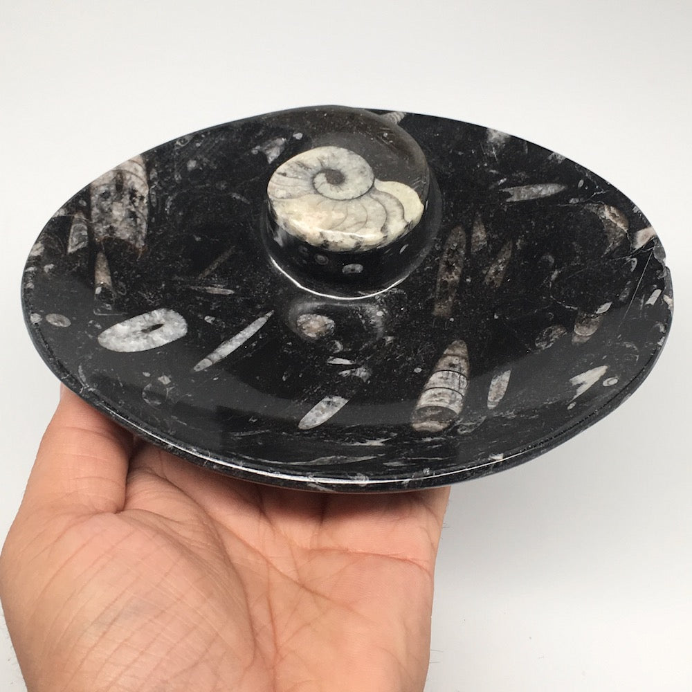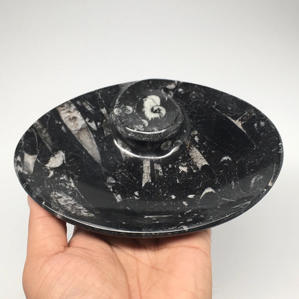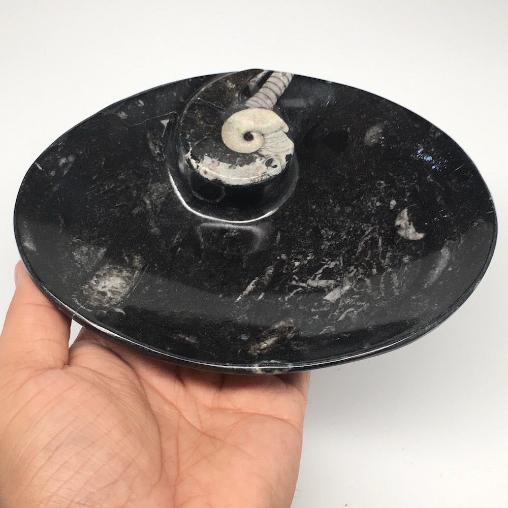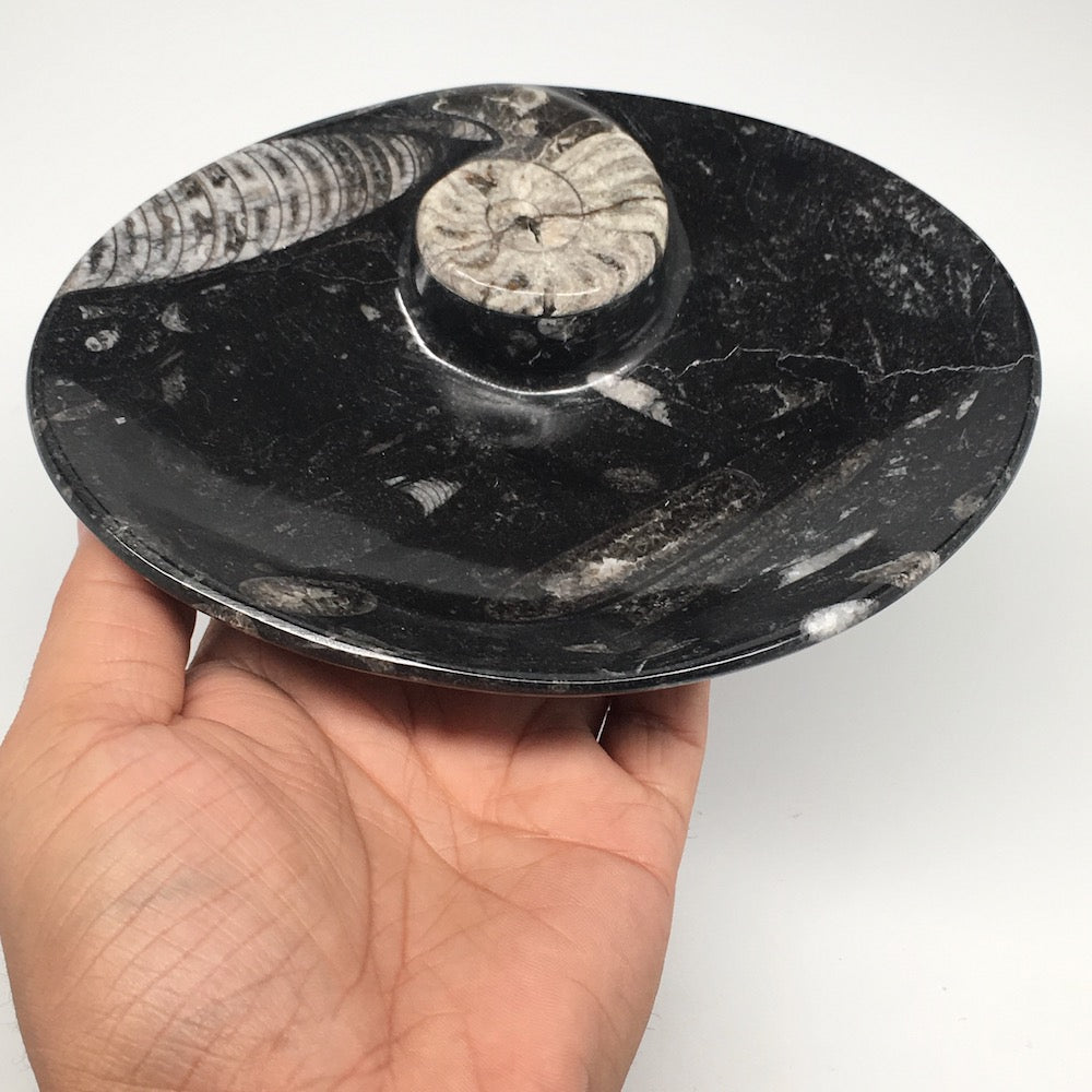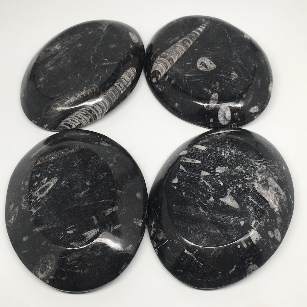 4pcs,6.25"x4.75"x5mm Oval Fossils Orthoceras Ammonite Bowls Dishes,Black, MF1390