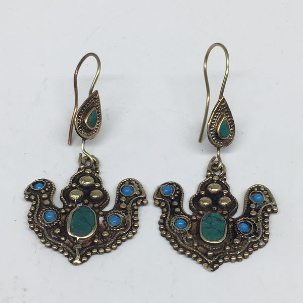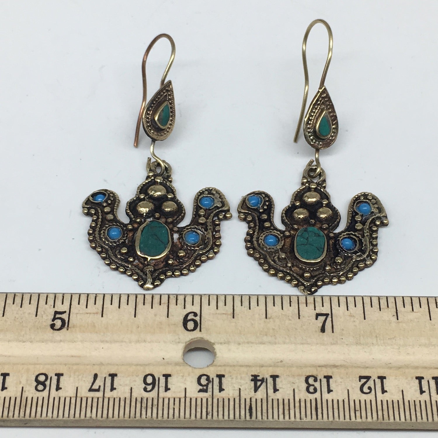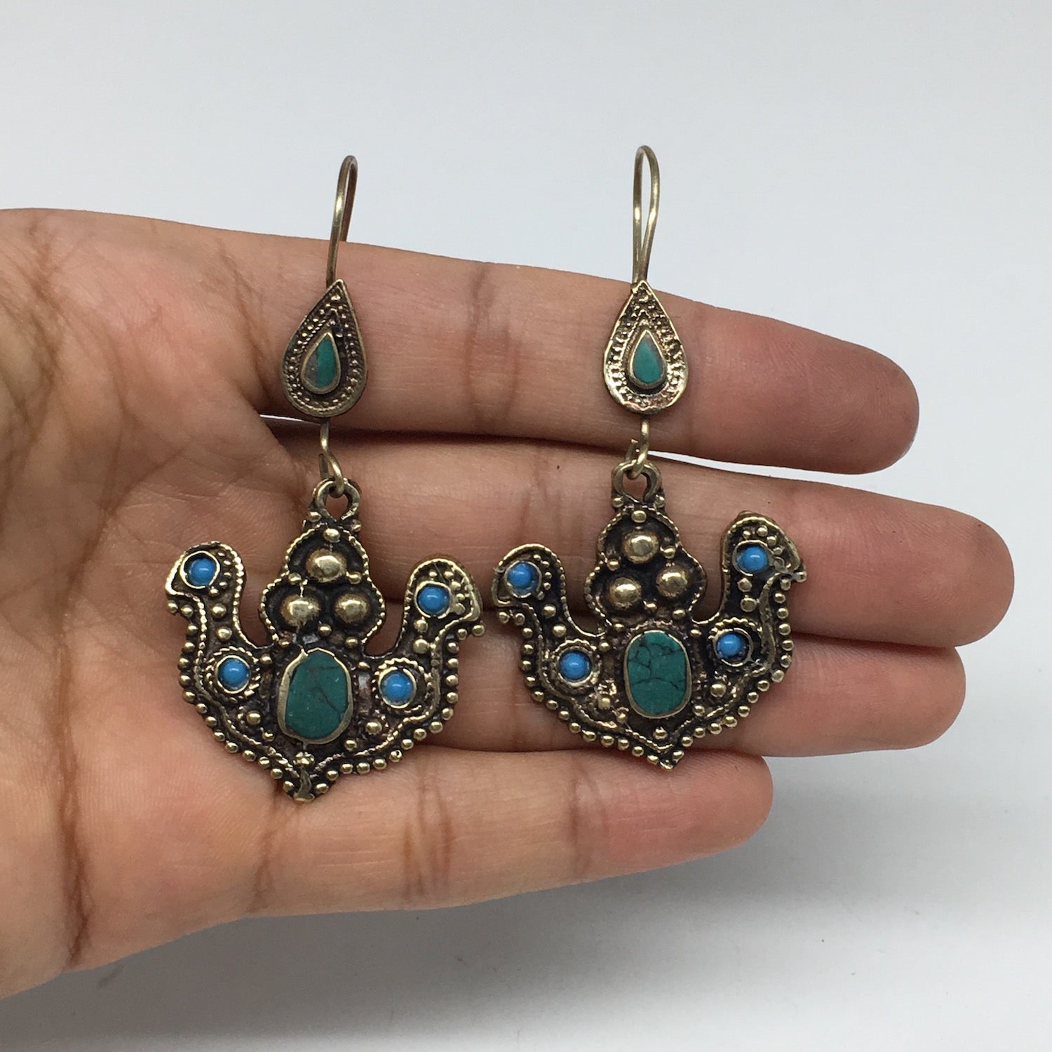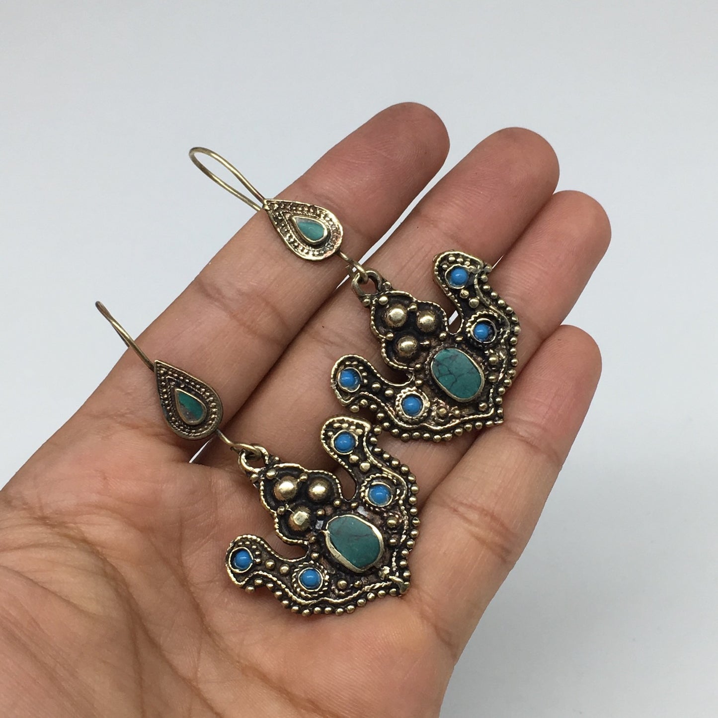 1pc,2.6" Turkmen Earring Synthetic Turquoise Fashion ATS Boho @Afghanistan,TE181