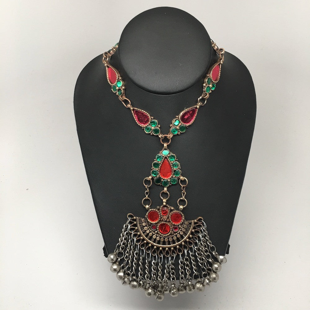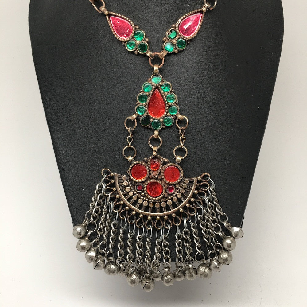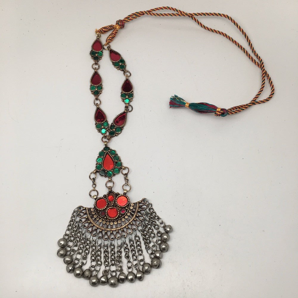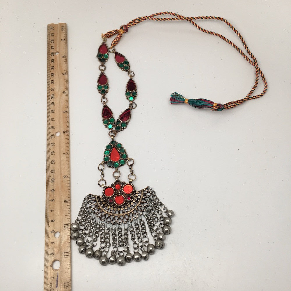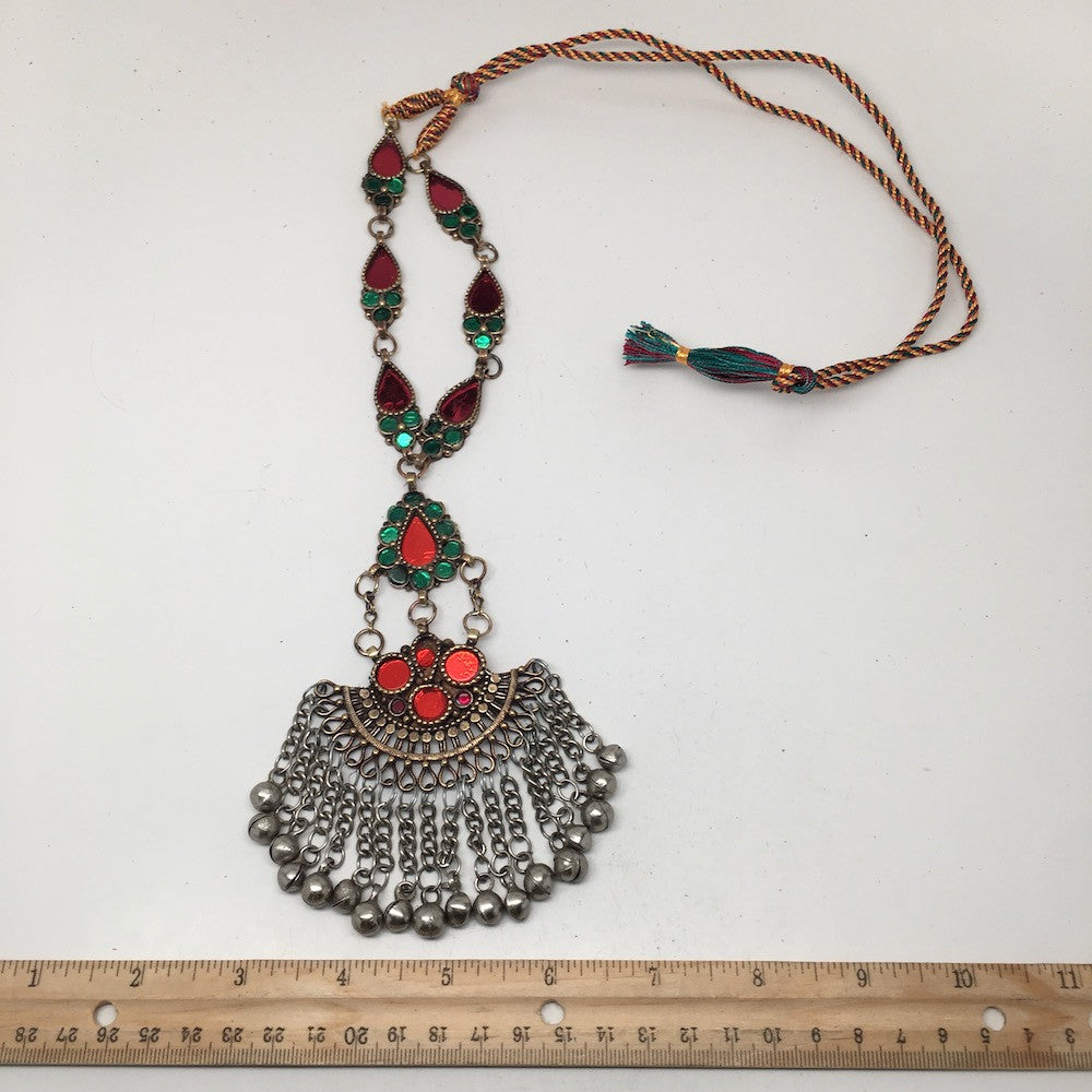 Handmade Afghan Tribal Kuchi Multi-Color Glass Bells Boho ATS Necklace, KN361