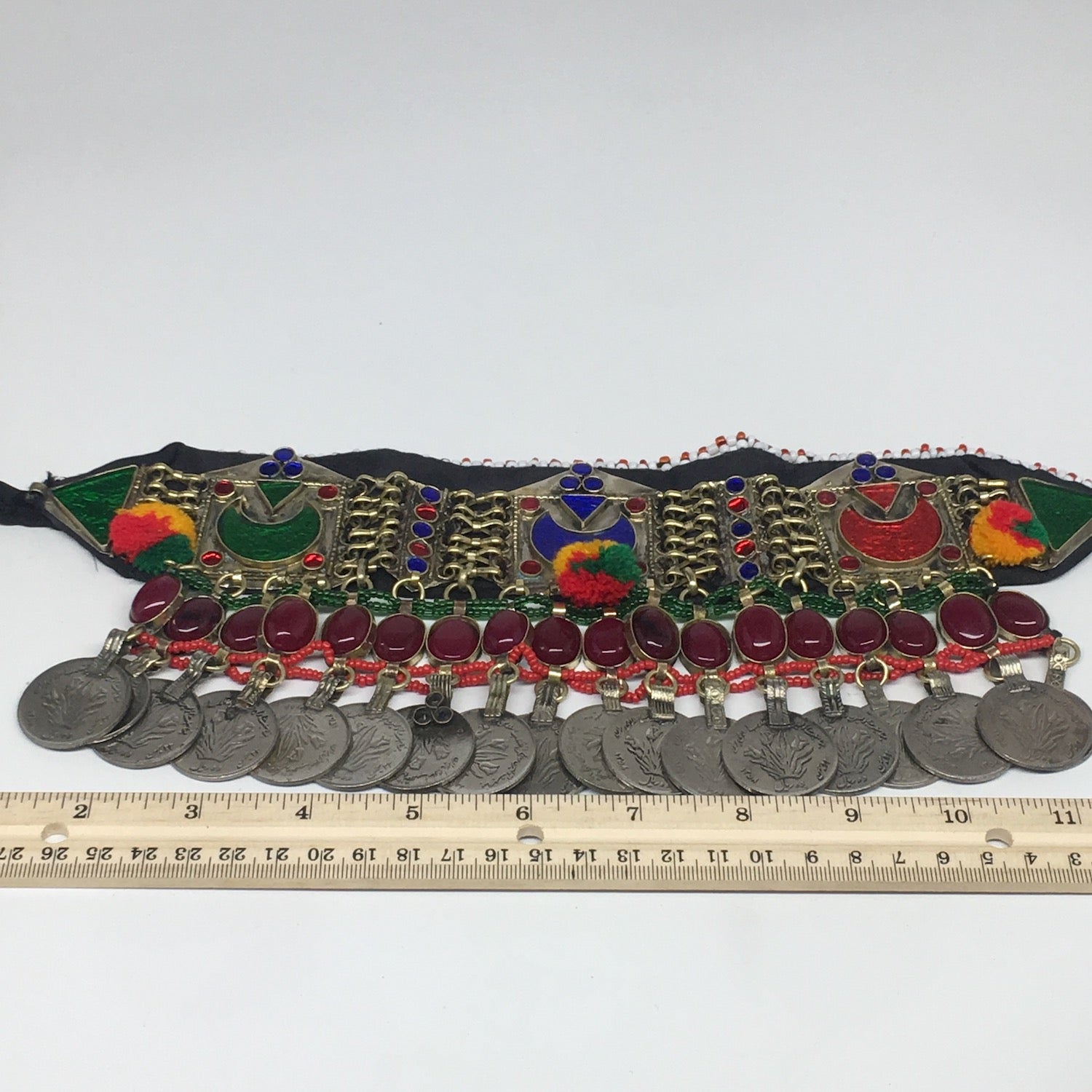 11.5"x4.5" Kuchi Choker Multi-Color Tribal Gypsy Bohemian Statement Coins,KC514