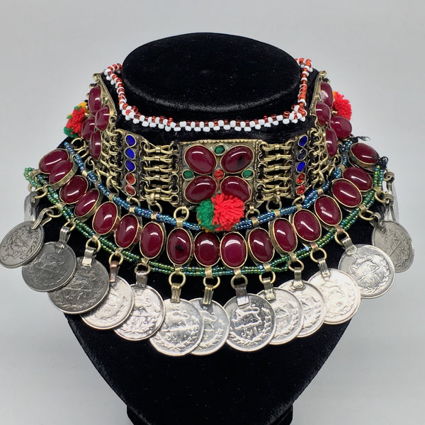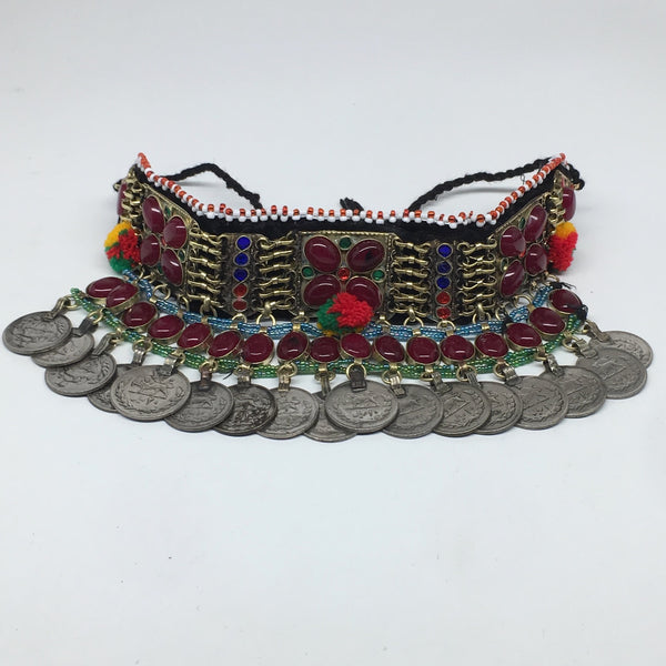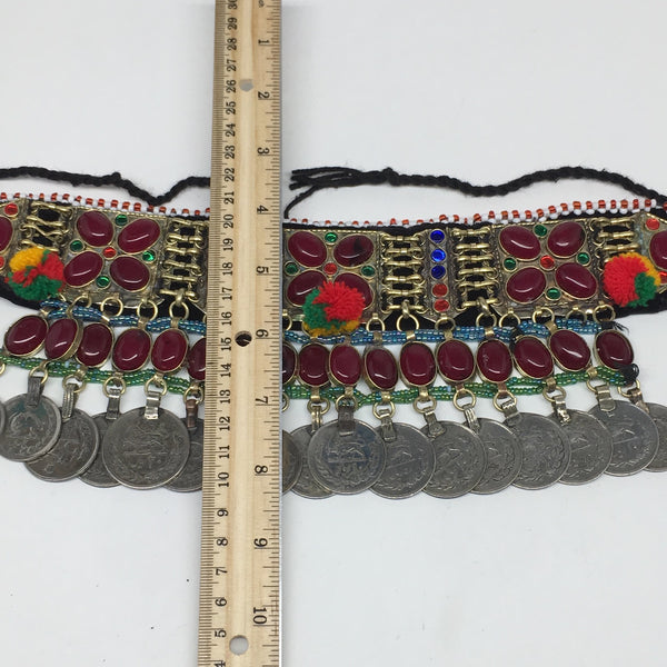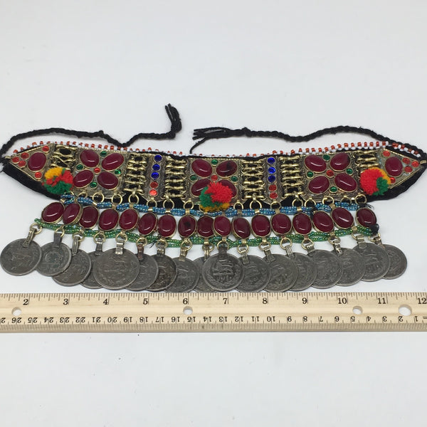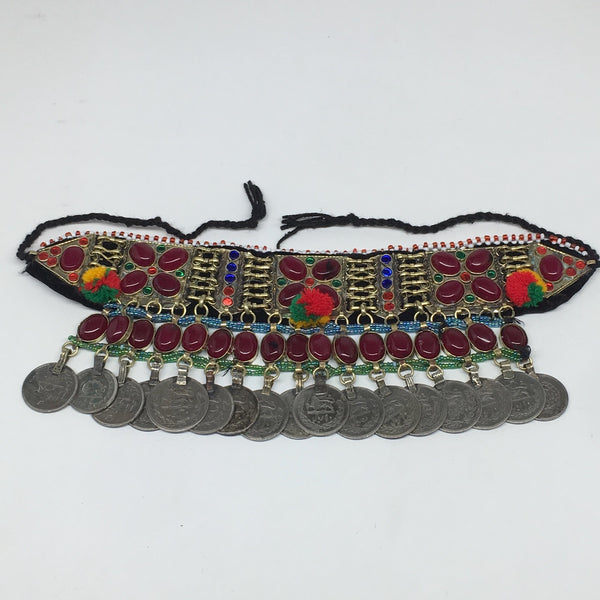 12"x4.25"Kuchi Choker Multi-Color Tribal Gypsy Bohemian Statement Coins,CK543