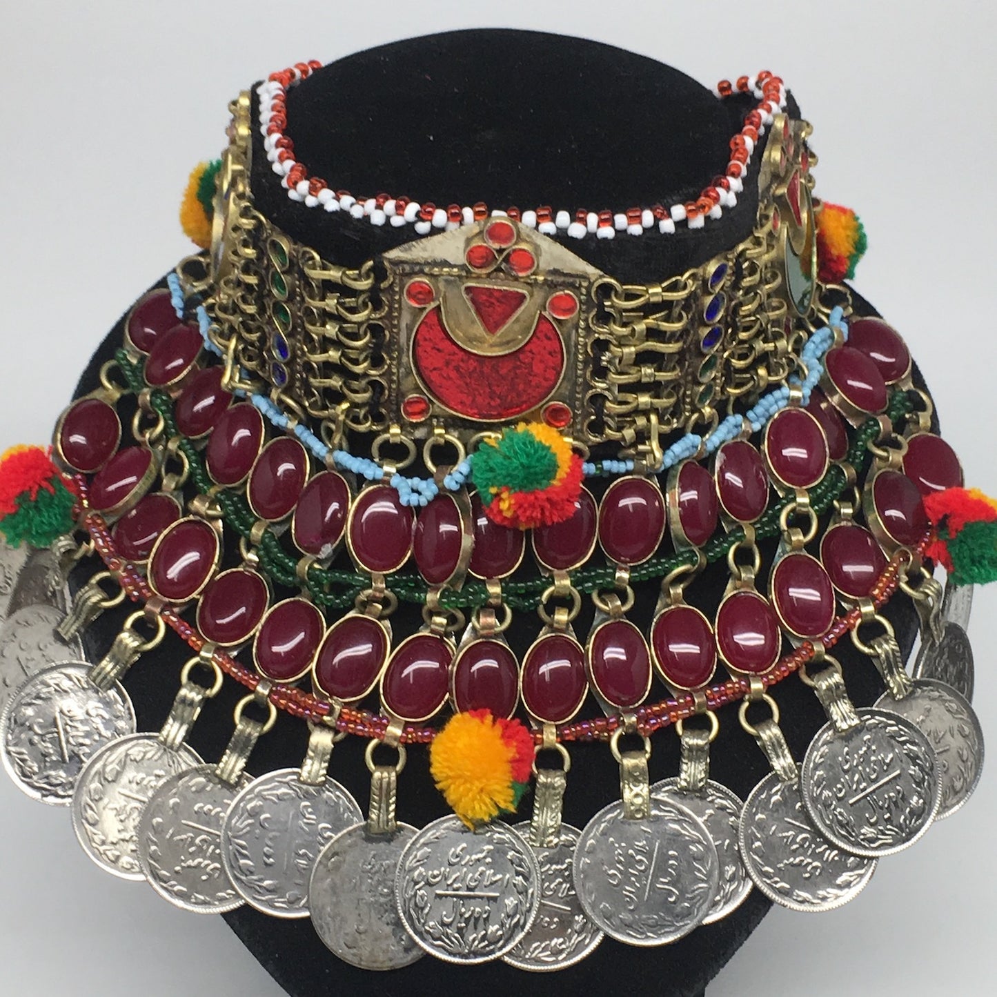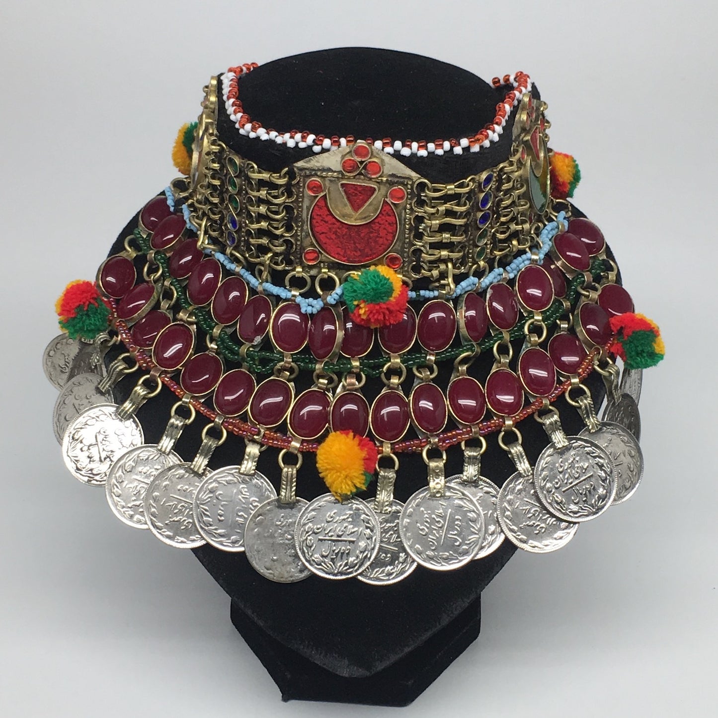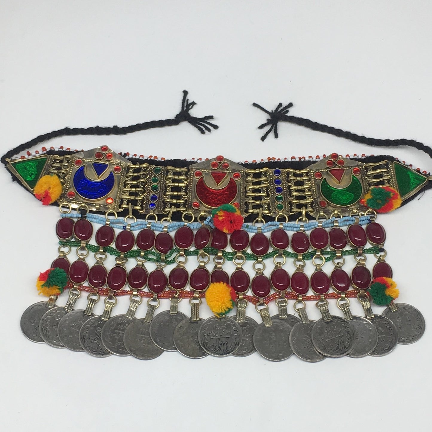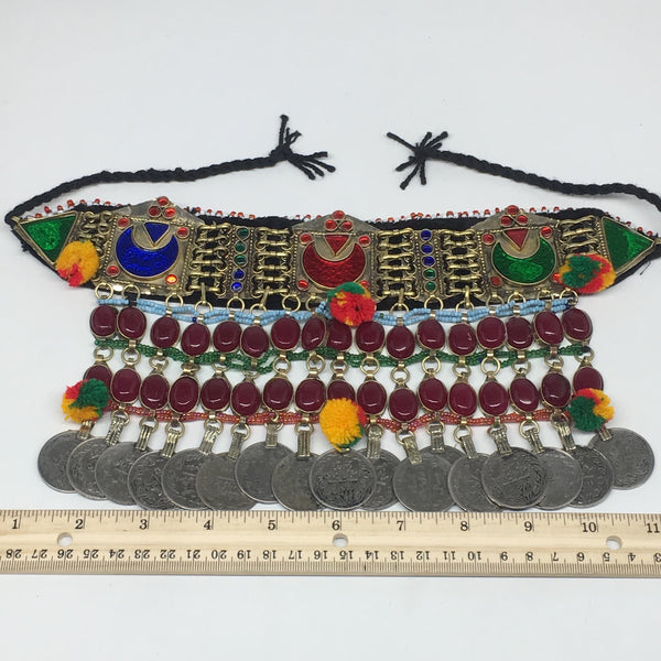 11.5"x5.75"Kuchi Choker Multi-Color Tribal Gypsy Bohemian Statement Coins,CK563