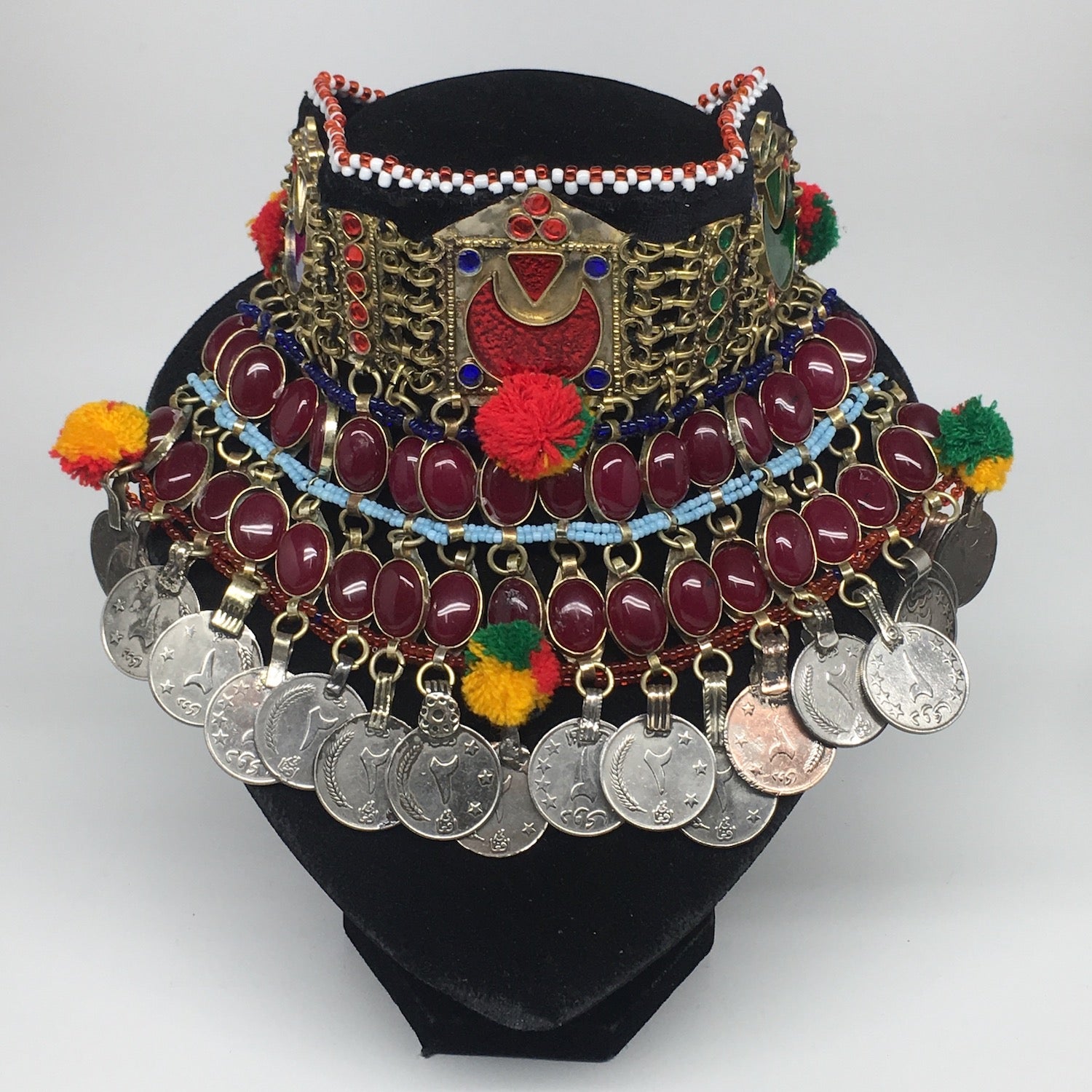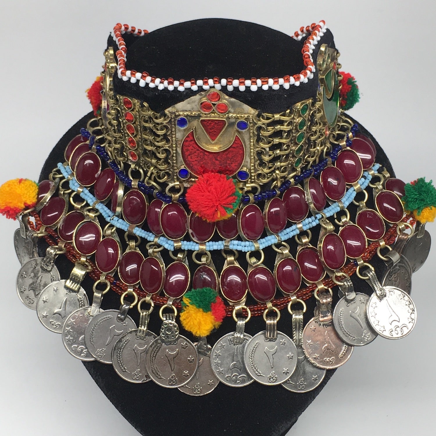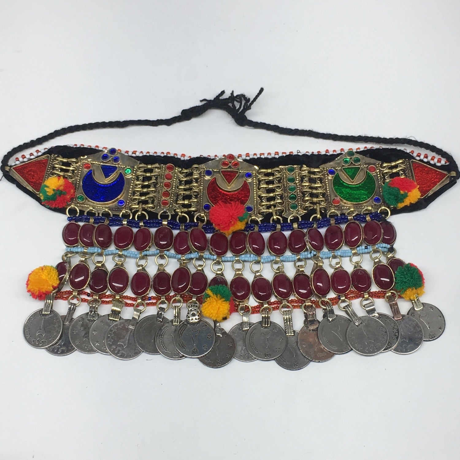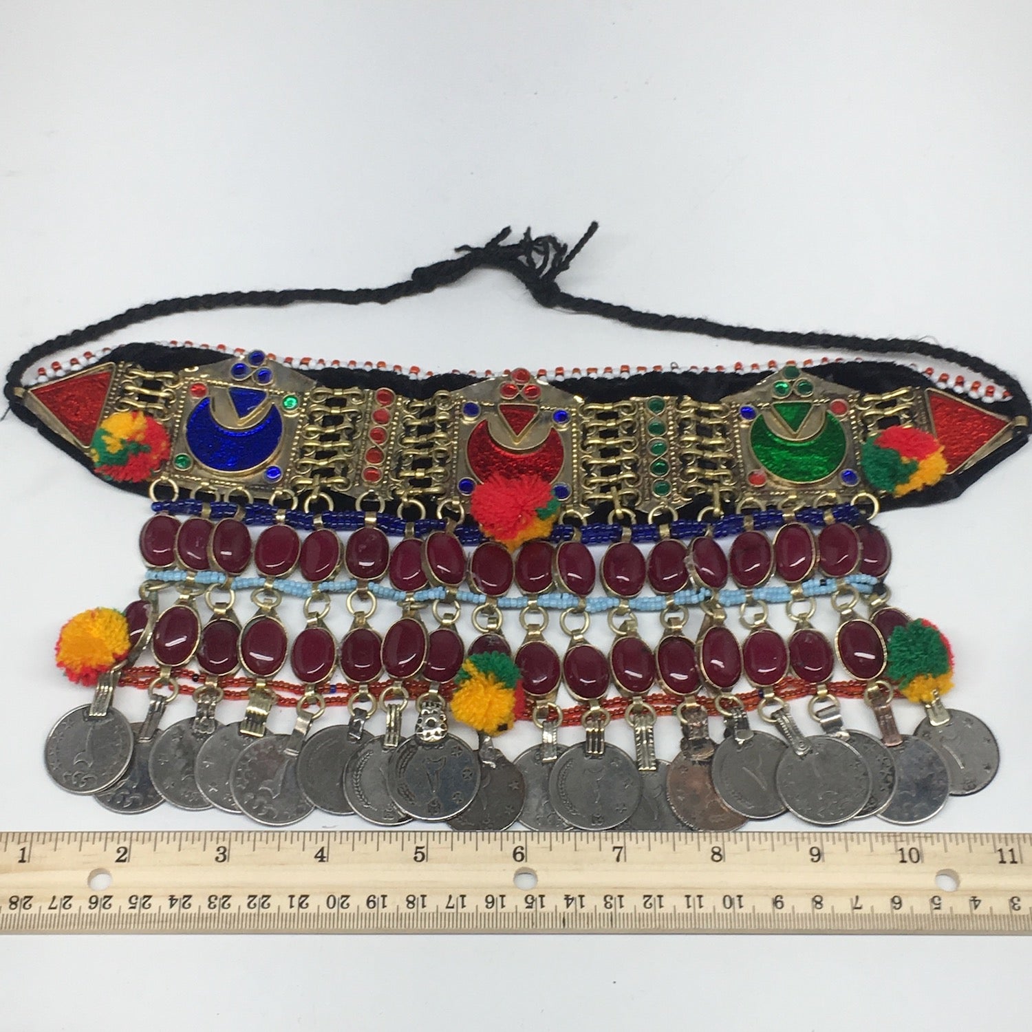 11.5"x5.75"Kuchi Choker Multi-Color Tribal Gypsy Bohemian Statement Coins,CK571