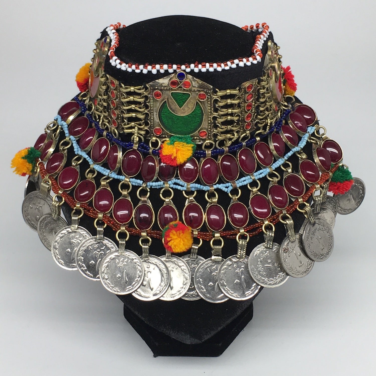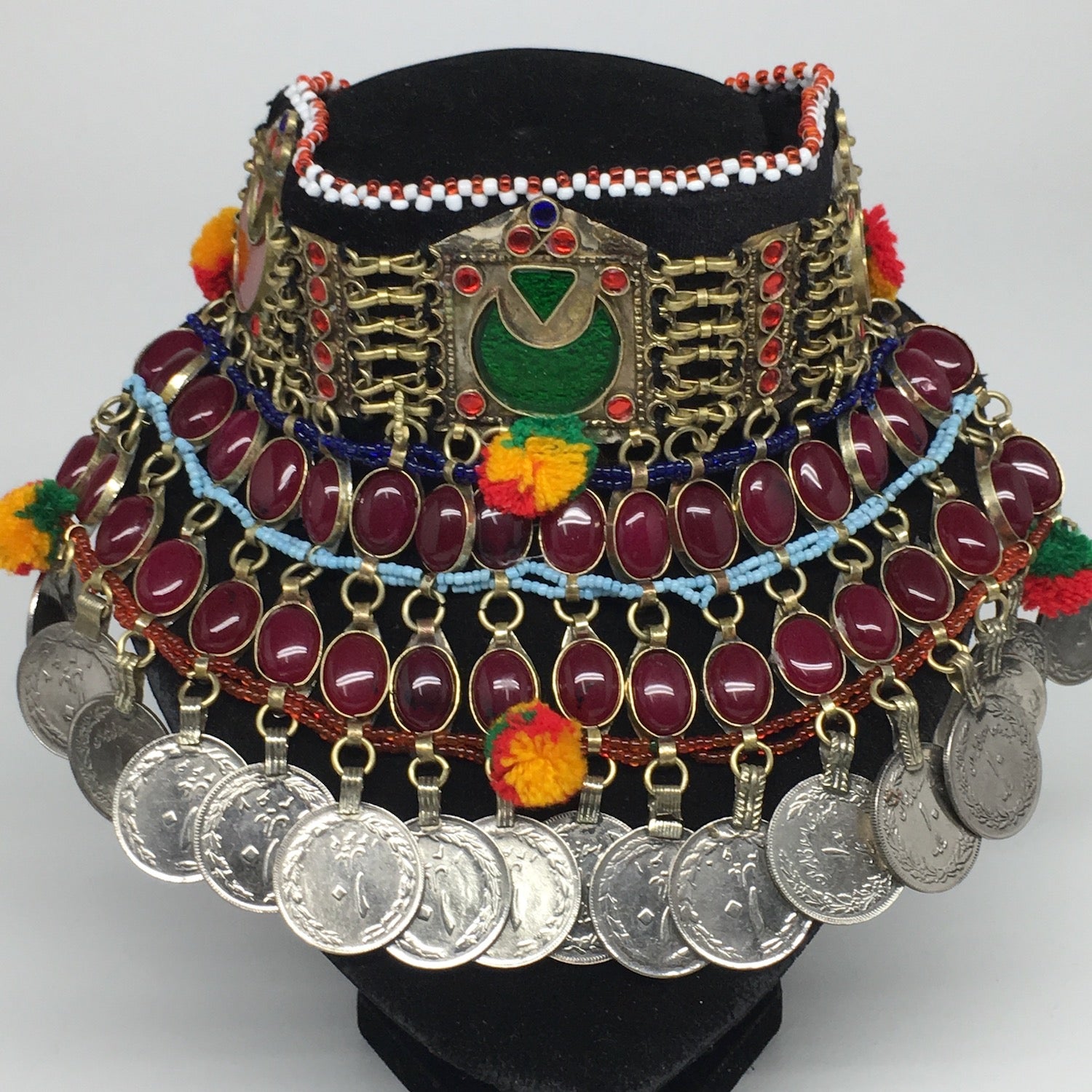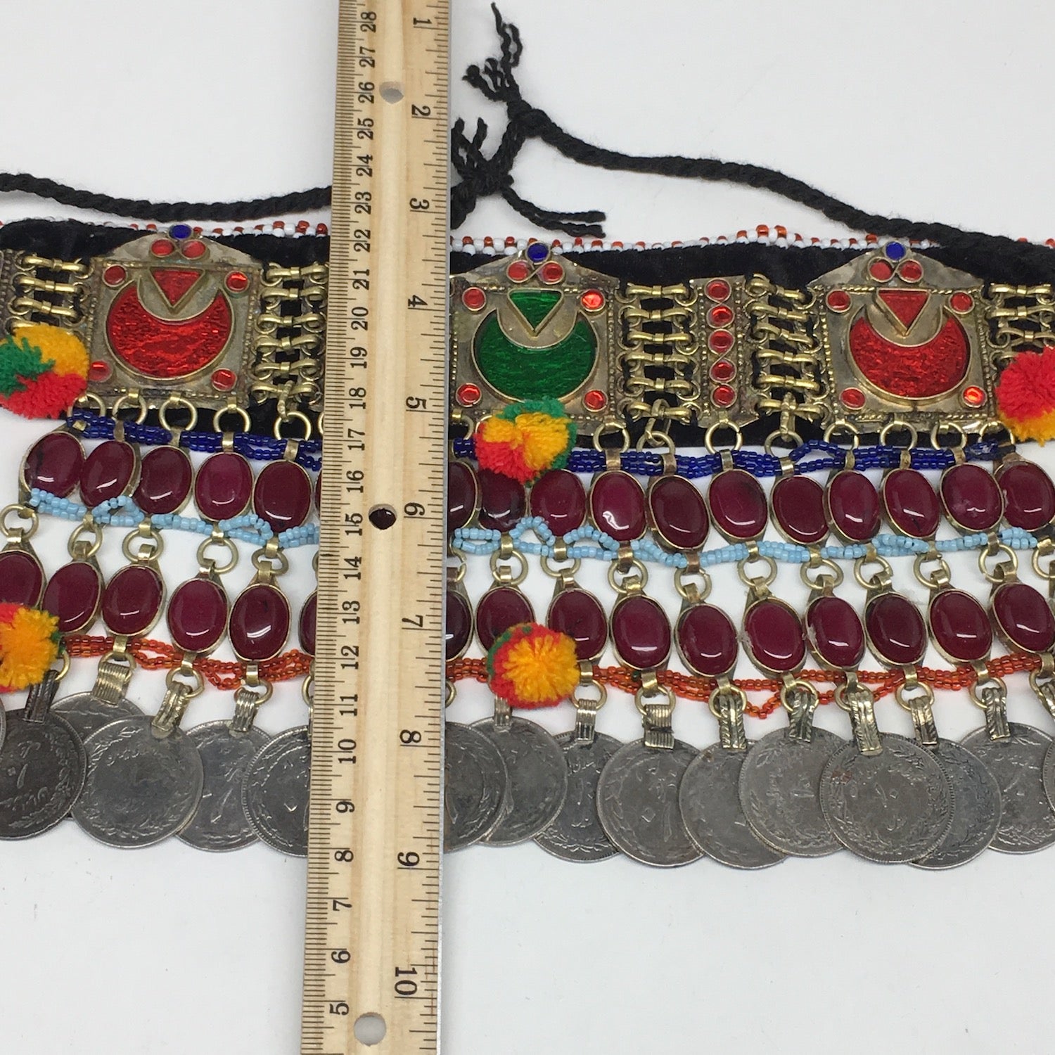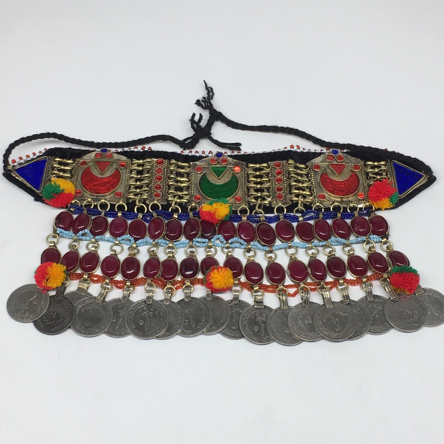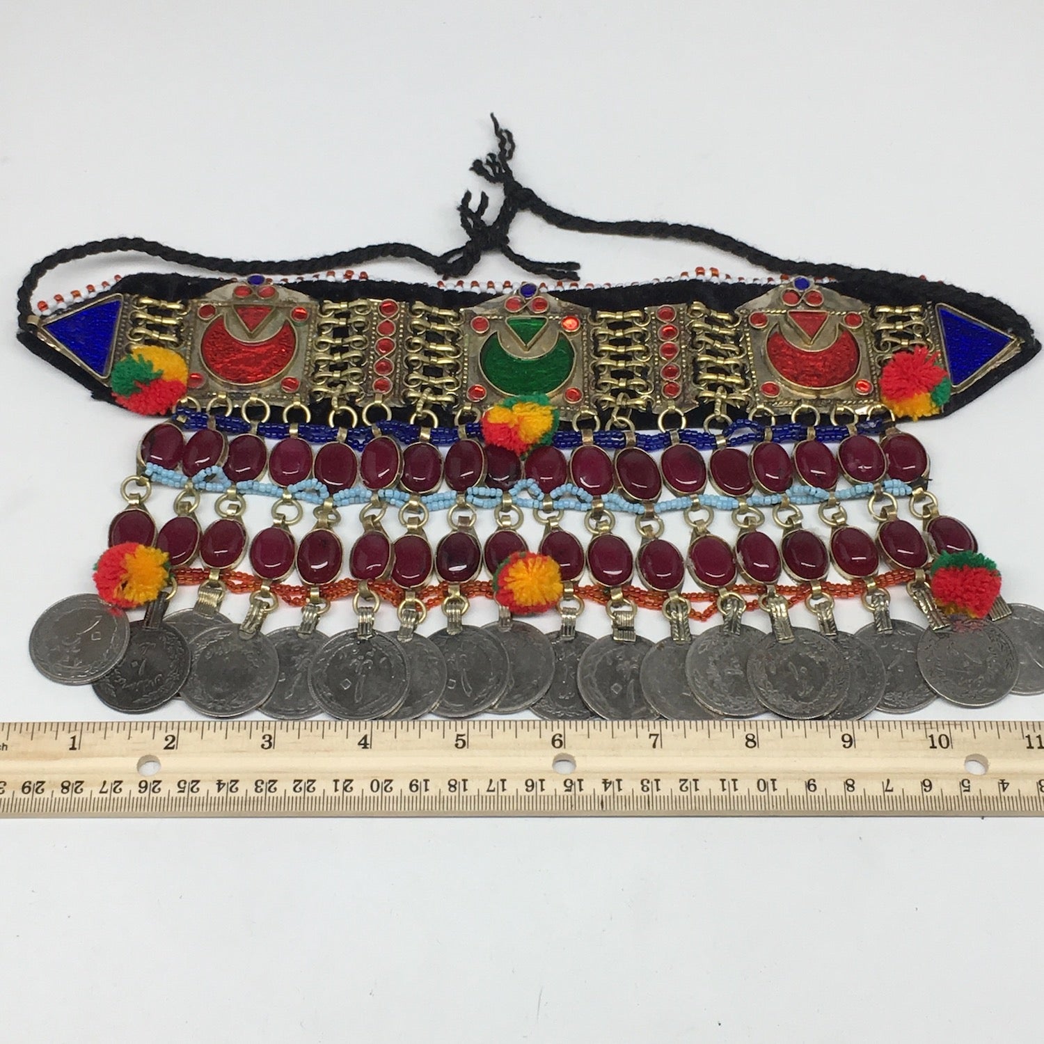 11.5"x5.75"Kuchi Choker Multi-Color Tribal Gypsy Bohemian Statement Coins,CK580