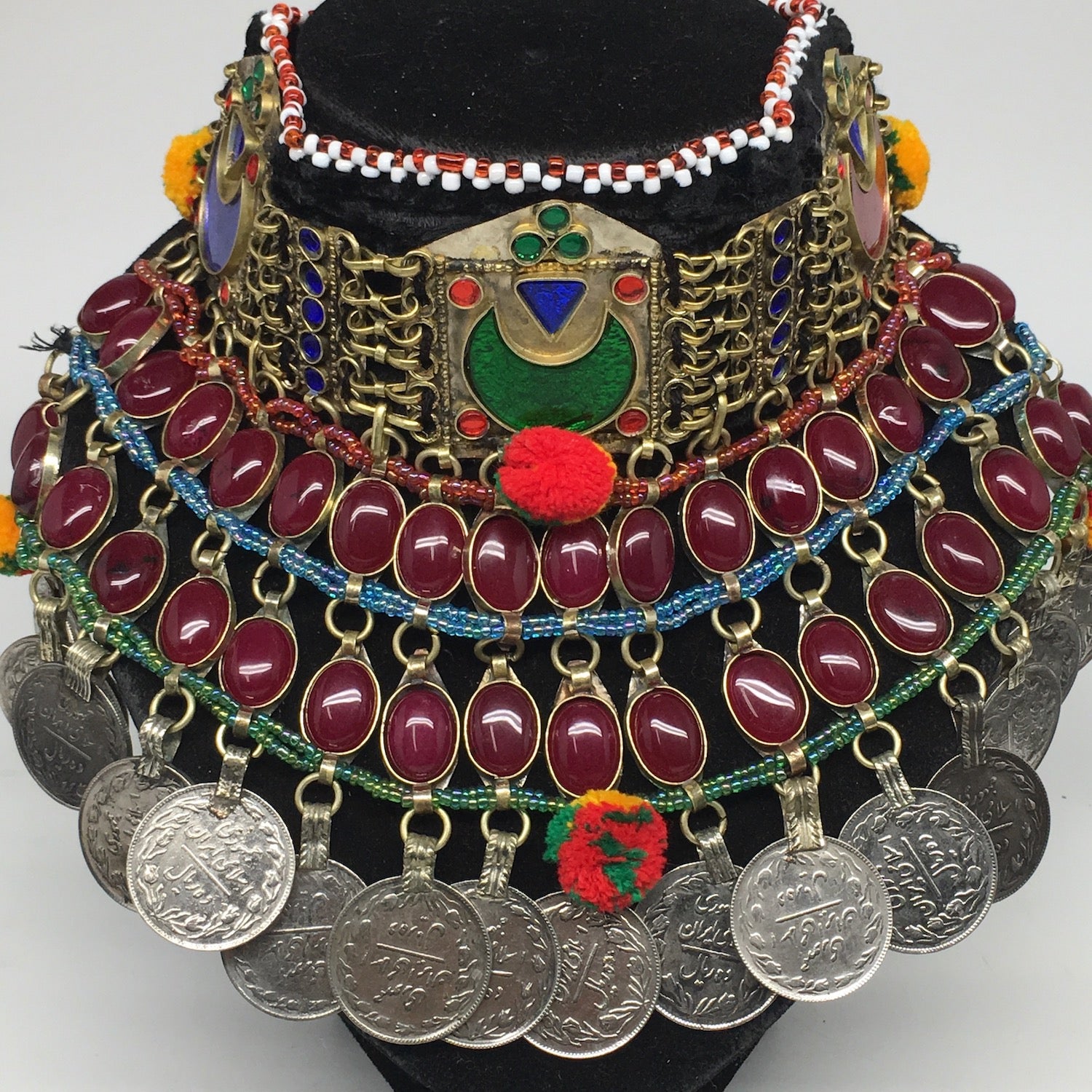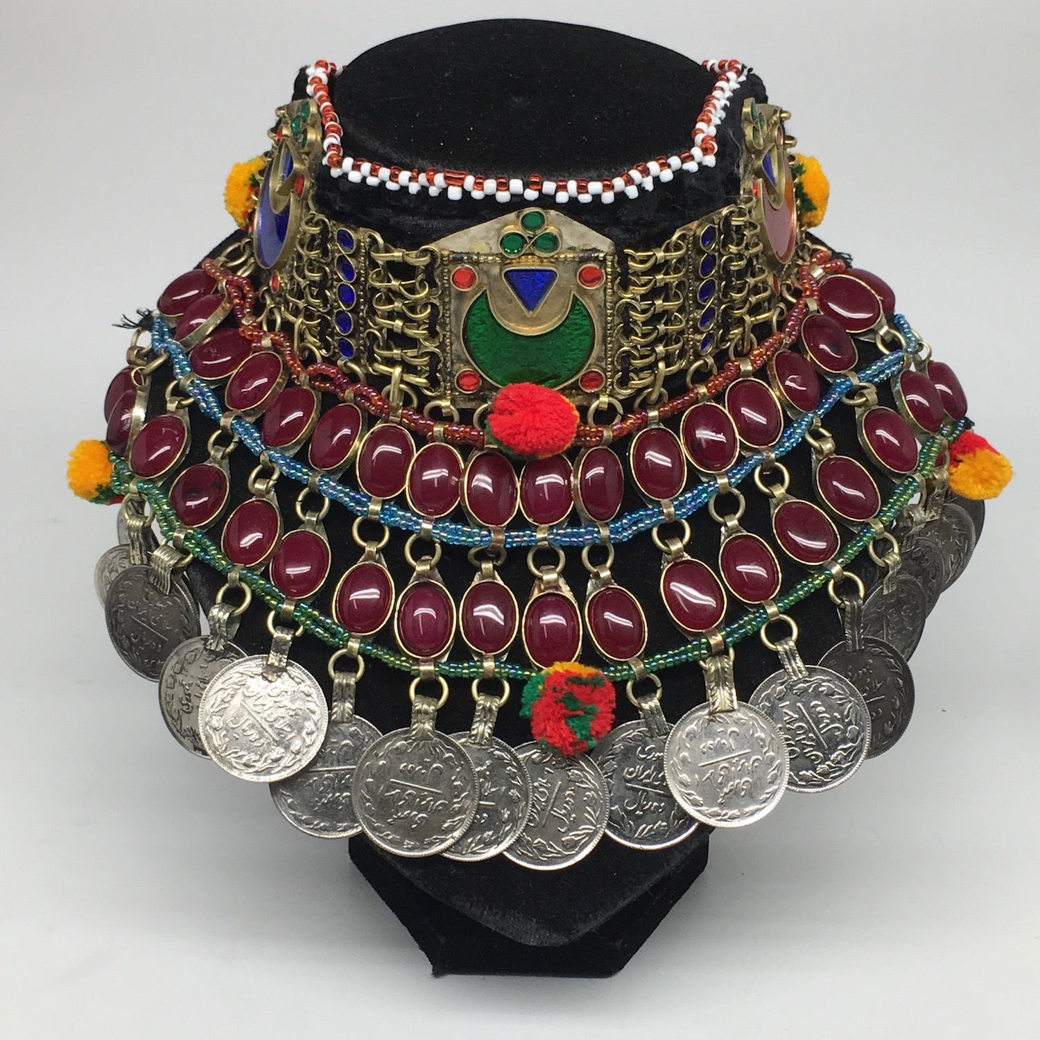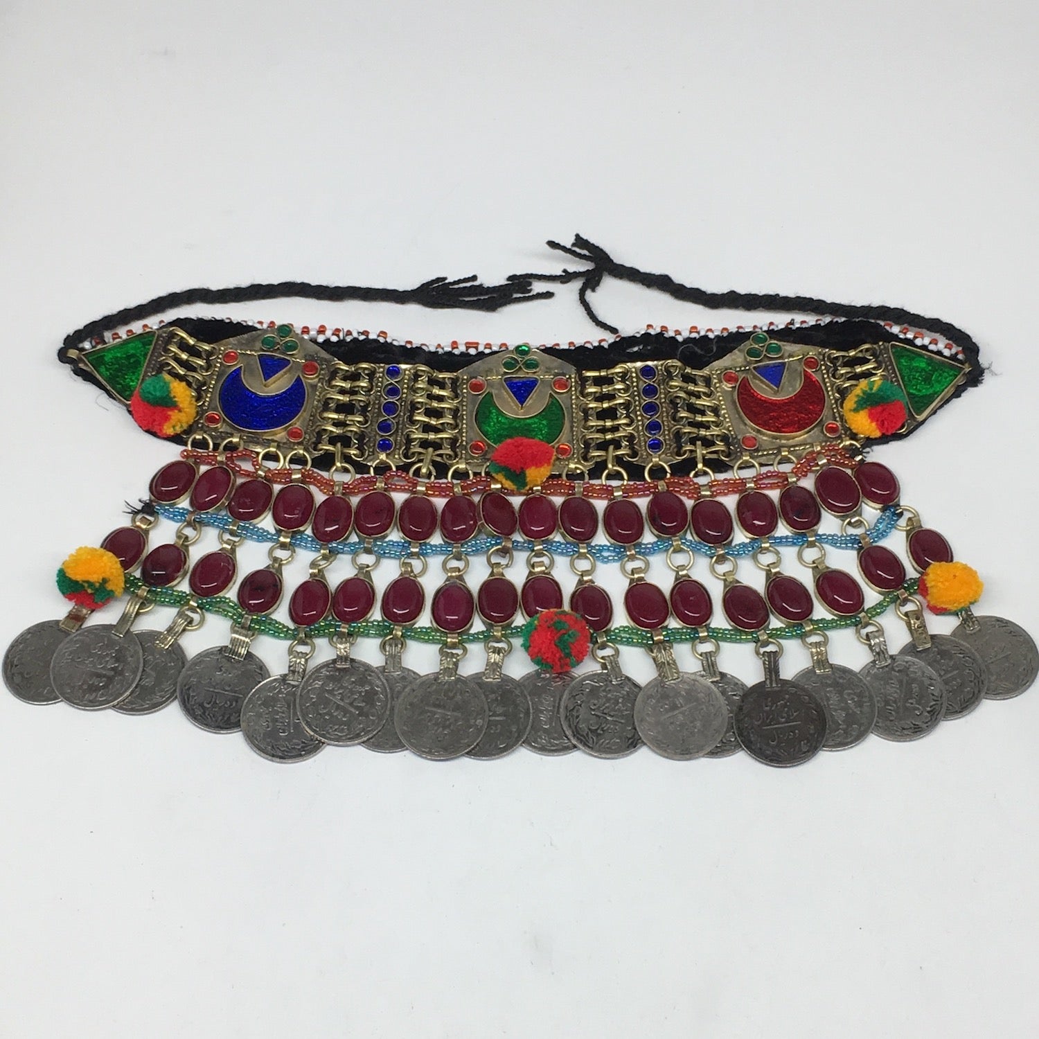 11.5"x5.75"Kuchi Choker Multi-Color Tribal Gypsy Bohemian Statement Coins,CK598