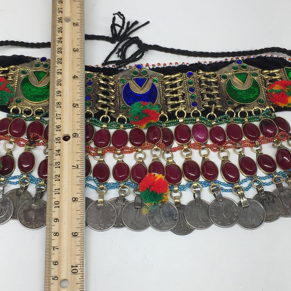 11.5"x5.75"Kuchi Choker Multi-Color Tribal Gypsy Bohemian Statement Coins,CK607