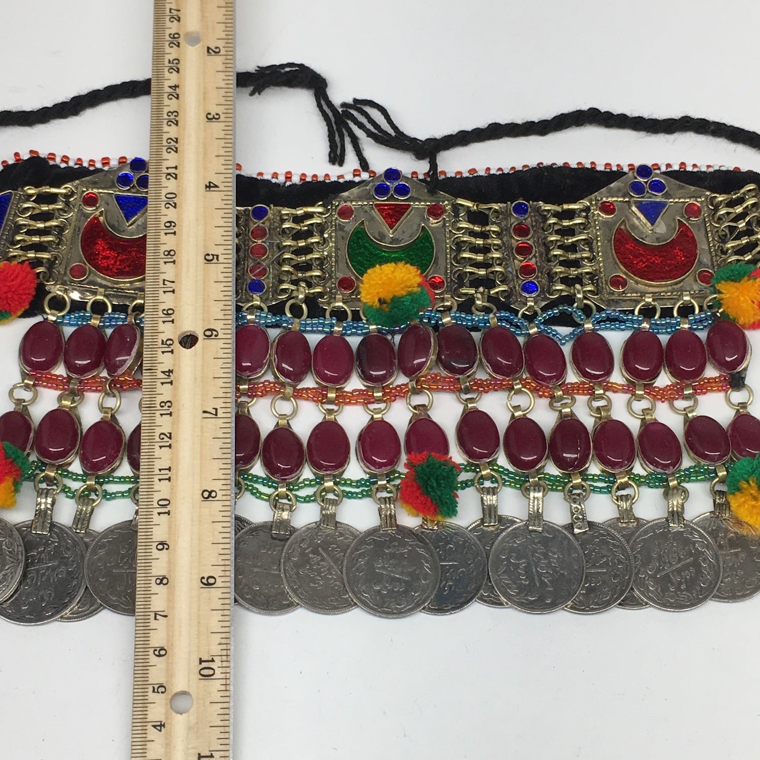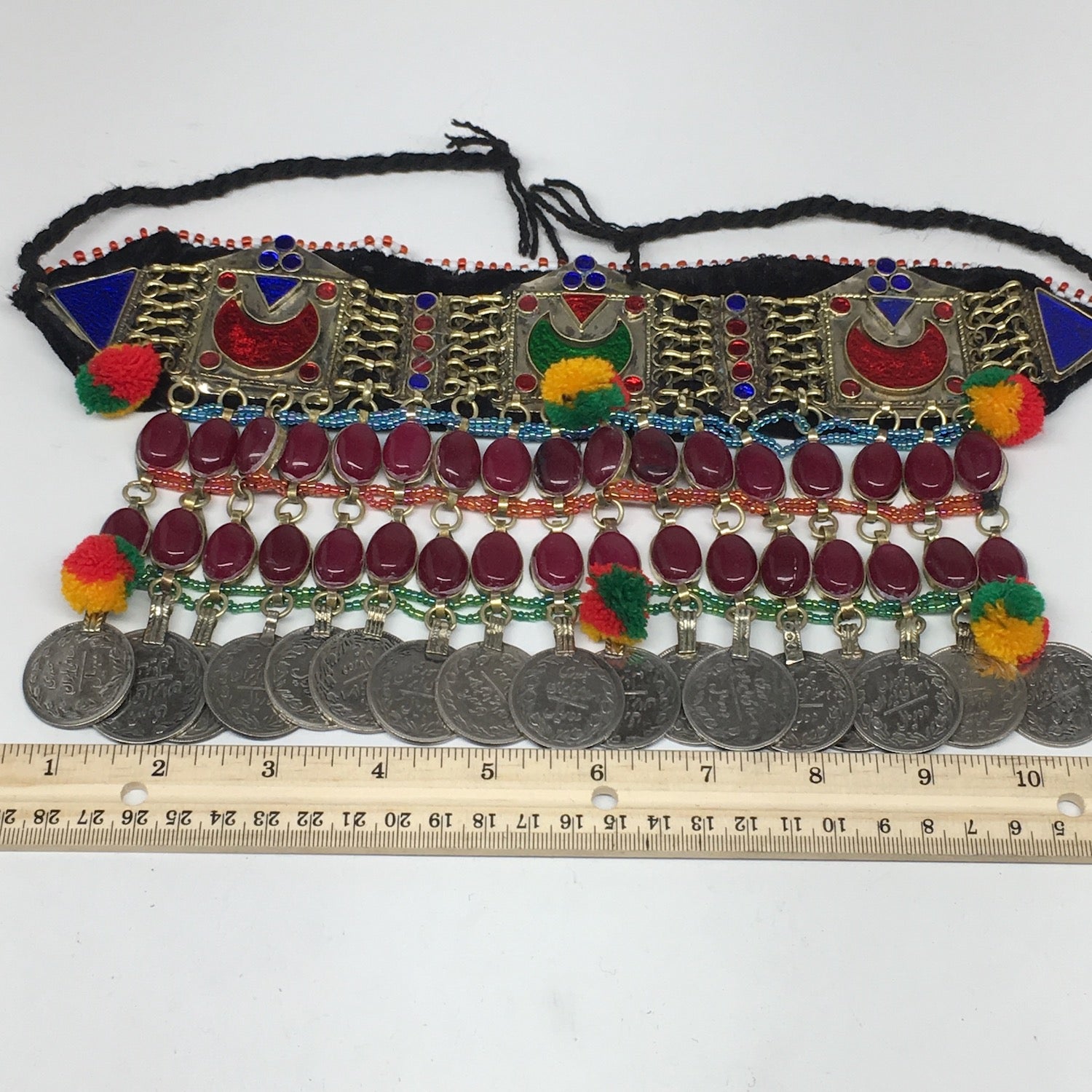 11.5"x5.75"Kuchi Choker Multi-Color Tribal Gypsy Bohemian Statement Coins,CK613
