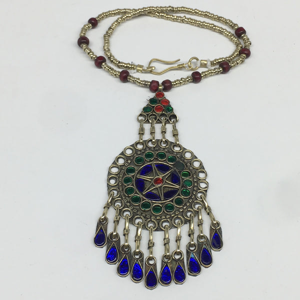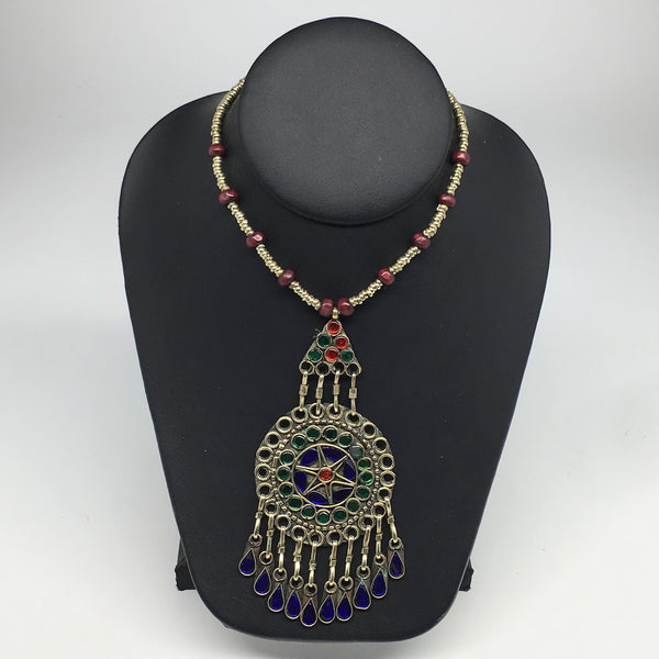 Kuchi Necklace Afghan Tribal Fashion Colorful Glass ATS Necktie Necklace, KN359