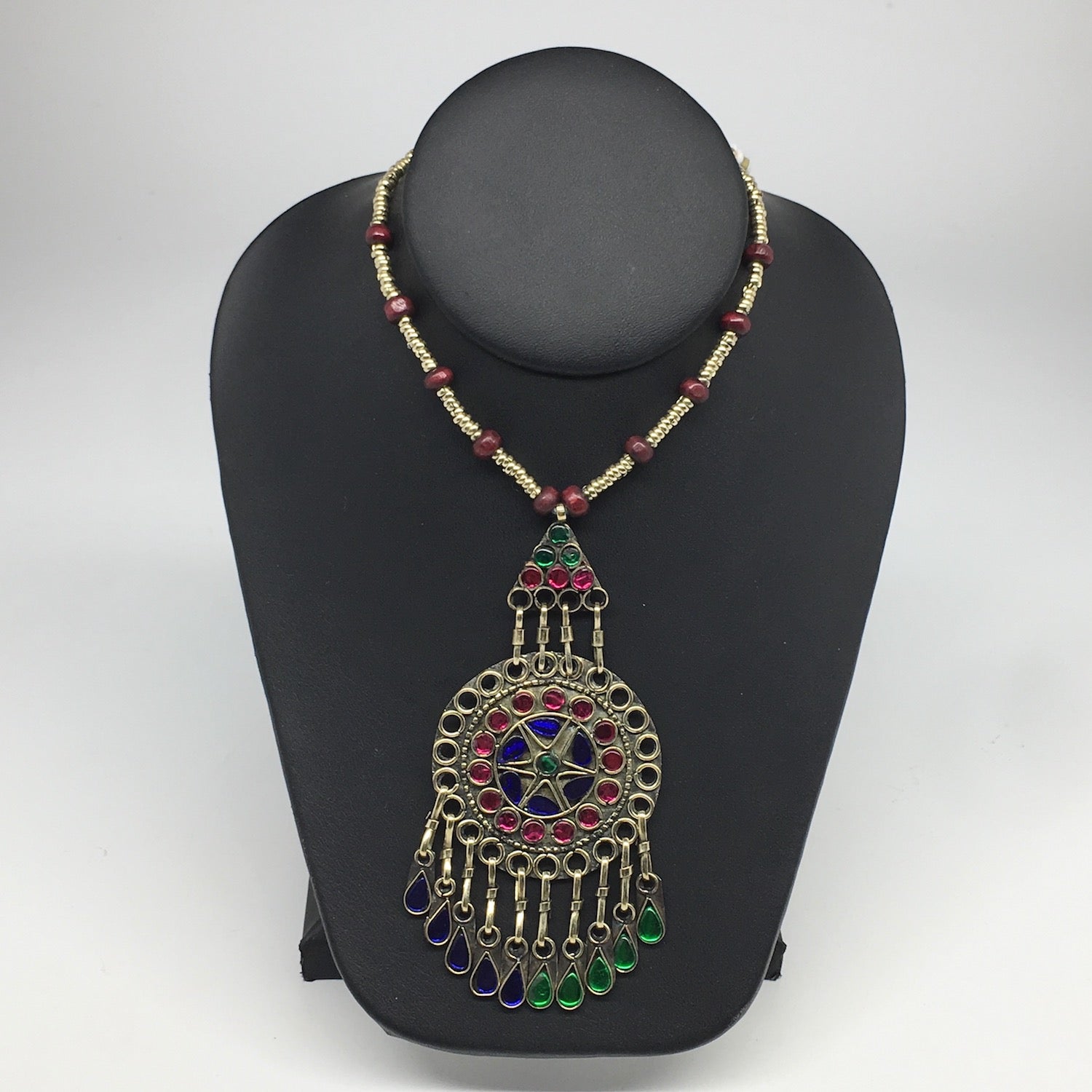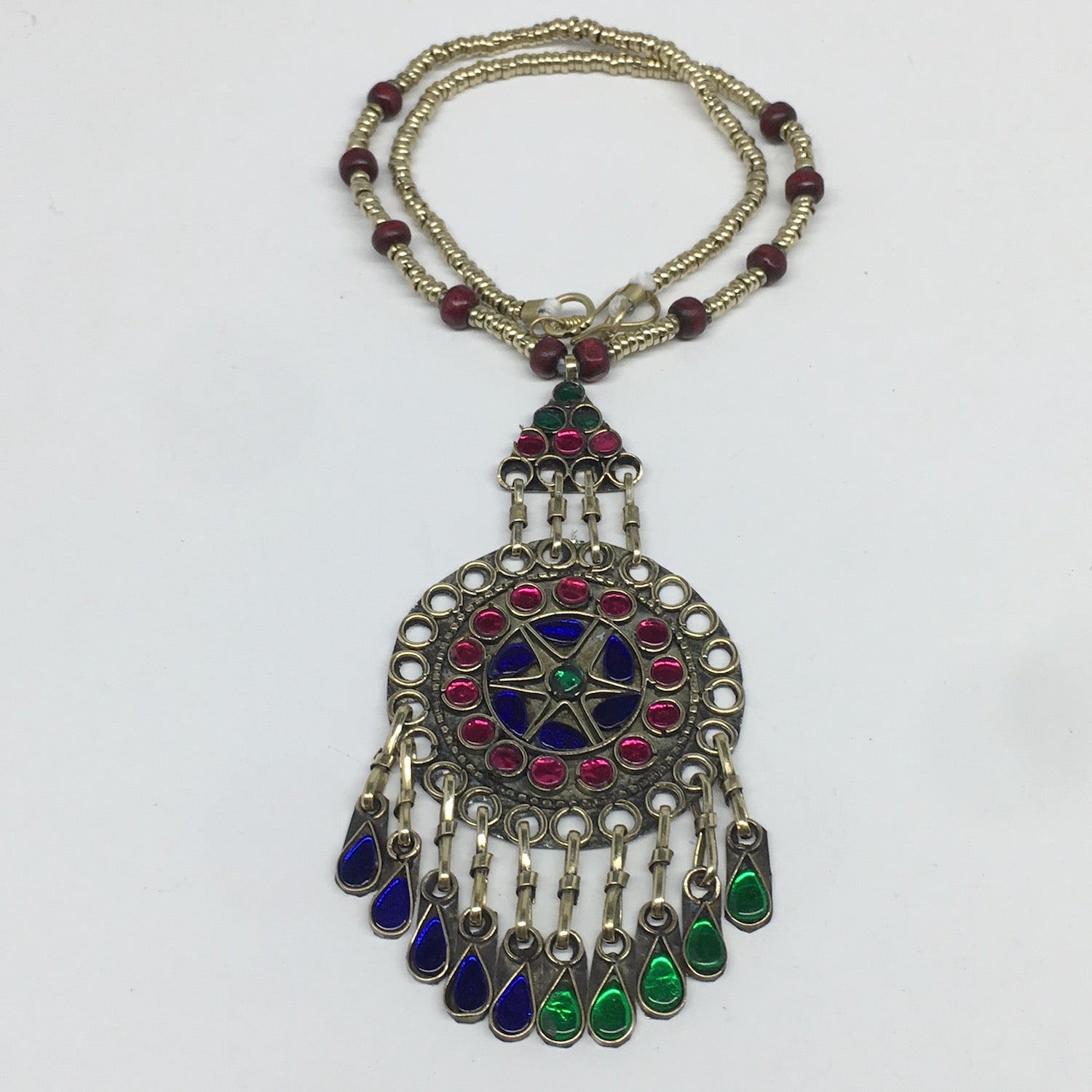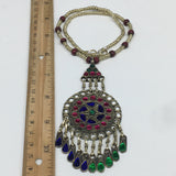 Kuchi Necklace Afghan Tribal Fashion Colorful Glass ATS Necktie Necklace, KN381