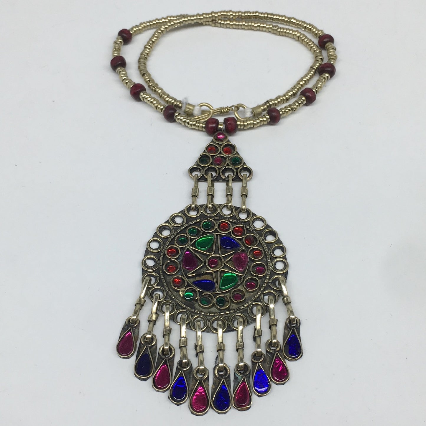 Afghan craft men make all these choker necklaces and other pieces of authentic beautiful jewelry one by one and by hands. All of the crafters are self-employed and make these items by taking orders. The metals used in these kinds of jewelry are called different names, some call it German Silver, some called it Gypsy and some call it Alpaca Silver. However, just like Tibetan Silver, they don't give body reactions or allergies. The metal doesn't change color either. These Jewelry have been in the market for centuries.
