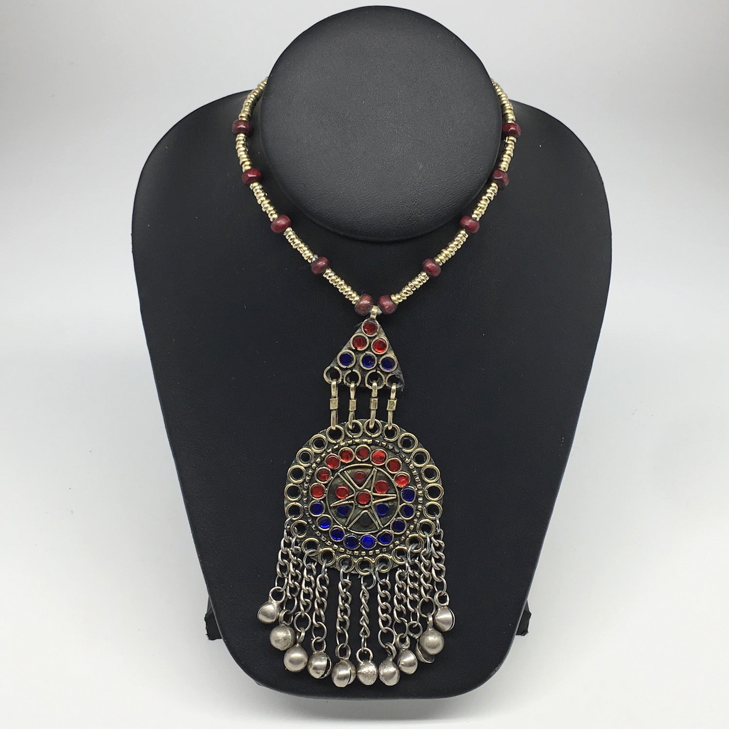 Afghan craft men make all these choker necklaces and other pieces of authentic beautiful jewelry one by one and by hands. All of the crafters are self-employed and make these items by taking orders. The metals used in these kinds of jewelry are called different names, some call it German Silver, some called it Gypsy and some call it Alpaca Silver. However, just like Tibetan Silver, they don't give body reactions or allergies. The metal doesn't change color either. These Jewelry have been in the market for centuries.