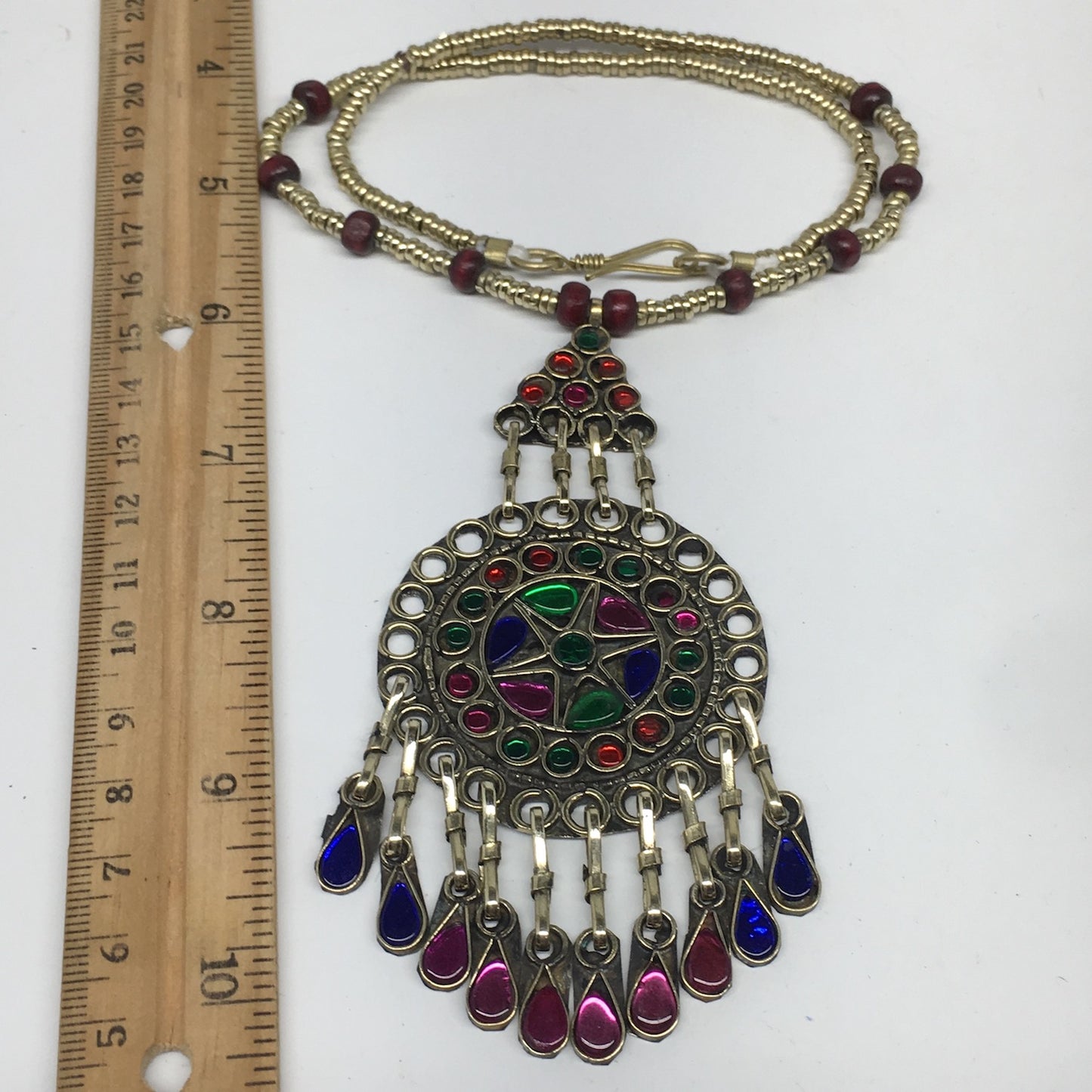 Afghan craft men make all these choker necklaces and other pieces of authentic beautiful jewelry one by one and by hands. All of the crafters are self-employed and make these items by taking orders. The metals used in these kinds of jewelry are called different names, some call it German Silver, some called it Gypsy and some call it Alpaca Silver. However, just like Tibetan Silver, they don't give body reactions or allergies. The metal doesn't change color either. These Jewelry have been in the market for centuries.