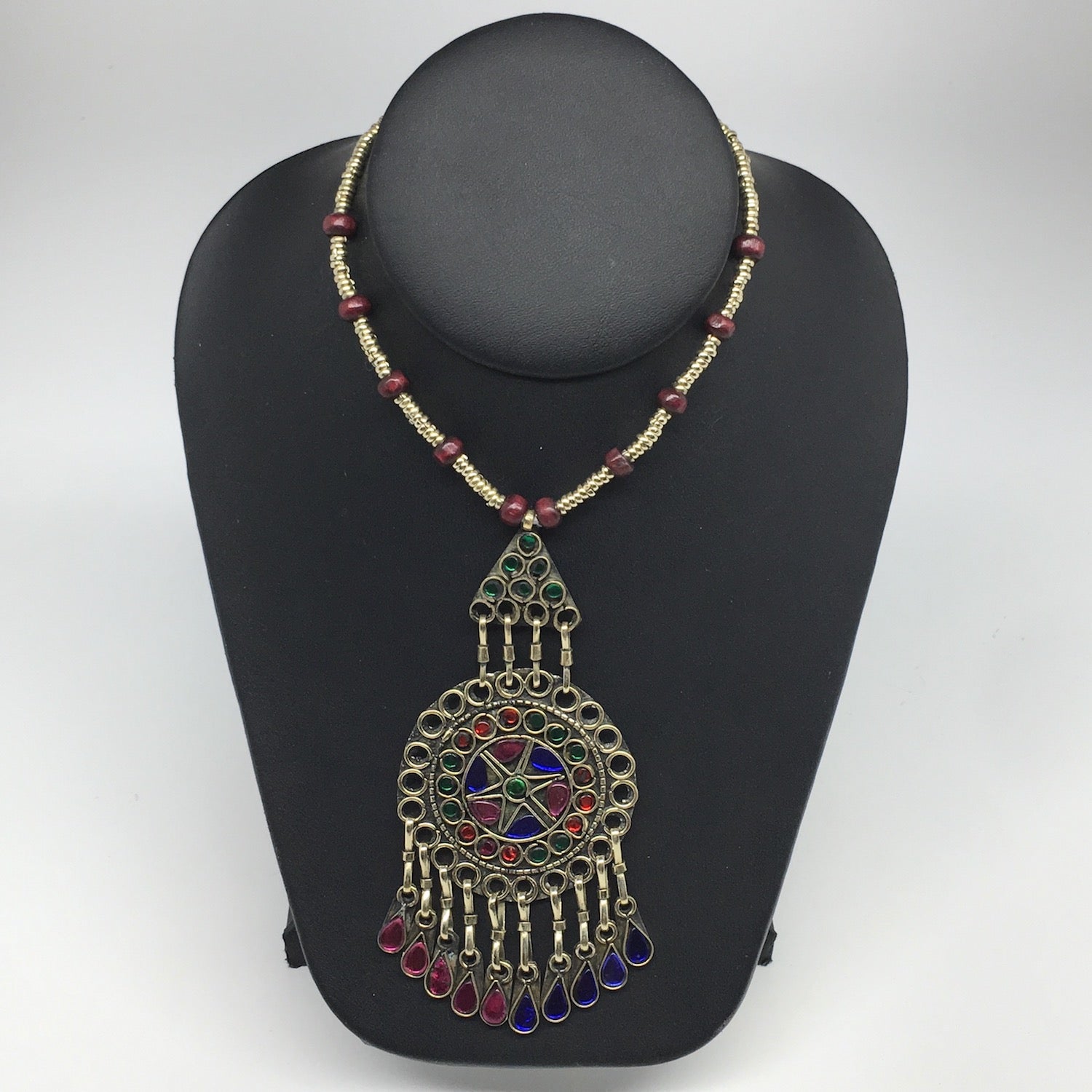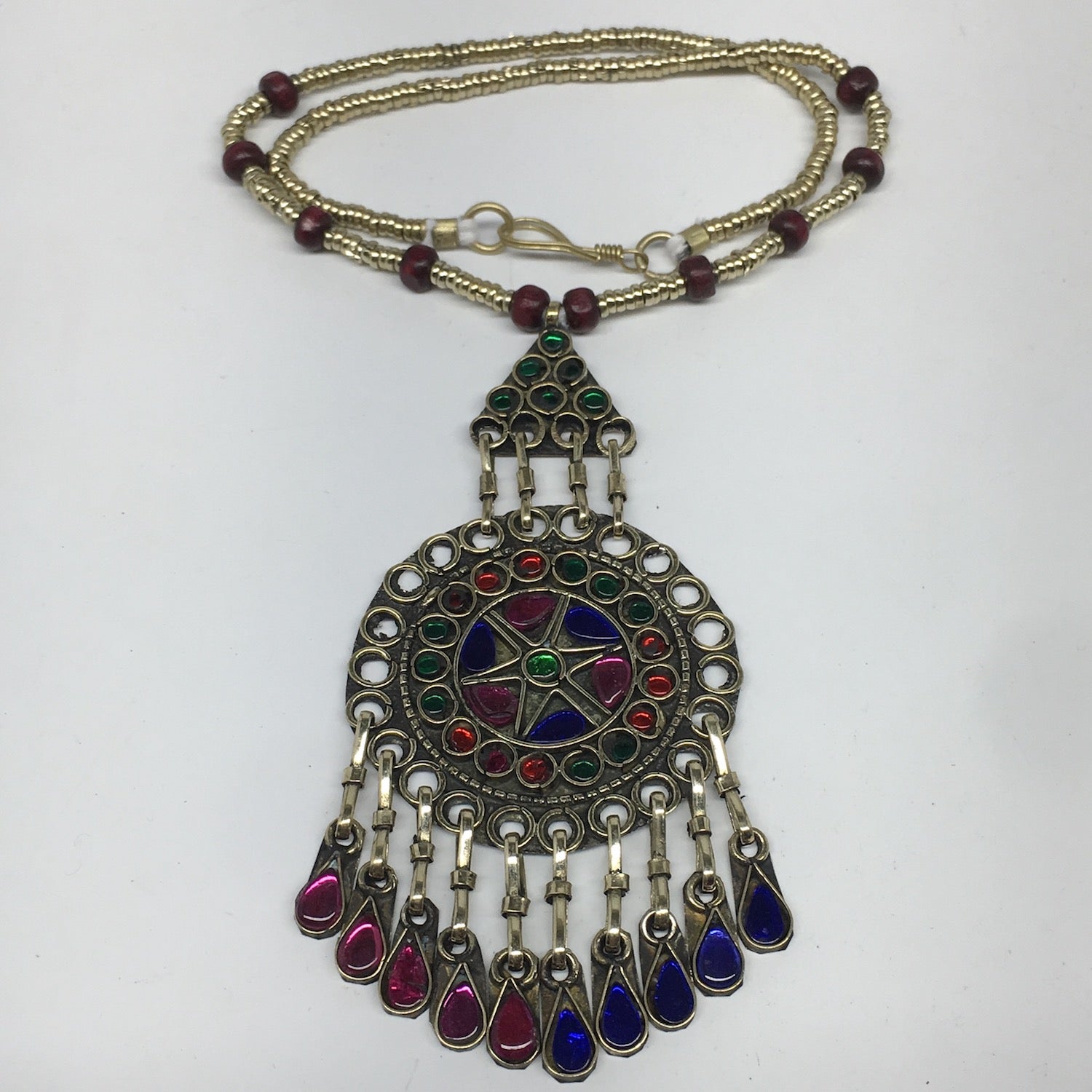 Afghan craft men make all these choker necklaces and other pieces of authentic beautiful jewelry one by one and by hands. All of the crafters are self-employed and make these items by taking orders. The metals used in these kinds of jewelry are called different names, some call it German Silver, some called it Gypsy and some call it Alpaca Silver. However, just like Tibetan Silver, they don't give body reactions or allergies. The metal doesn't change color either. These Jewelry have been in the market for centuries.