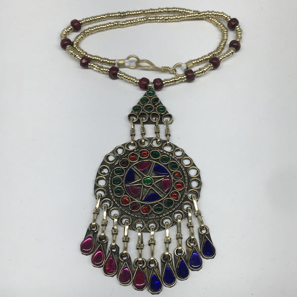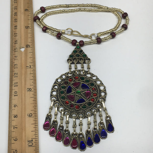 Kuchi Necklace Afghan Tribal Fashion Colorful Glass ATS Necktie Necklace, KN423