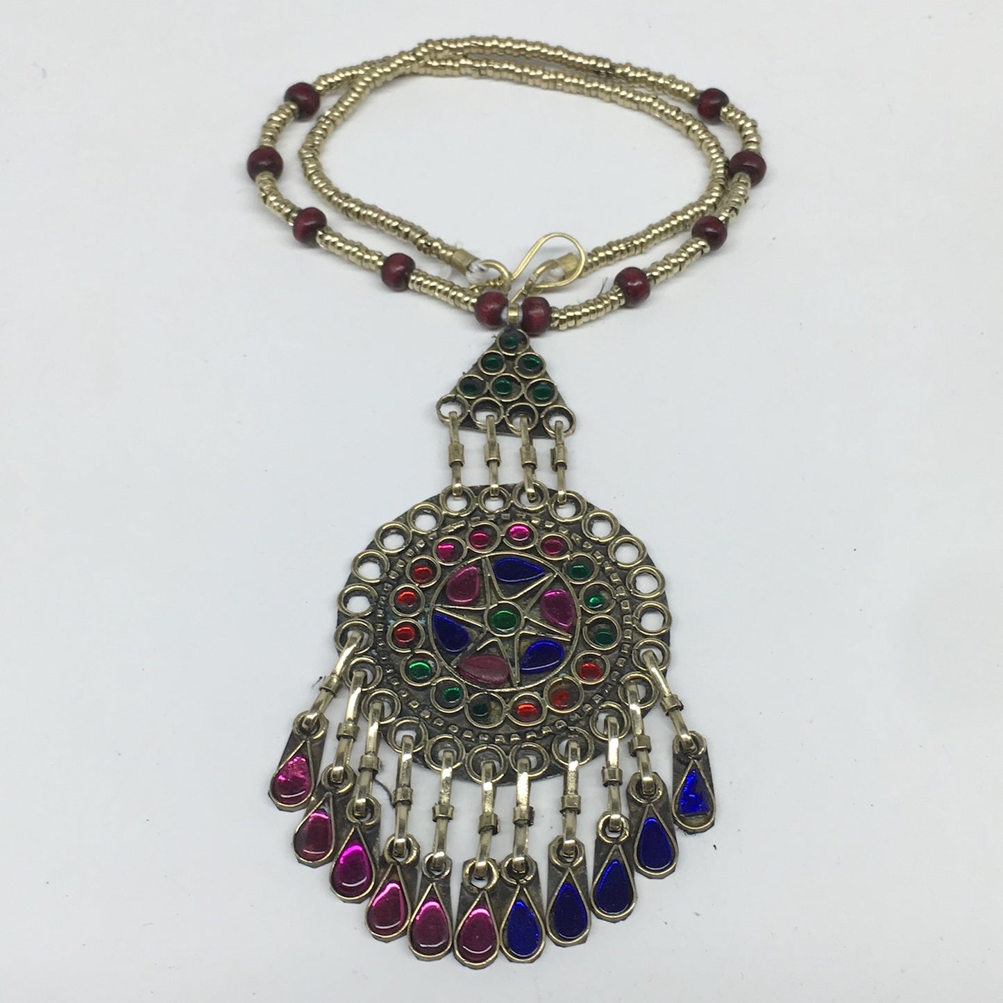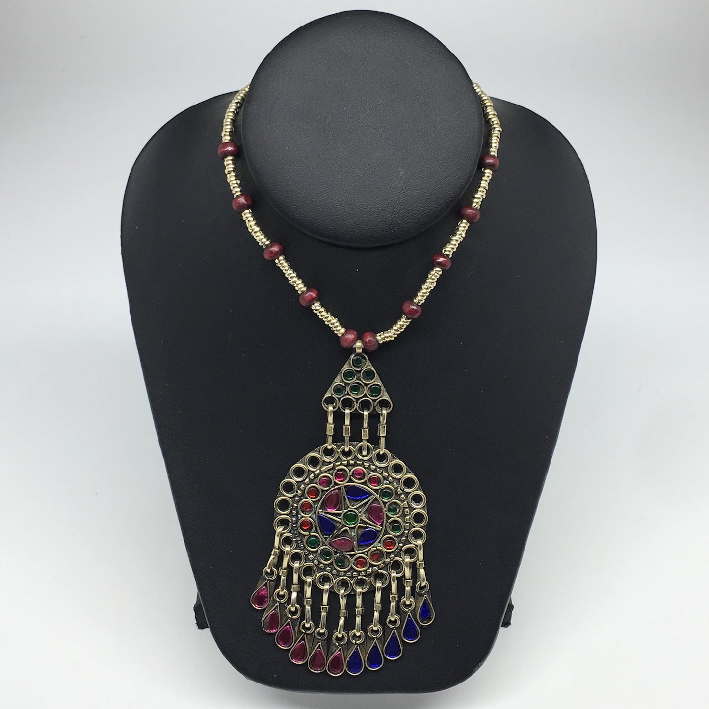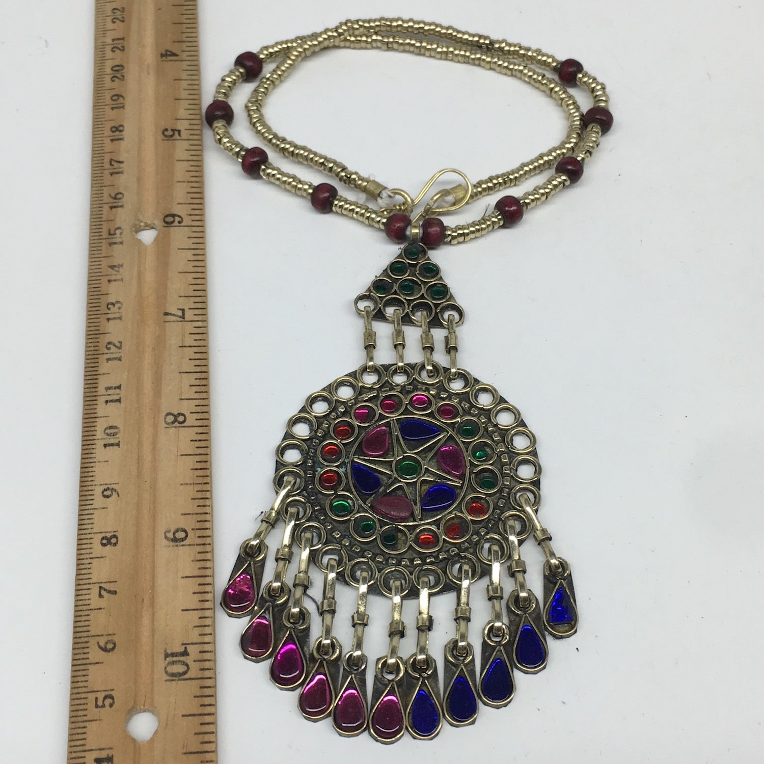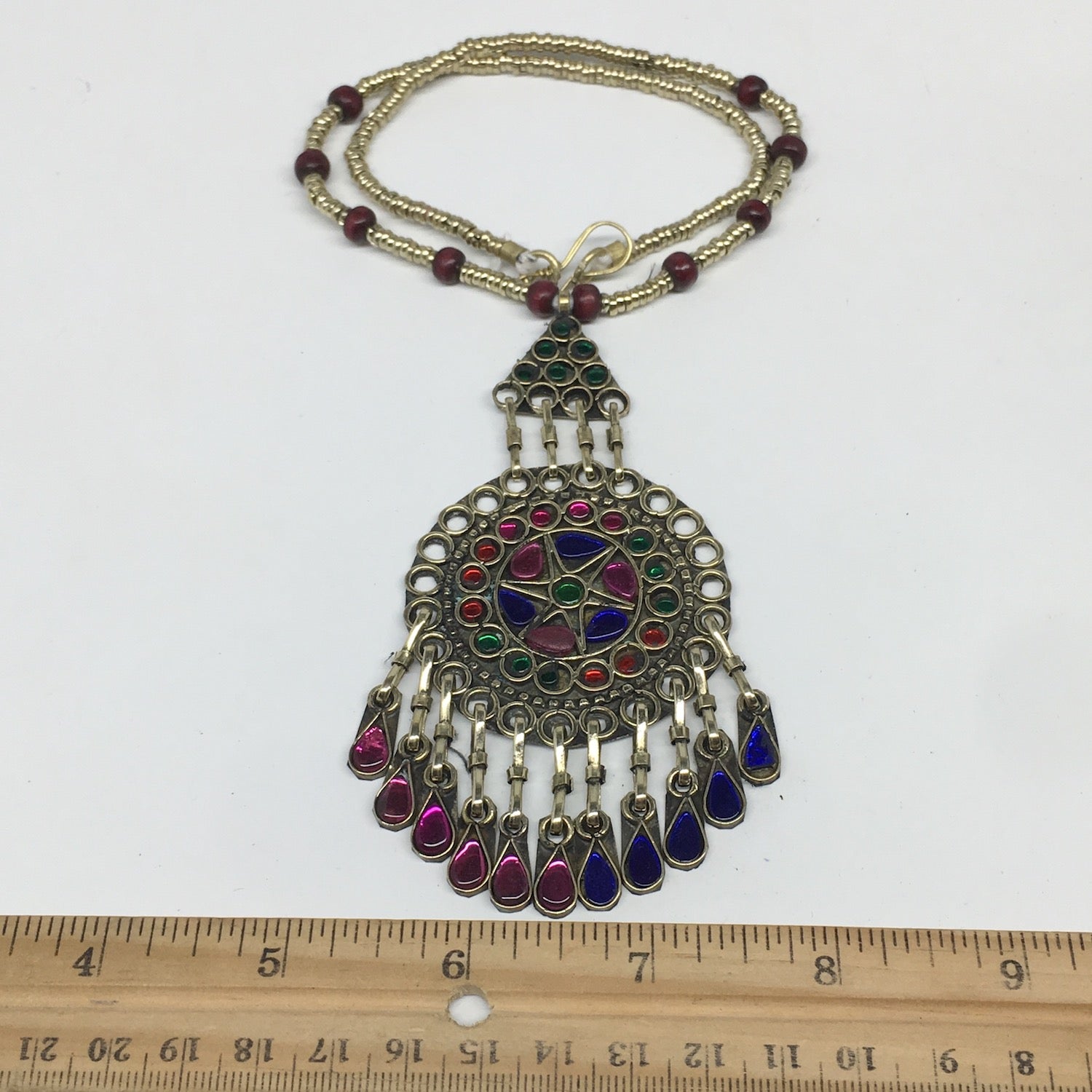 Kuchi Necklace Afghan Tribal Fashion Colorful Glass ATS Necktie Necklace, KN430