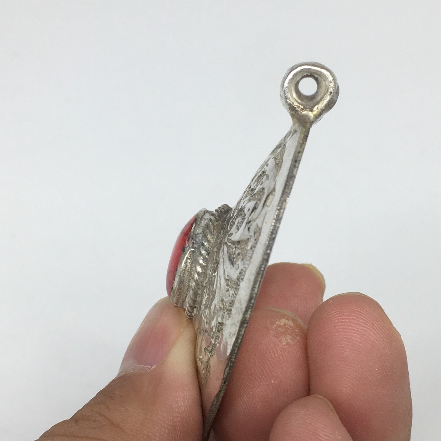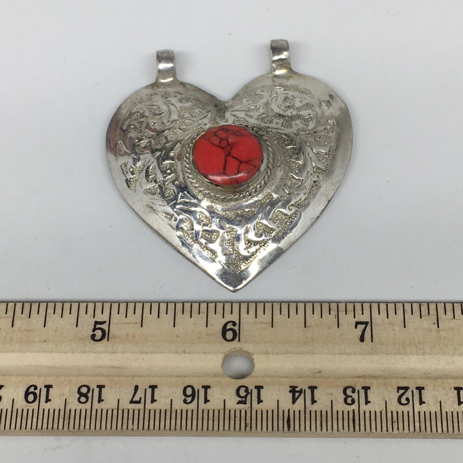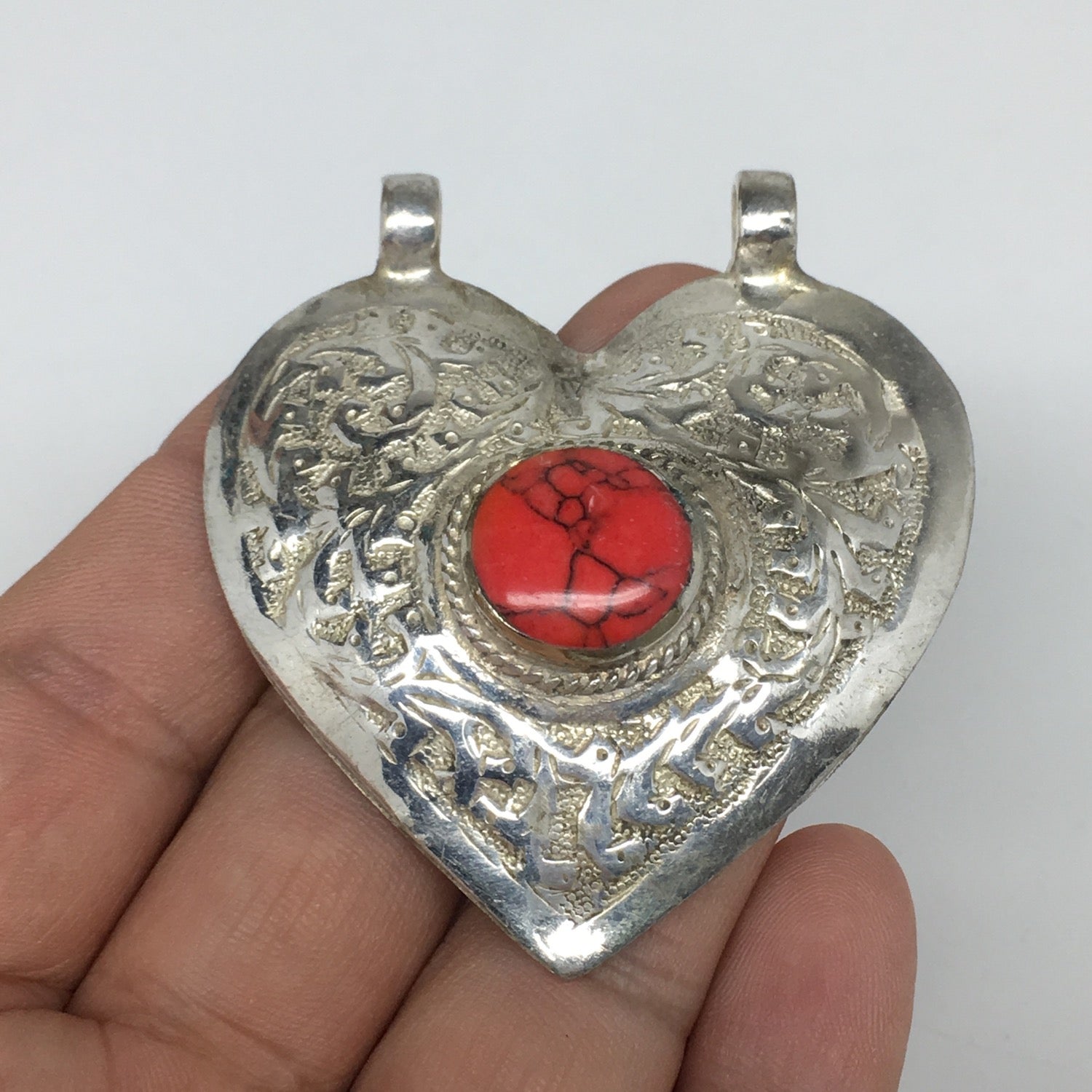 1pc,2.3"x2.1"x0.5",Turkmen Pendant Red Coral Inlay Heart Shape Statement, TN591