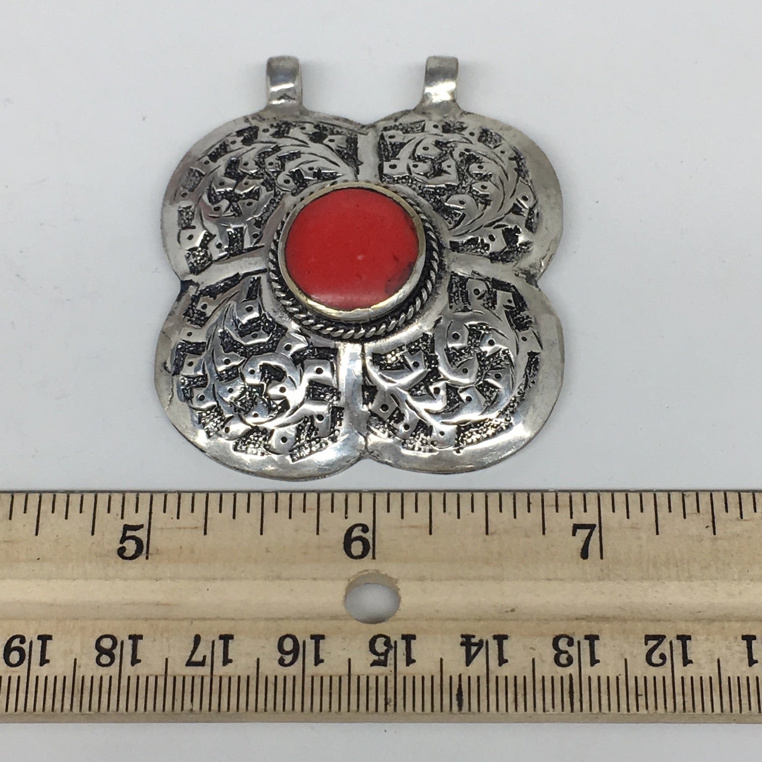 1pc,2.3"x1.9"x0.6",Turkmen Pendant Red Coral Inlay Square Shape Statement,TN596