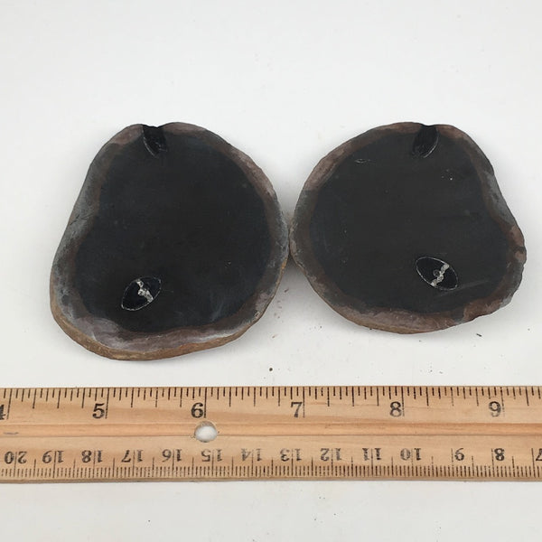 1 Pair,239.6g,2.9"x2.4" Natural Unique Septarian Nodules Slabs @Morocco,MF3621