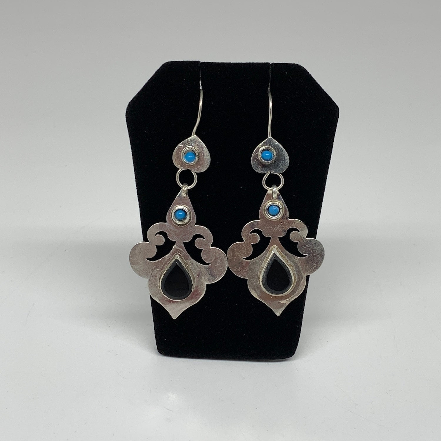 Turkmen Earring Handmade Afghan Tribal Black Carnelian Teardrop Boho Earring TE09