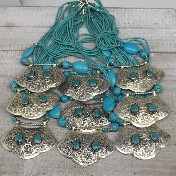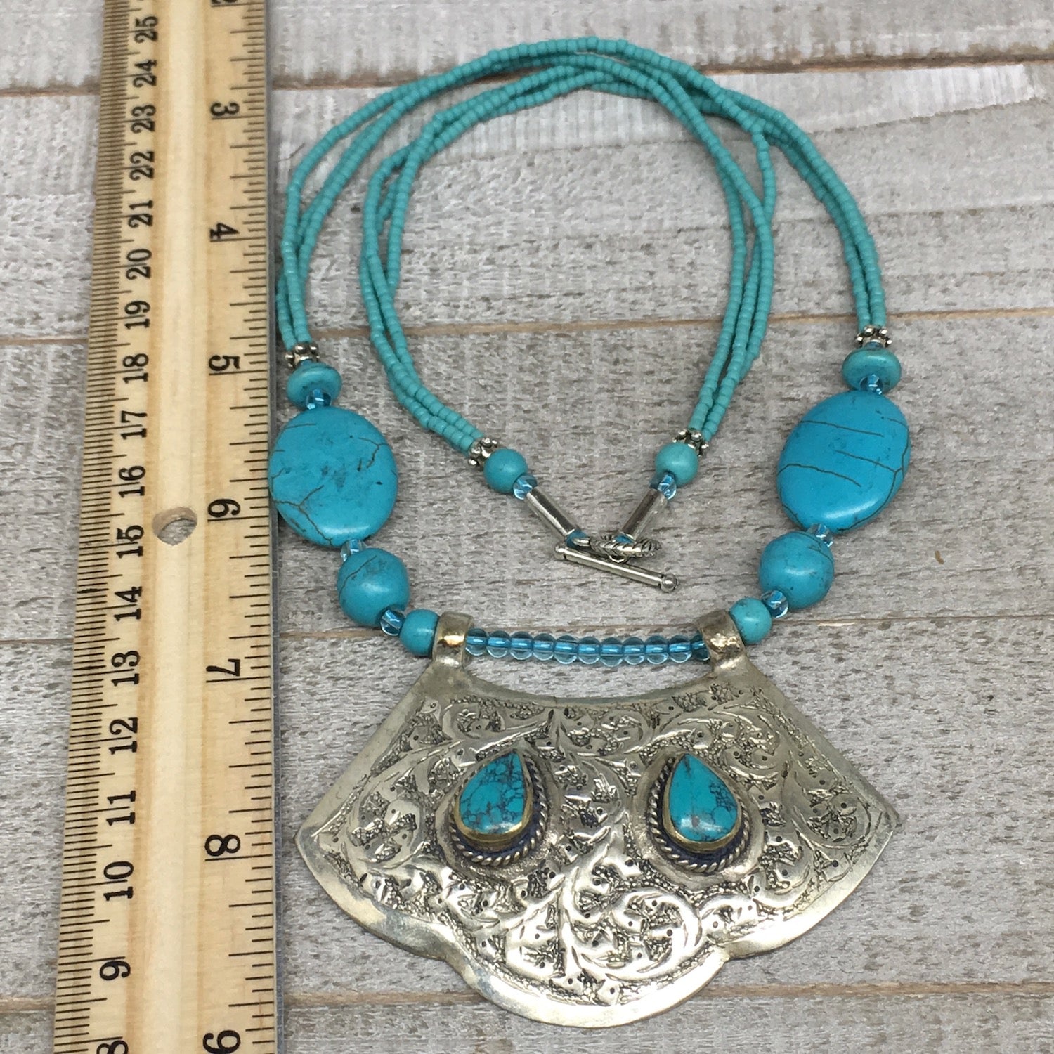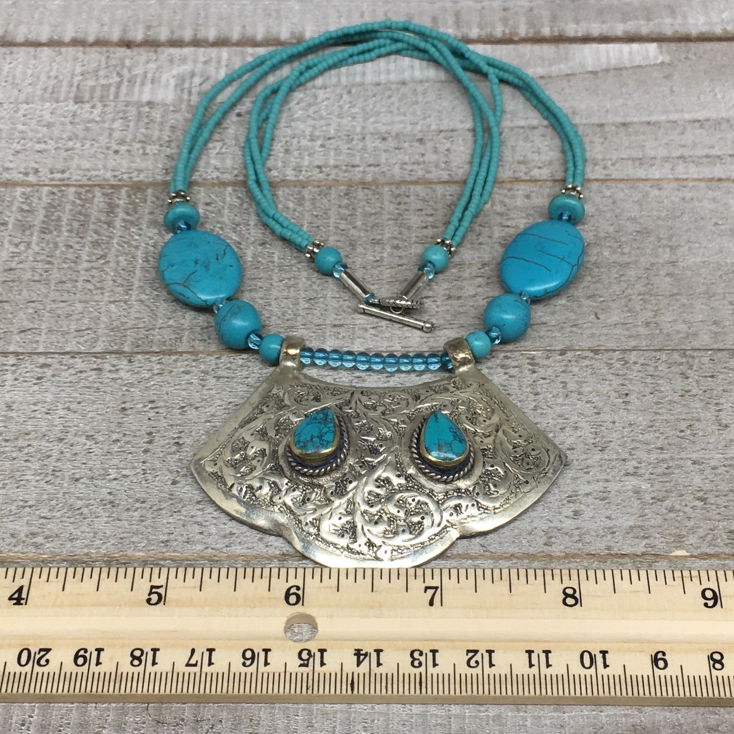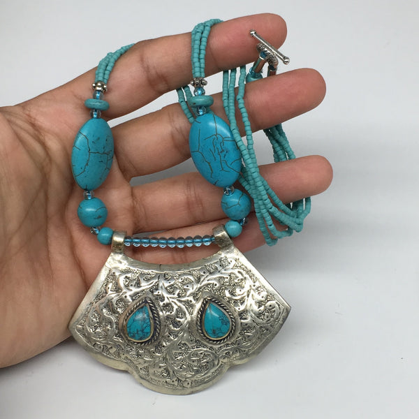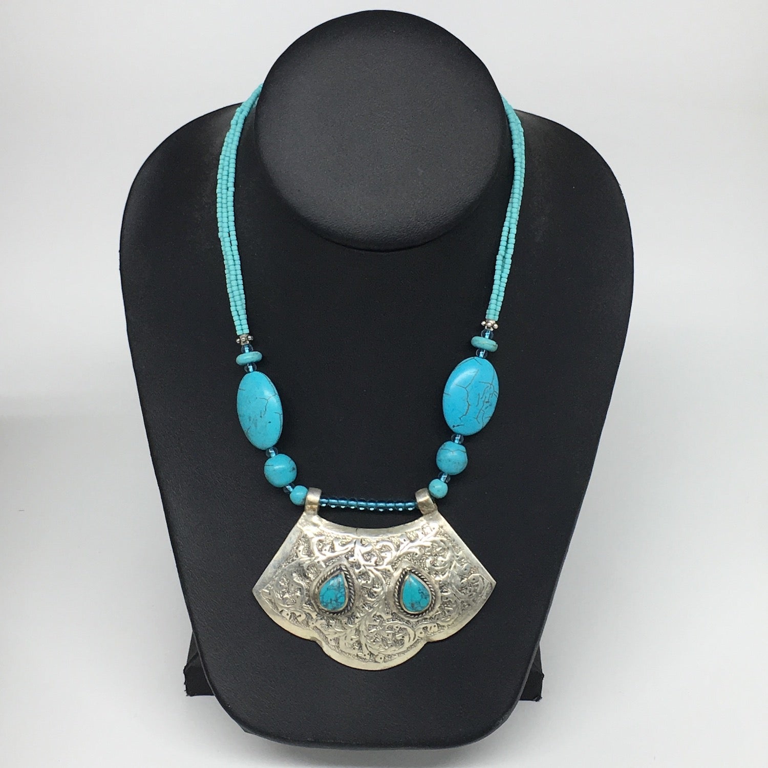 1pc,Turkmen Necklace Pendant Statement Tribal Turquoise Inlay Beaded,20-21",BN26