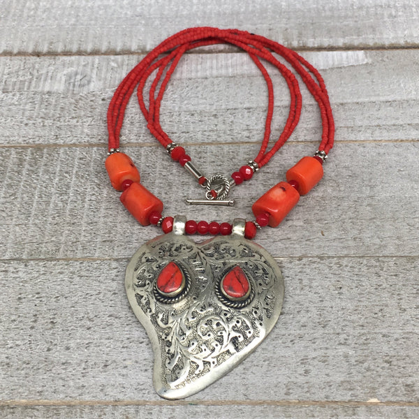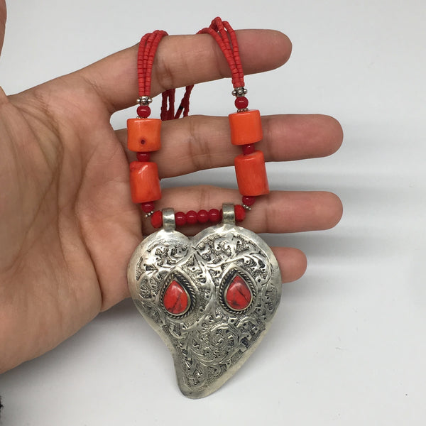 1pc, Turkmen Necklace Pendant Statement Tribal Coral Inlay Beaded,20-21", BN27
