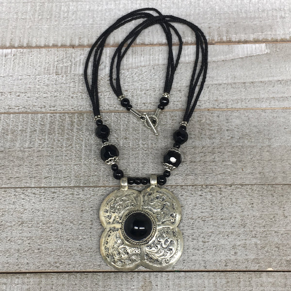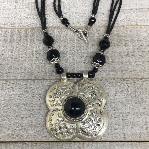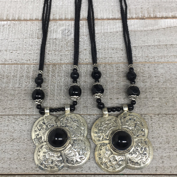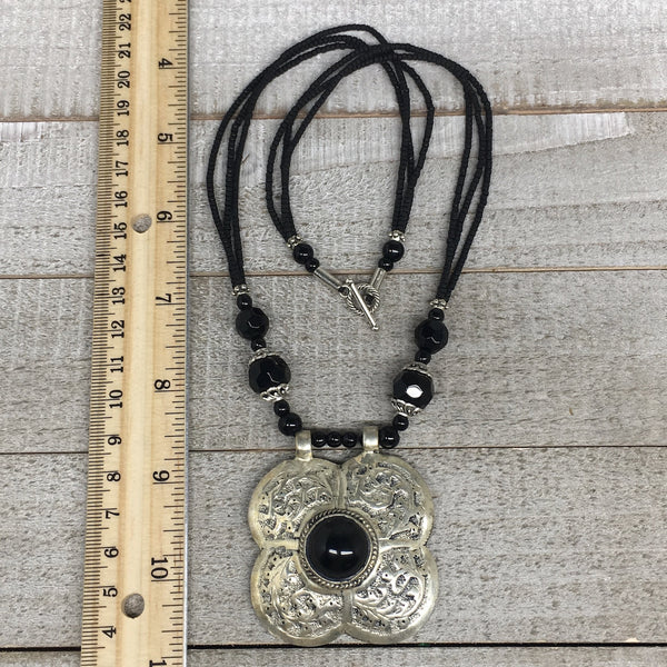 1pc,Turkmen Necklace Pendant Statement Tribal Black Carnelian Beaded,20-21",BN54