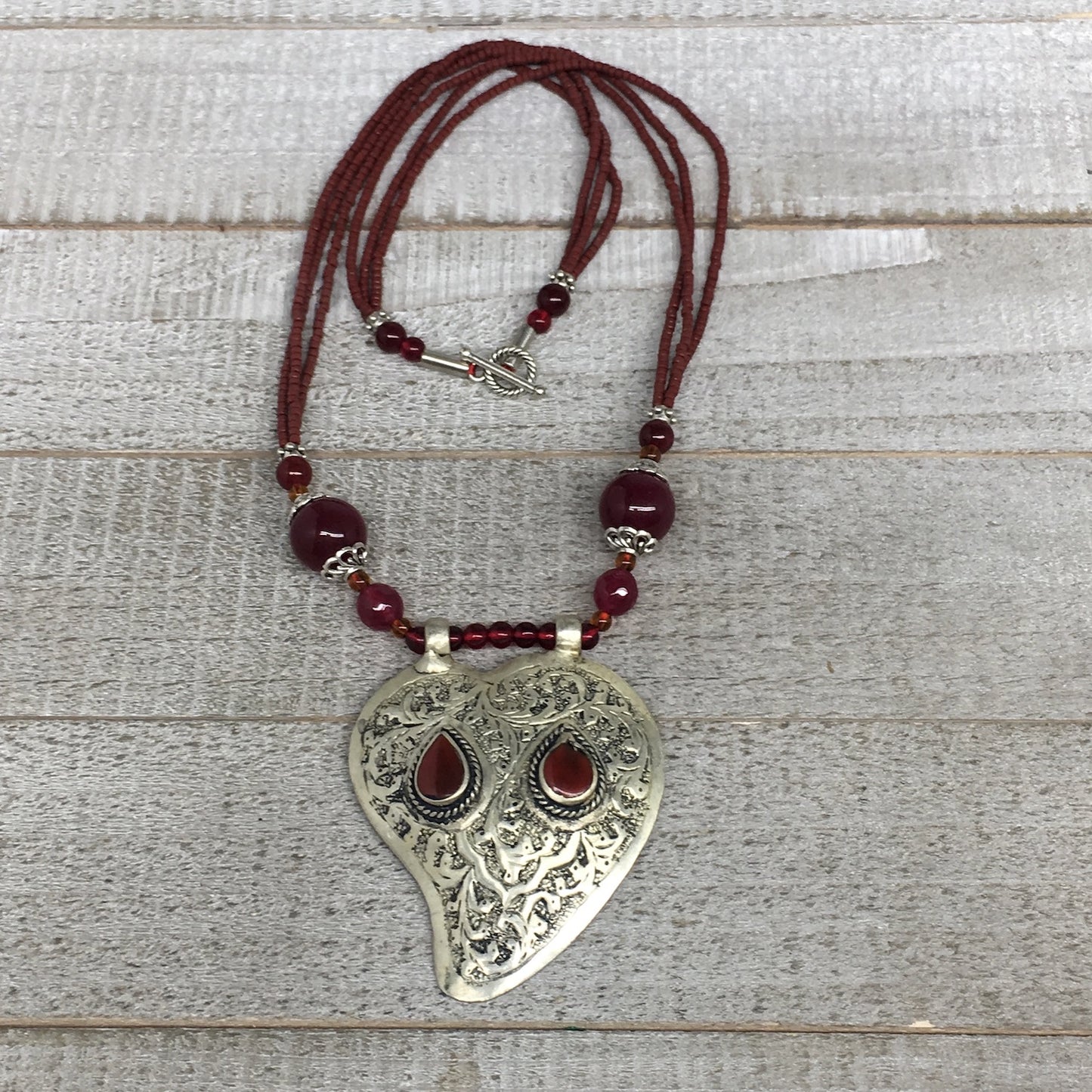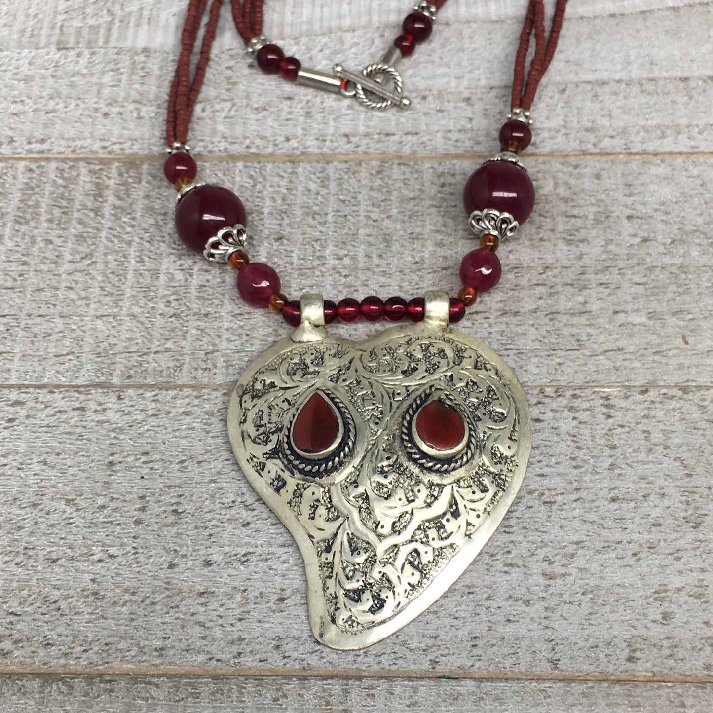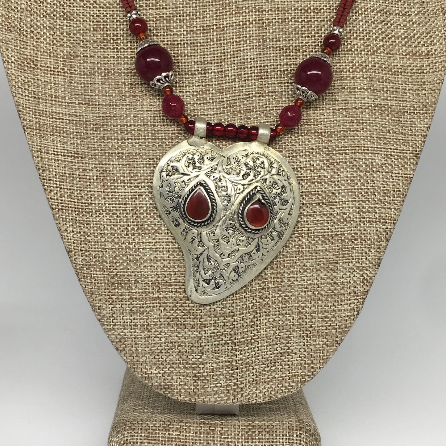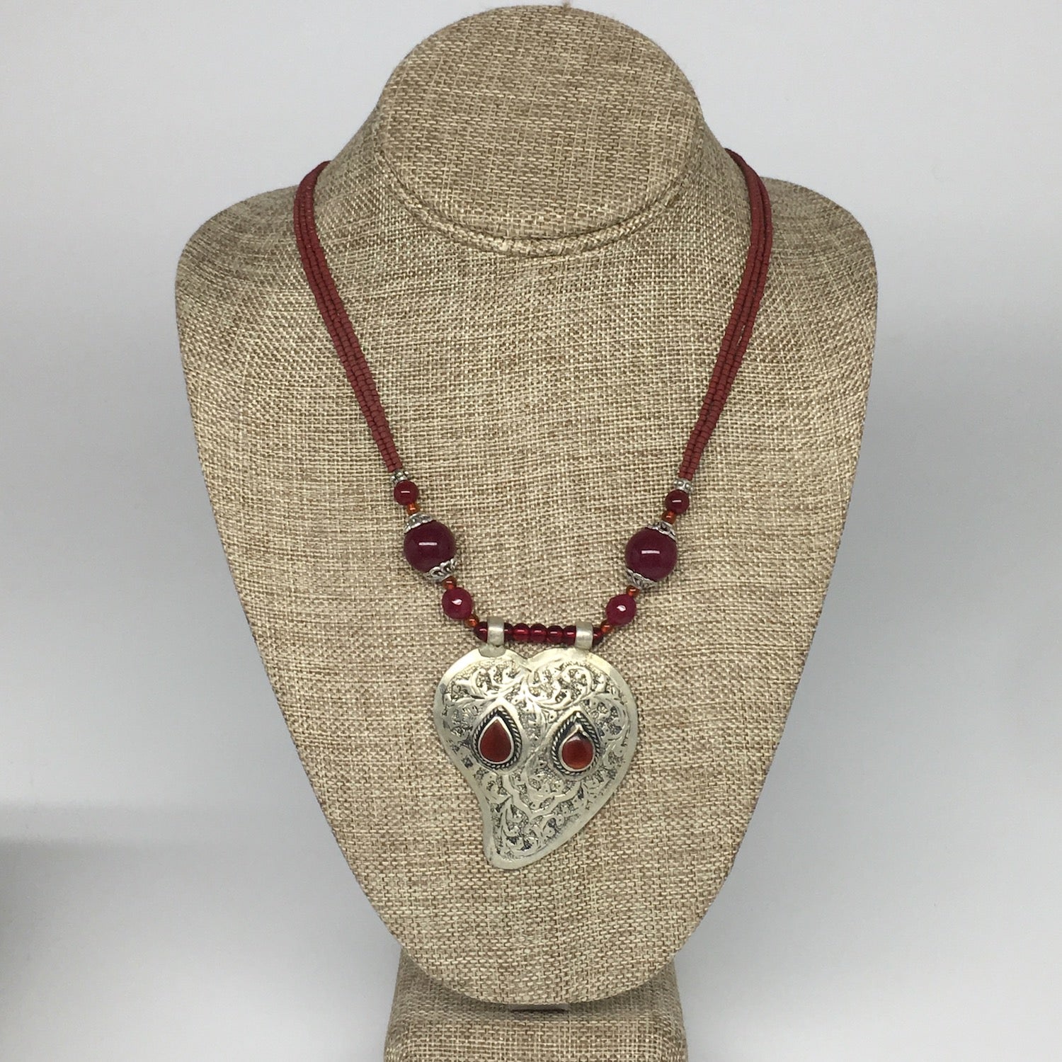 1pc,Turkmen Necklace Pendant Statement Tribal Red Carnelian Beaded,20-21",BN66