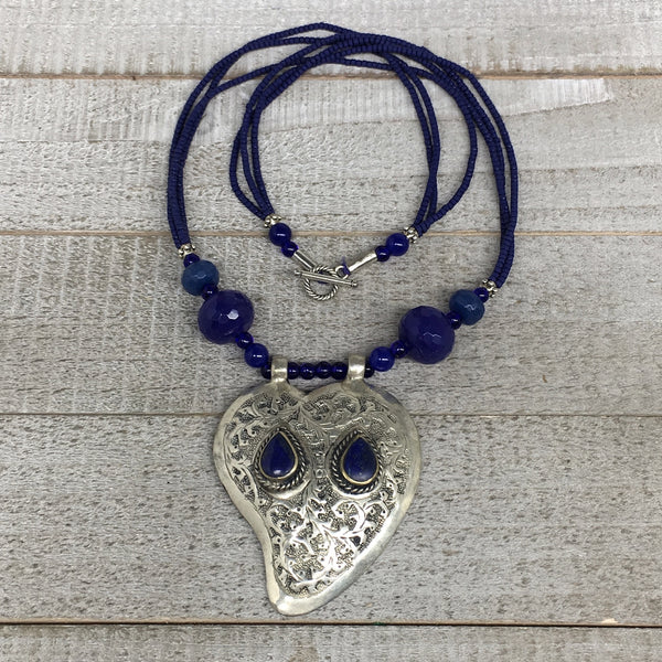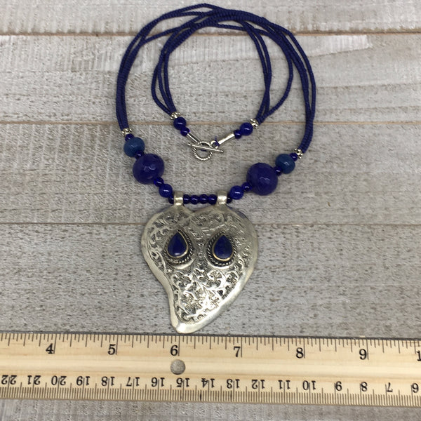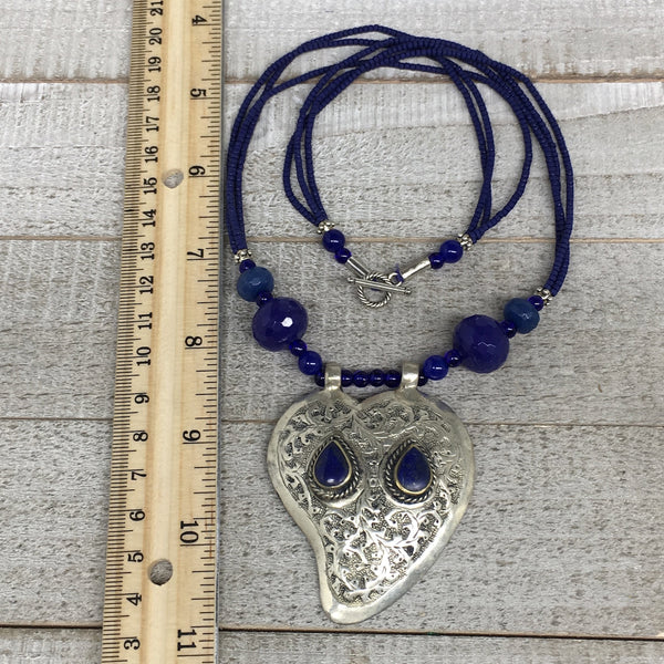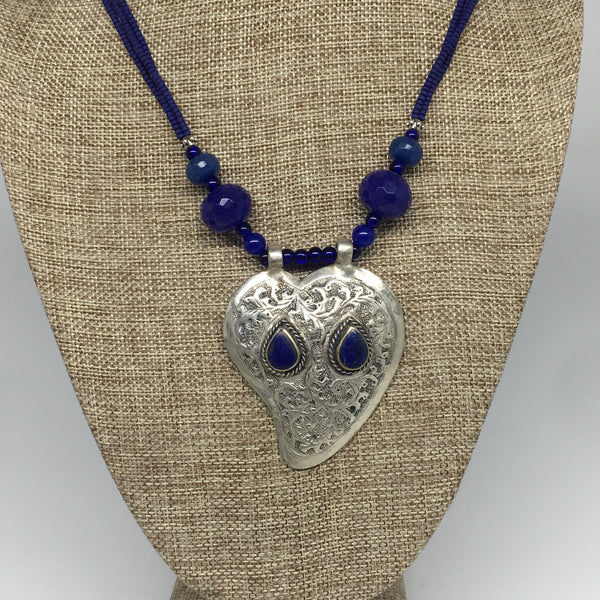 1pc,Turkmen Necklace Pendant Statement Tribal Lapis Lazuli Beaded,20-21",BN88