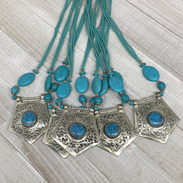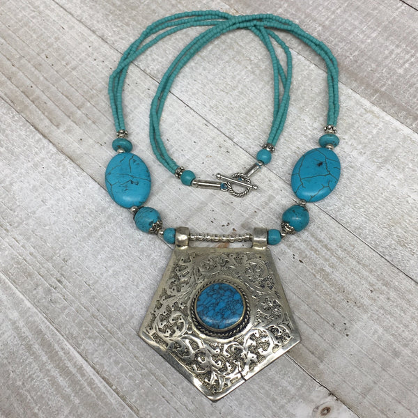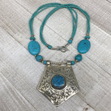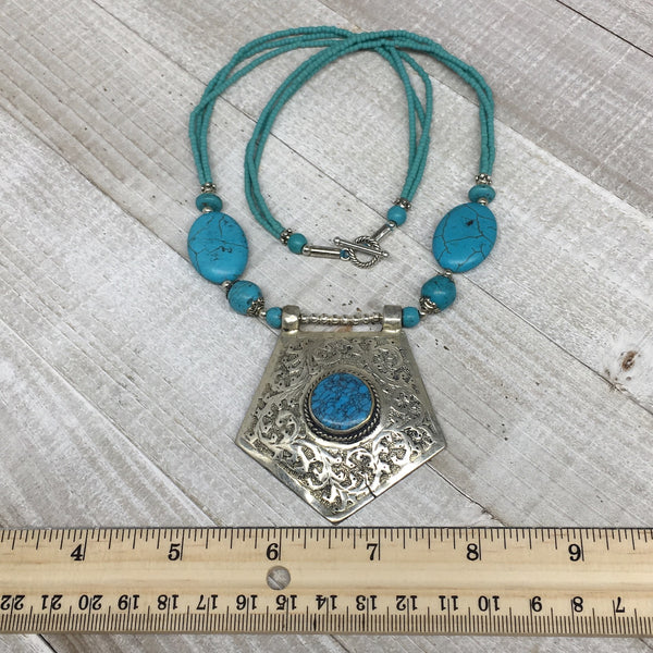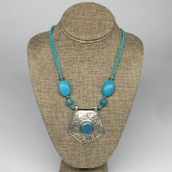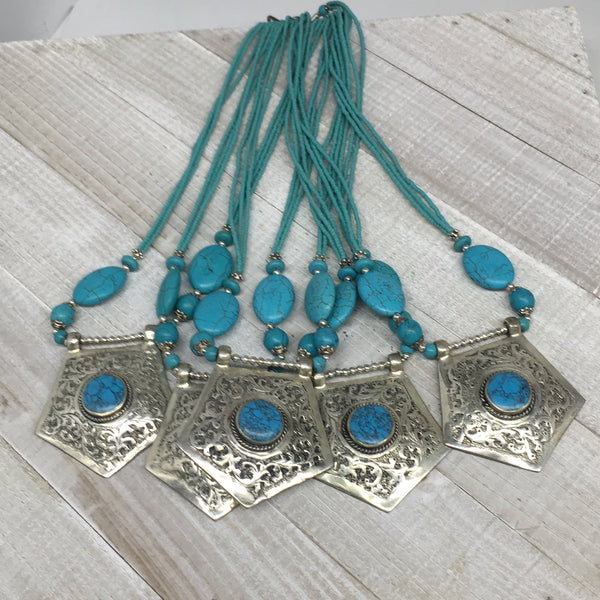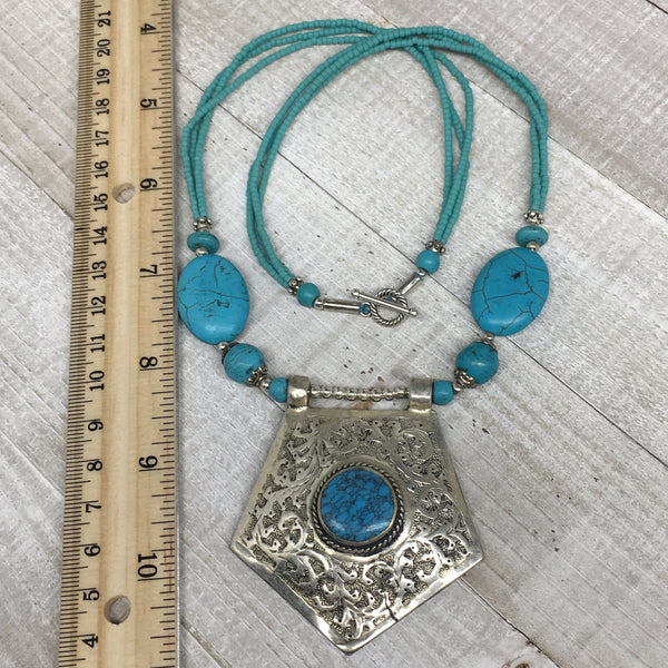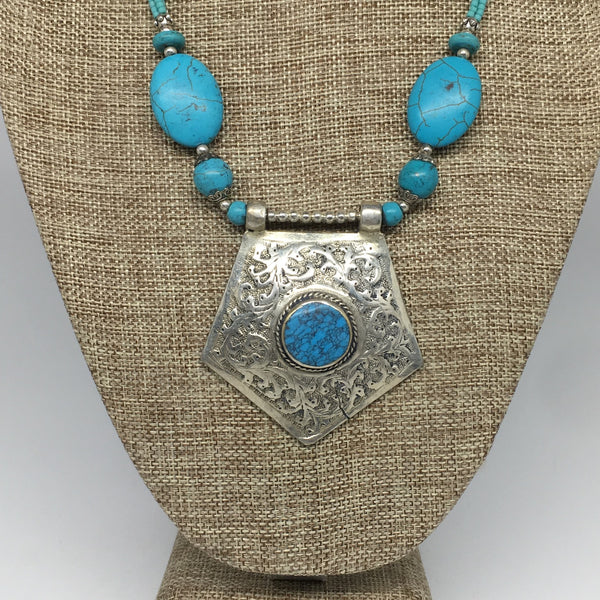 1pc,Turkmen Necklace Pendant Statement Tribal Turquoise Inlay Beaded,20-21",BN12