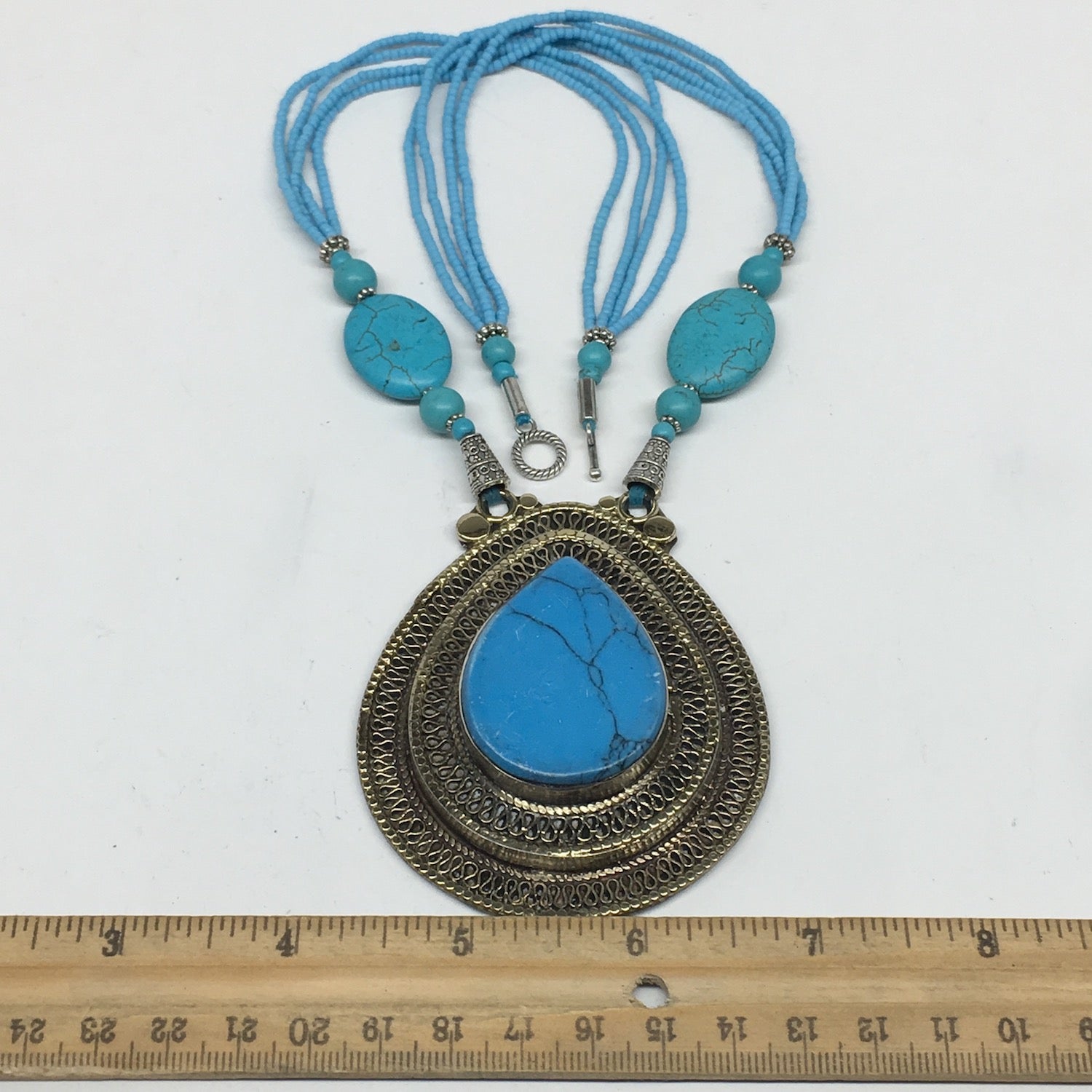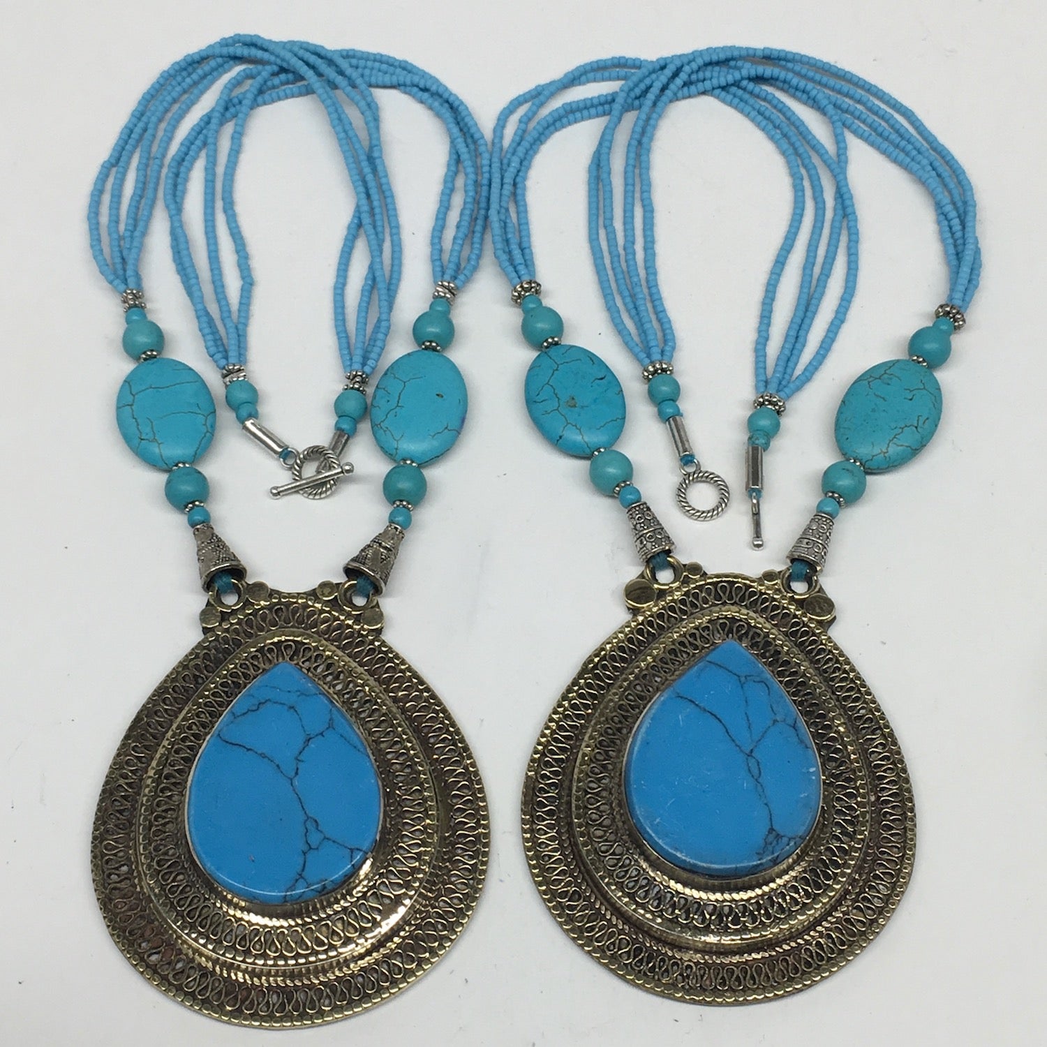 Afghan craft mens make all these necklaces and other pieces of authentic beautiful jewelries one by one and by hands. All of the crafters are self employed and make these items by taking orders. The metals used in these kind of jewelries are called different names, some call it German Silver, some called it Gypsy and some call it Alpaca Silver. However, just like Tibetan Silver, they don't give body reactions or allergies. The metal don't change color either. These Jewelries have been in the market for centuries.