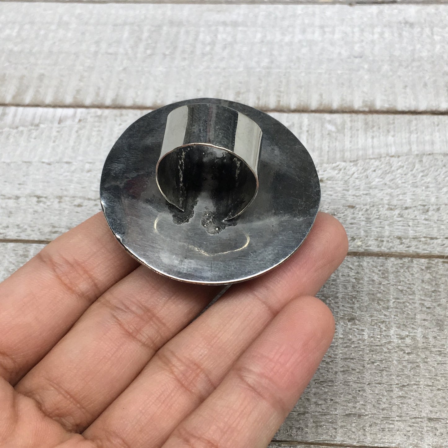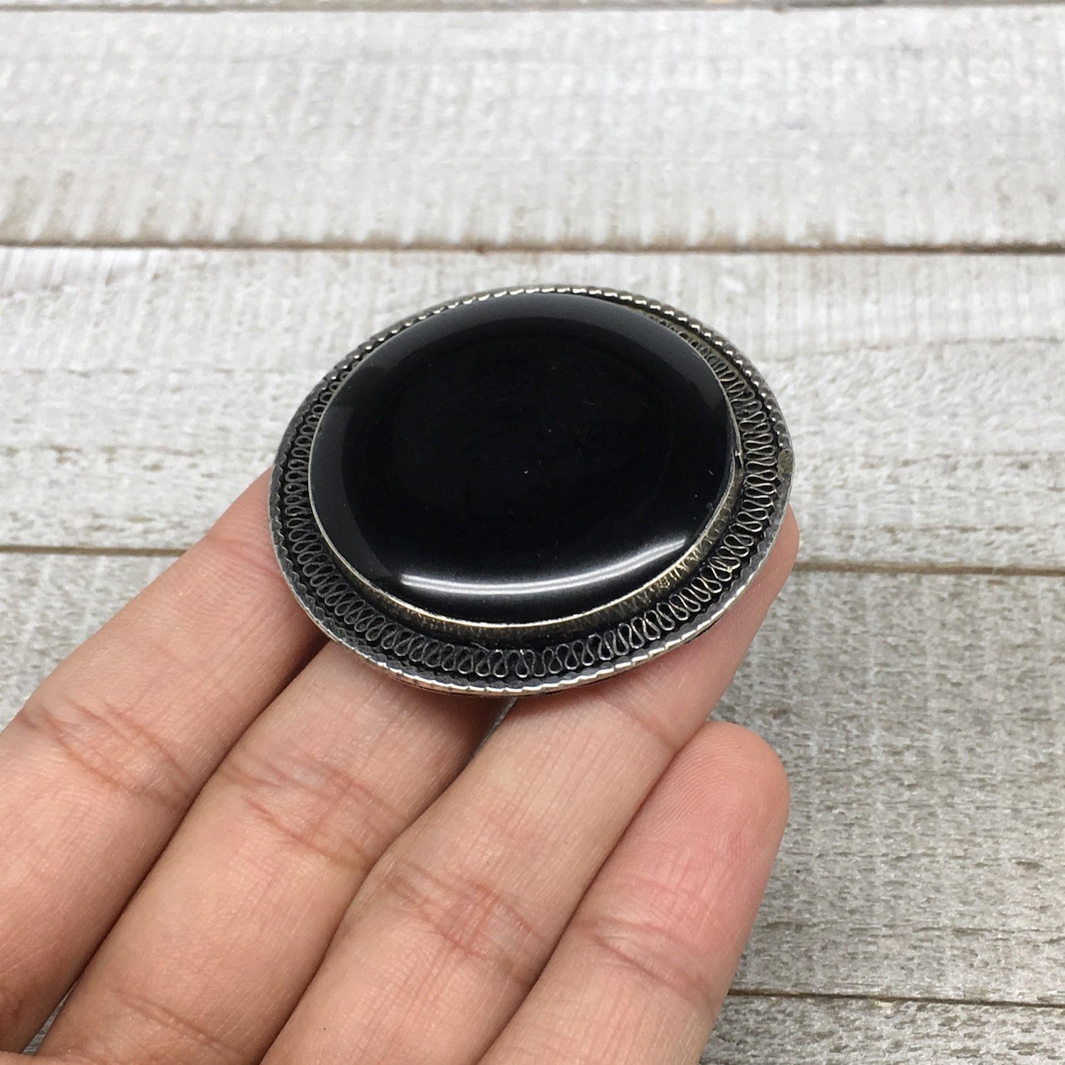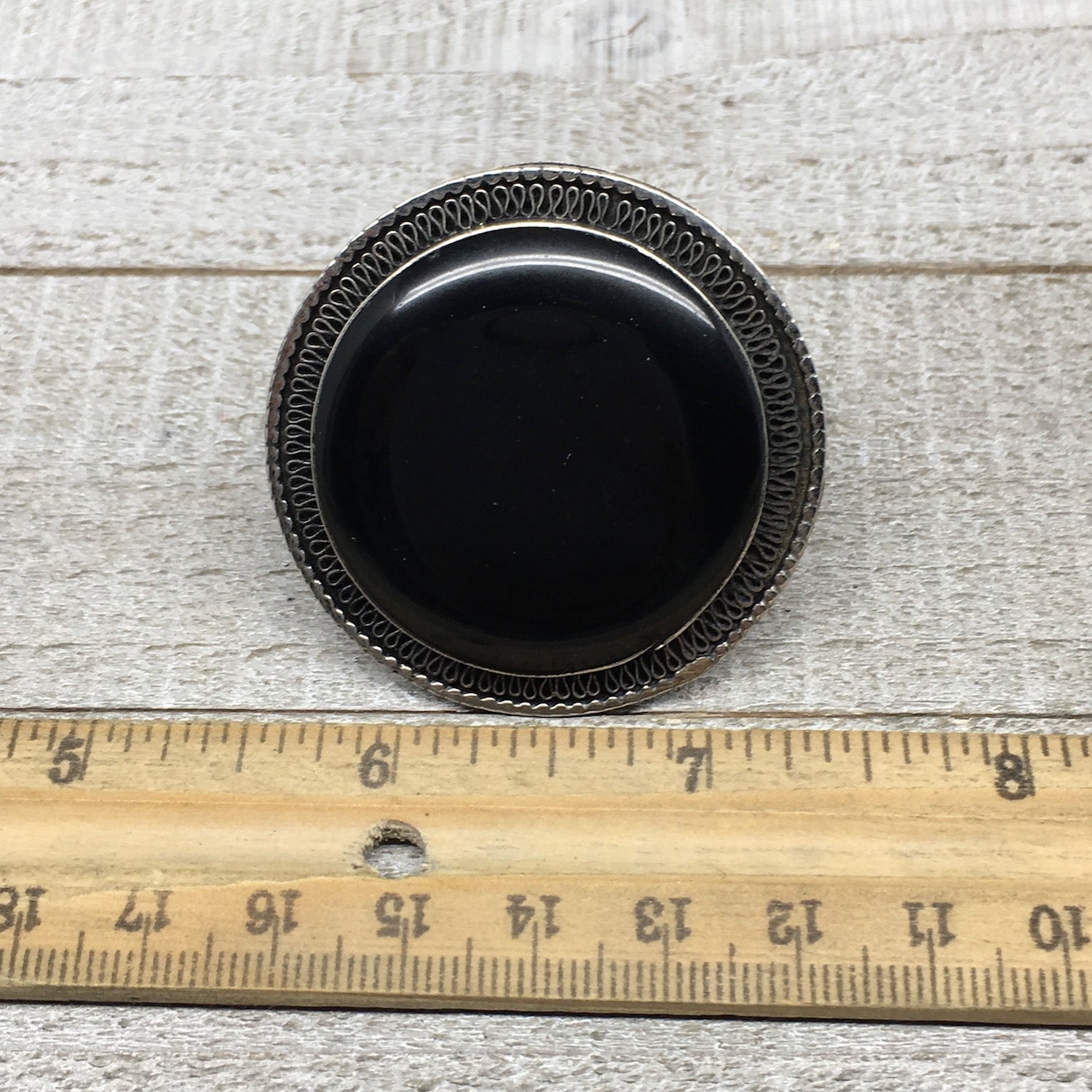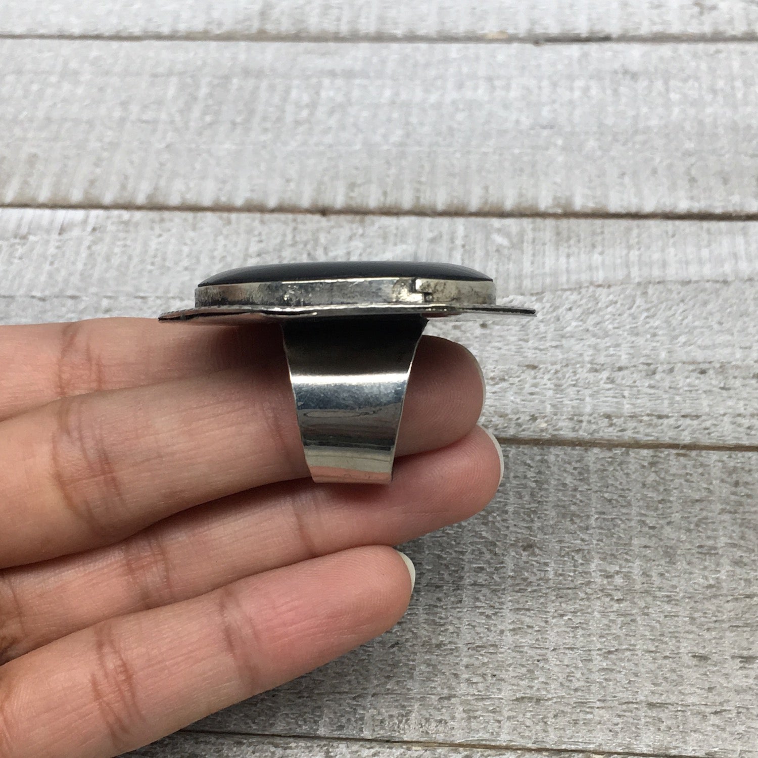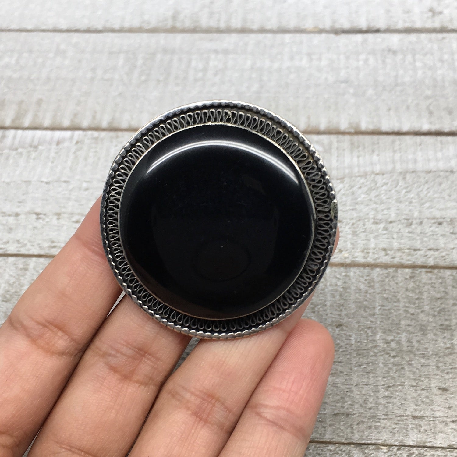 Antique Afghan Turkmen Tribal Round Black Onyx Kuchi Ring Boho Statement, TR87