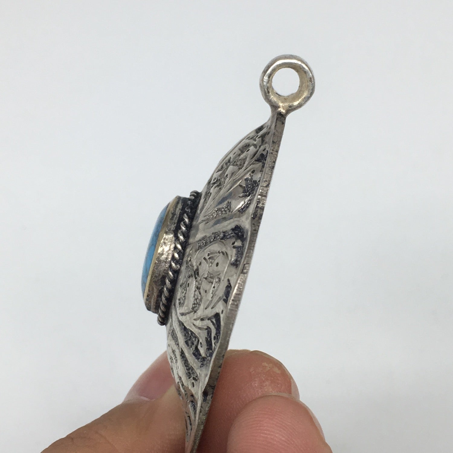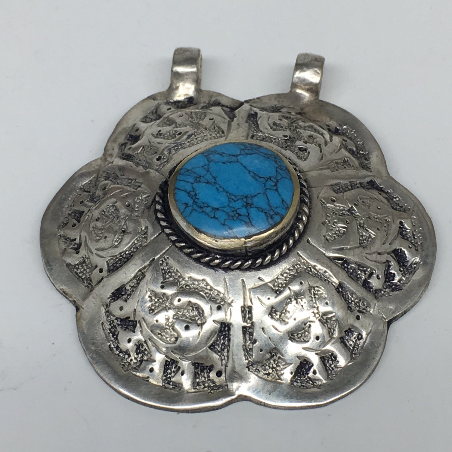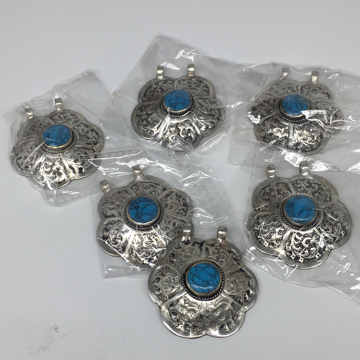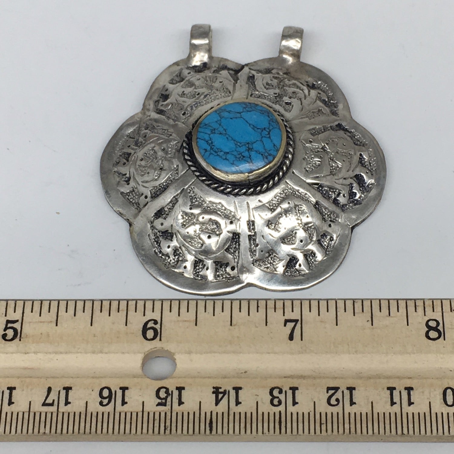 1pc,2.3"x2.1"x0.6",Turkmen Pendant Blue Turquoise Inlay Flower Shape,TN562