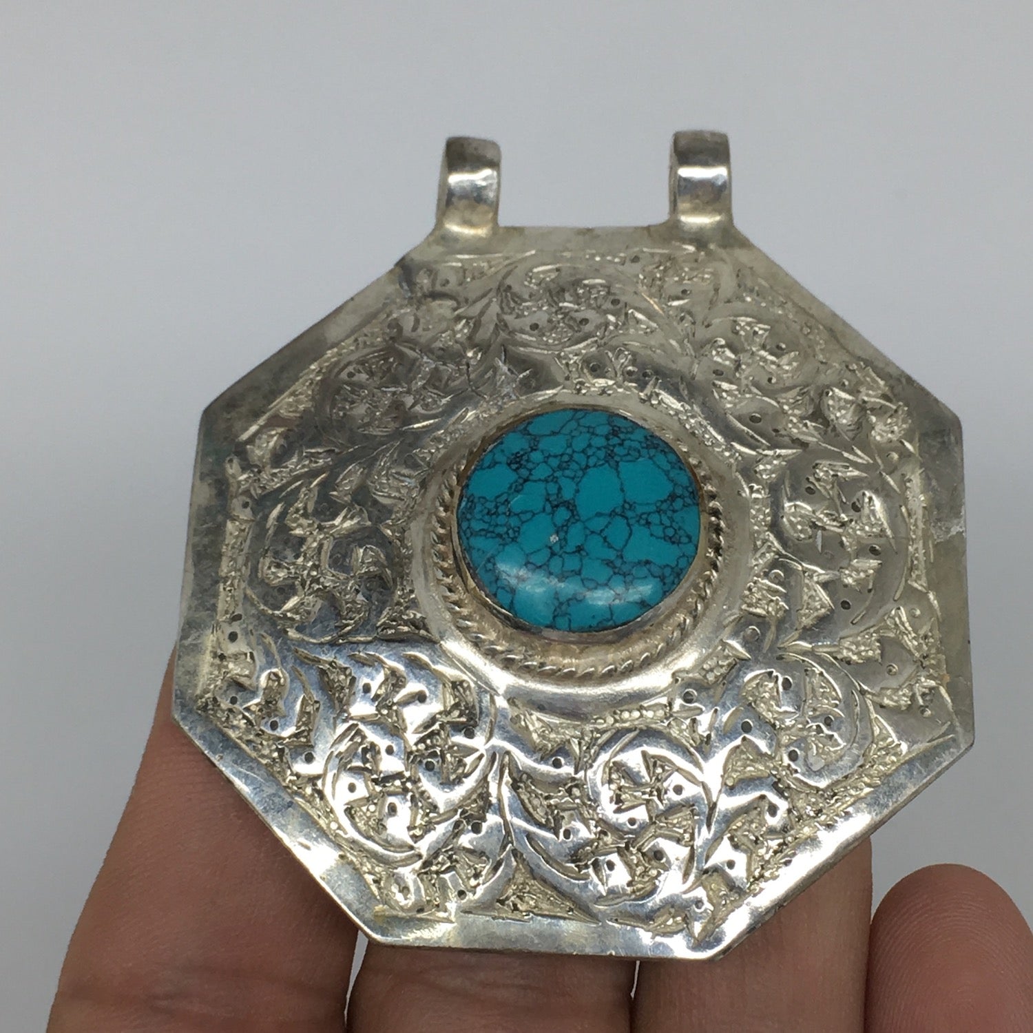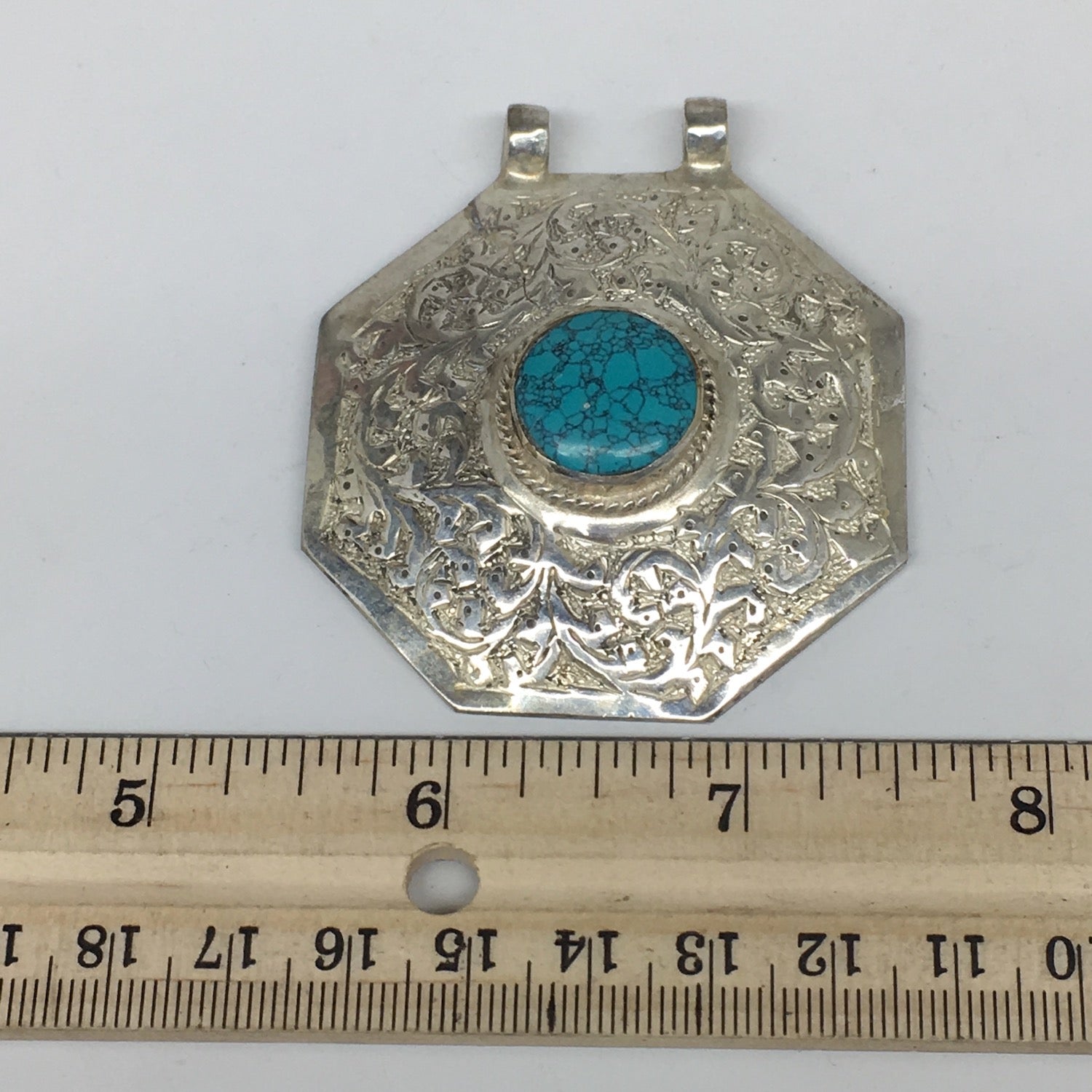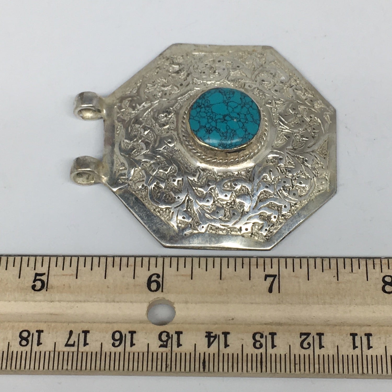 1pc,2.5"x2.4"x0.5",Turkmen Pendant Green Turquoise Inlay Octagon Shape,TN583