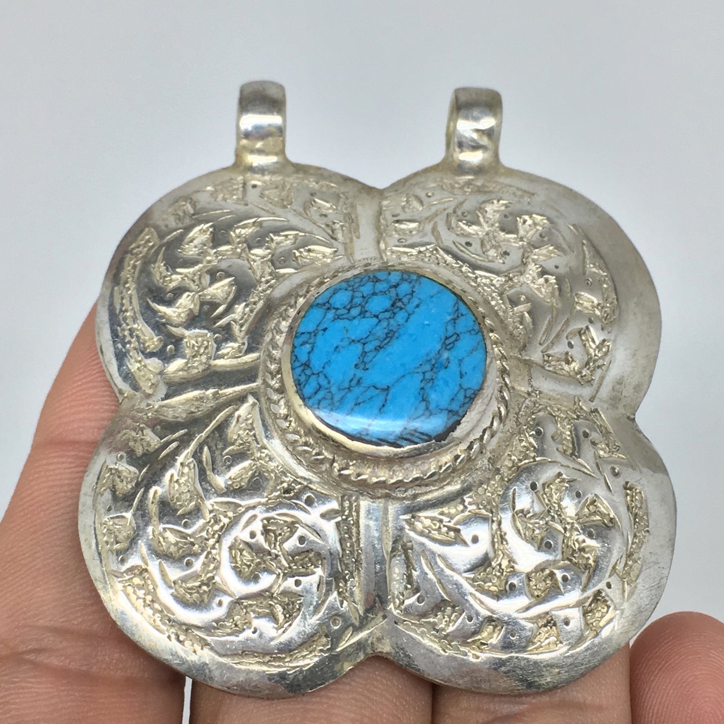 1pc, 2.3"x2"x0.5",Turkmen Pendant Blue Turquoise Inlay Heart Handmade,TN553