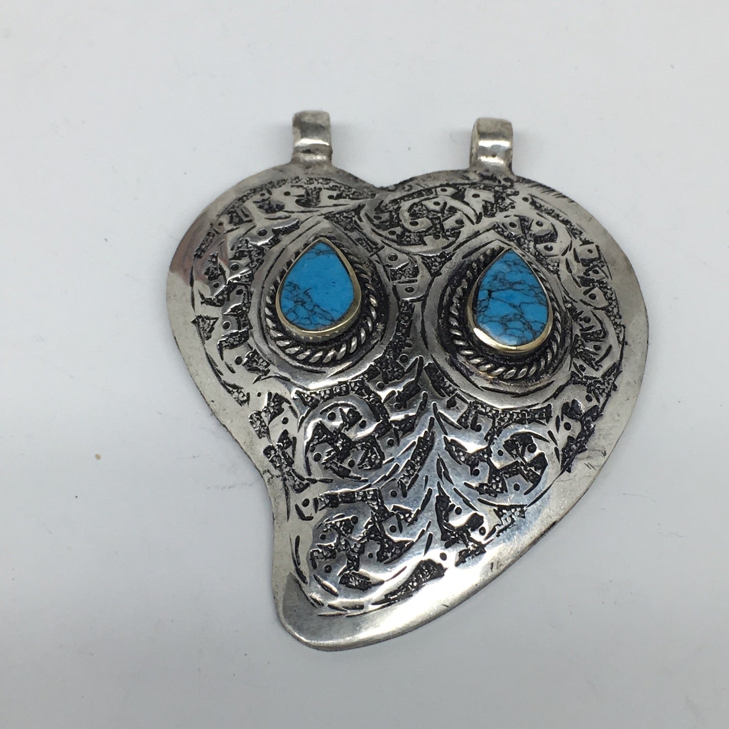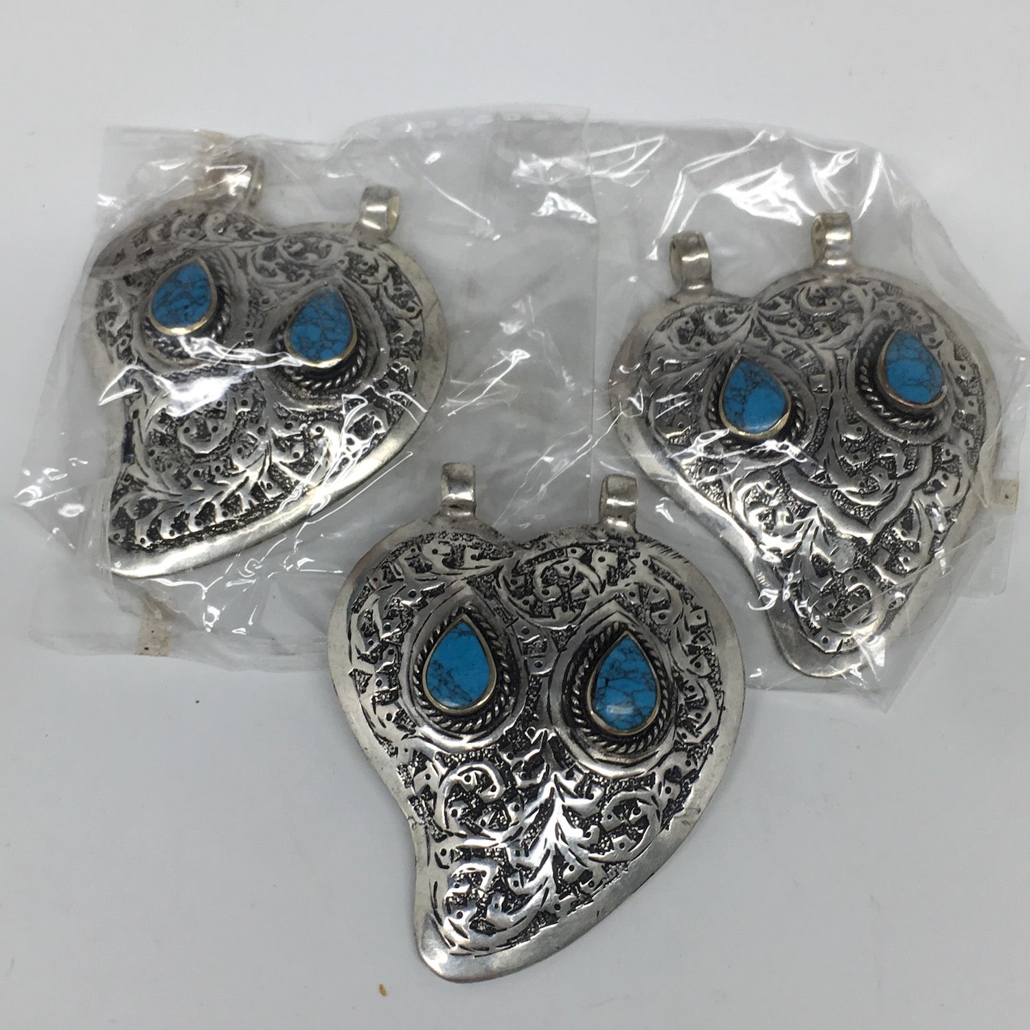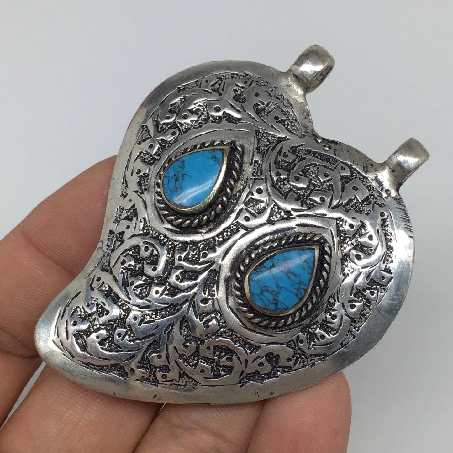 1pc, 2.6"x2.1"x0.5", Turkmen Pendant Blue Turquoise Inlay Drop Shape,TN561