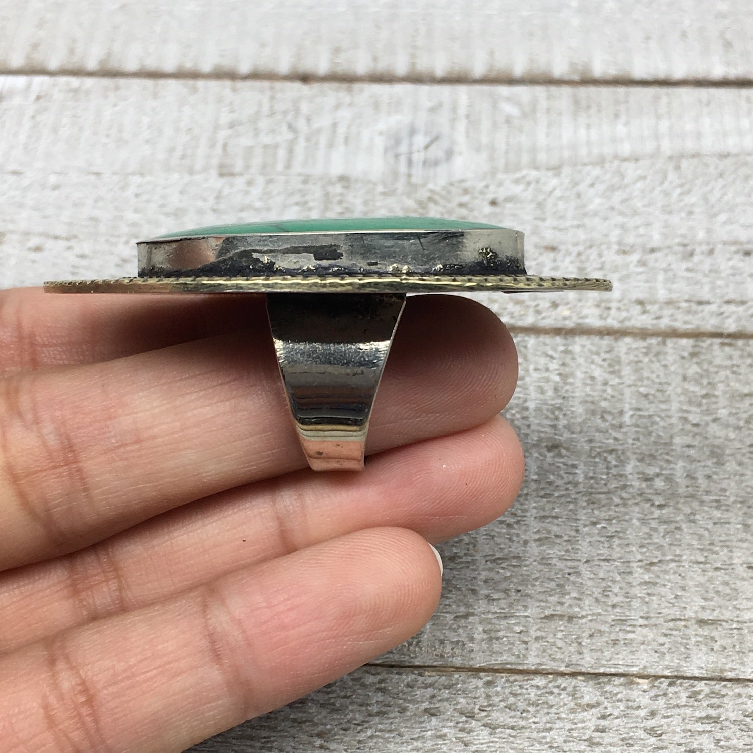 2.3"x1.6" Turkmen Ring Afghan Marquise Synthetic Green Turquoise,7.5,8,TR130